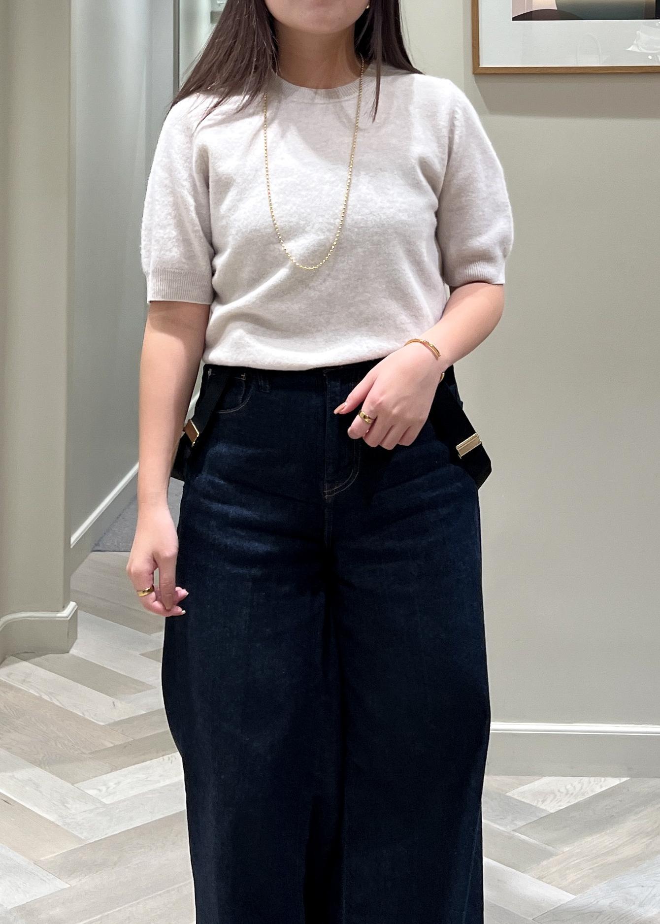 ROPÉウールカシミヤブレンド 5分袖ニットプルオーバー/イージーケアベージュ系 / F¥19,800レビュー羊毛にカシミヤが混合されており