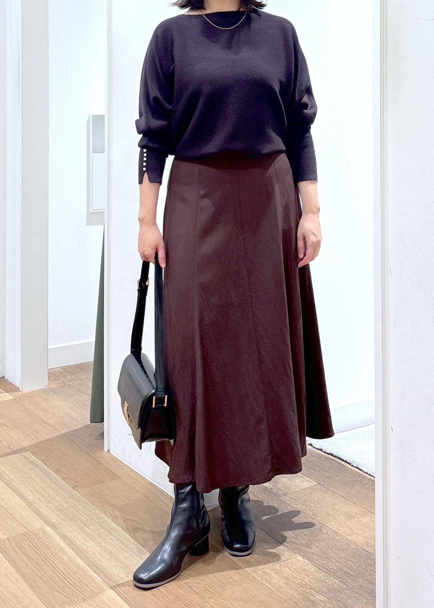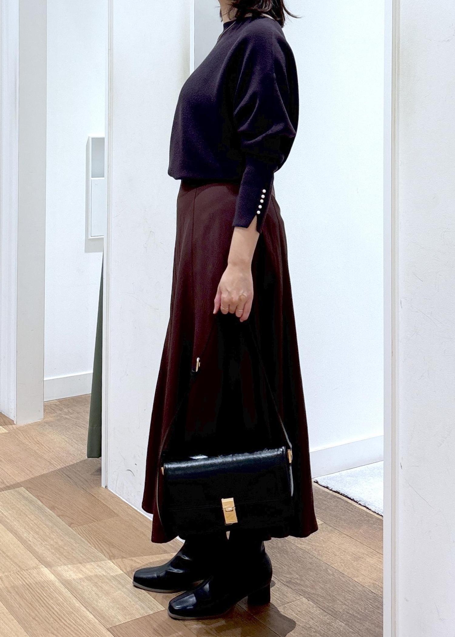 体のラインを拾いにくいドルマンのデザインと落ち感のある素材が、華奢に見せてくれる嬉しいニットです♪