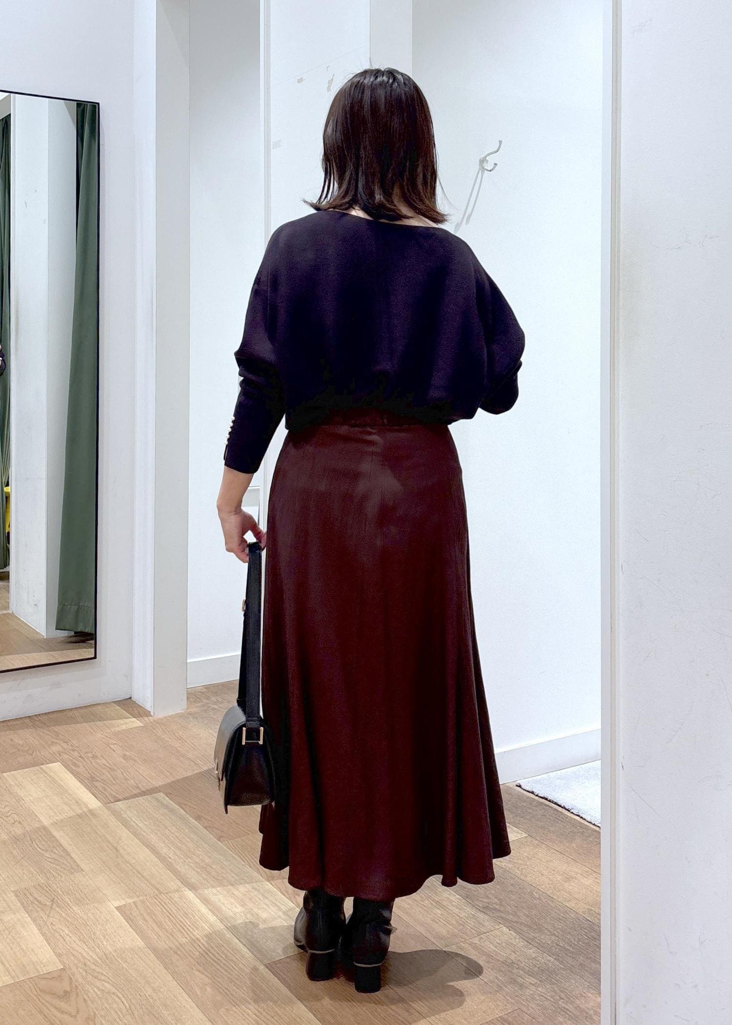 柔らかな素材なので、動くと揺れるマーメイドのシルエットがとても綺麗です。162㎝Mサイズで足首くらいの長さでした。