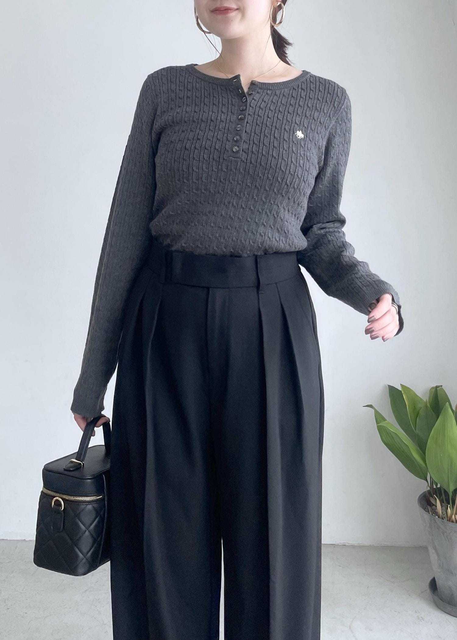 VIS【POLO BCS】VIS別注ヘンリーネックミニケーブルニットトップスチャコール / F¥6,600レビュー胸元と背中の刺繍が可愛いヘンリーネックトップス♡ コンパクトなサイズ感ですがボディラインを拾いすぎないので、1枚でも着用しやすいです。ケーブル編みなのでカジュアル過ぎず綺麗めシーンにも◎