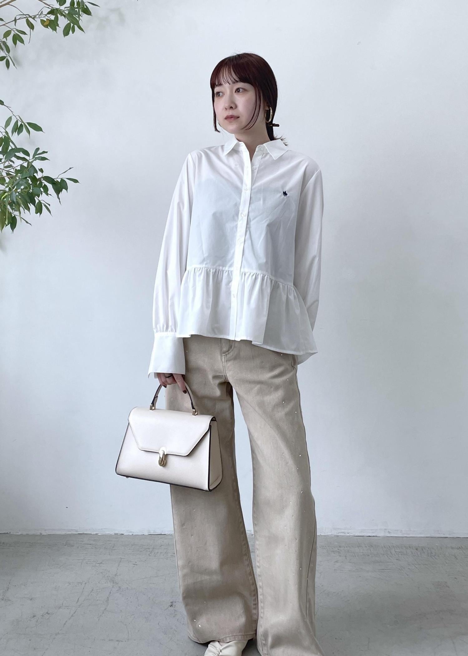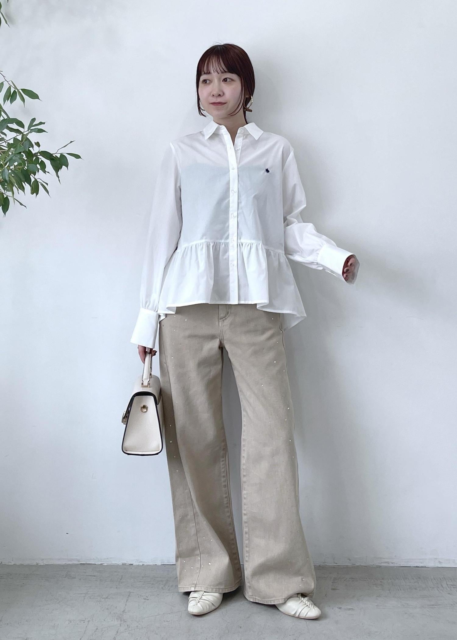 VIS【POLO BCS】VIS別注ペプラムデザインシャツオフホワイト / F¥6,930レビューペプラムシルエットが可愛いシャツ♡身長159cmでヒップがしっかり隠れます、やや前後差のある着丈なので横からのシルエットもスッキリと◎程よいハリ感と柔らかさがあるので、きちんと見えもしますがレイヤードコーデもしやすい着心地です!