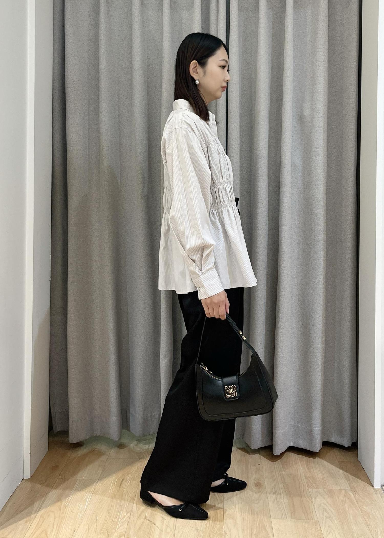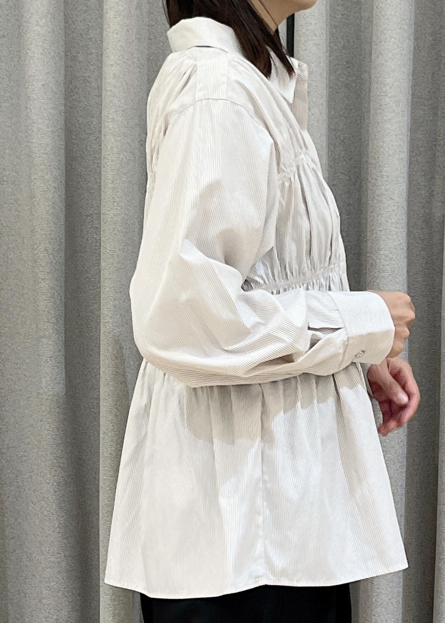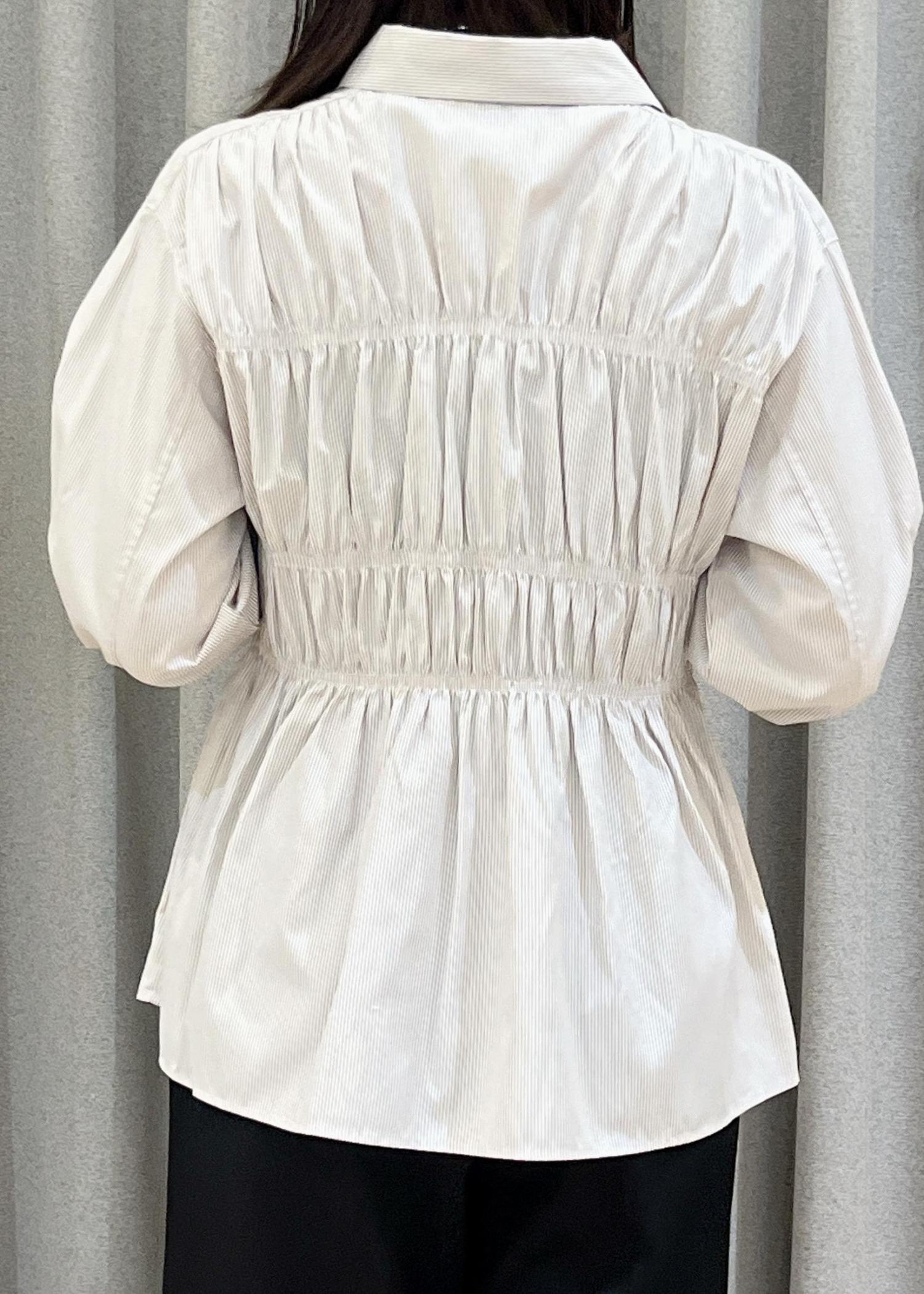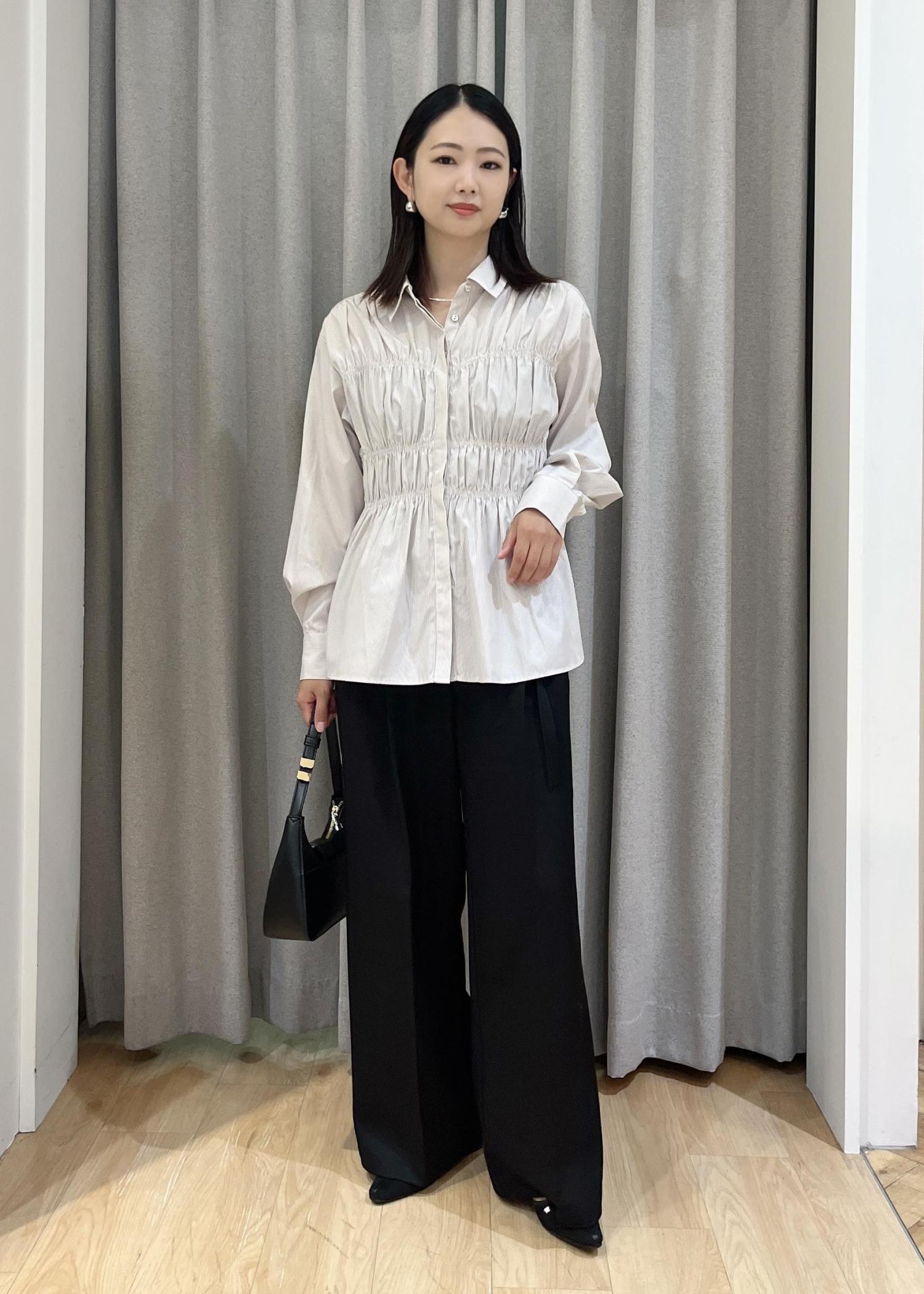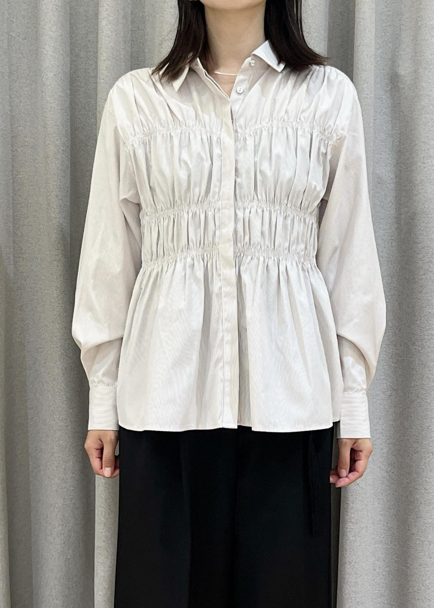 VISシャーリングデザインシャツベージュ系 / F¥5,489レビュー締め付け感もなくストレスフリーで着用出来ます。160cmでヒップにかかるぐらいの着丈です。