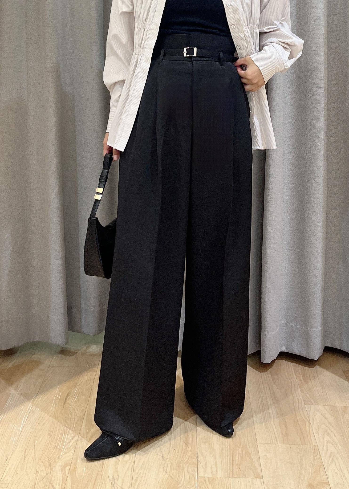 VISベルトディテールタックワイドパンツ/イージーケアブラック / M¥6,589レビューさらっと素材+ハイウエストで脚長見え◎オンオフ使える万能タックパンツです。着丈は足首辺りです。