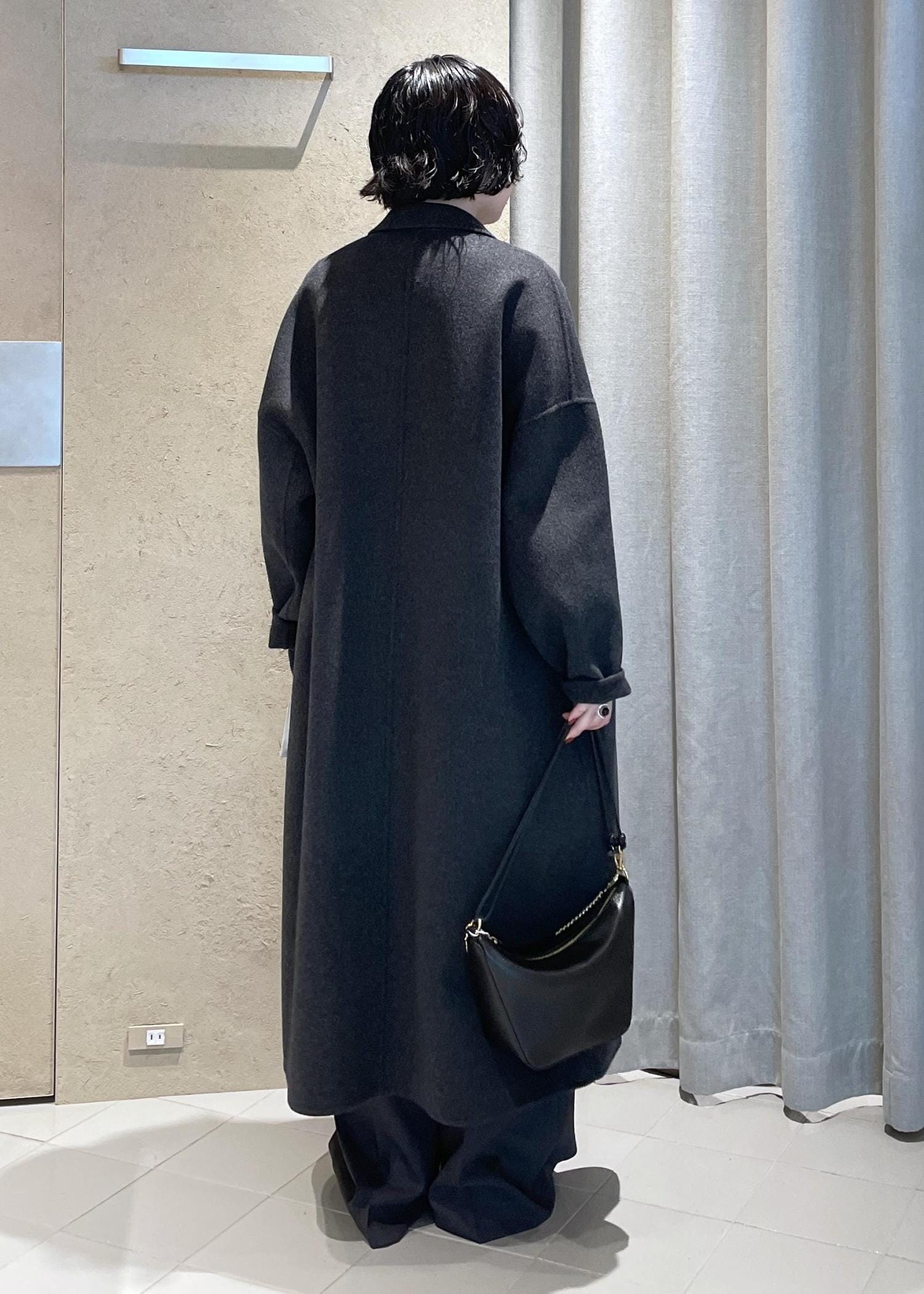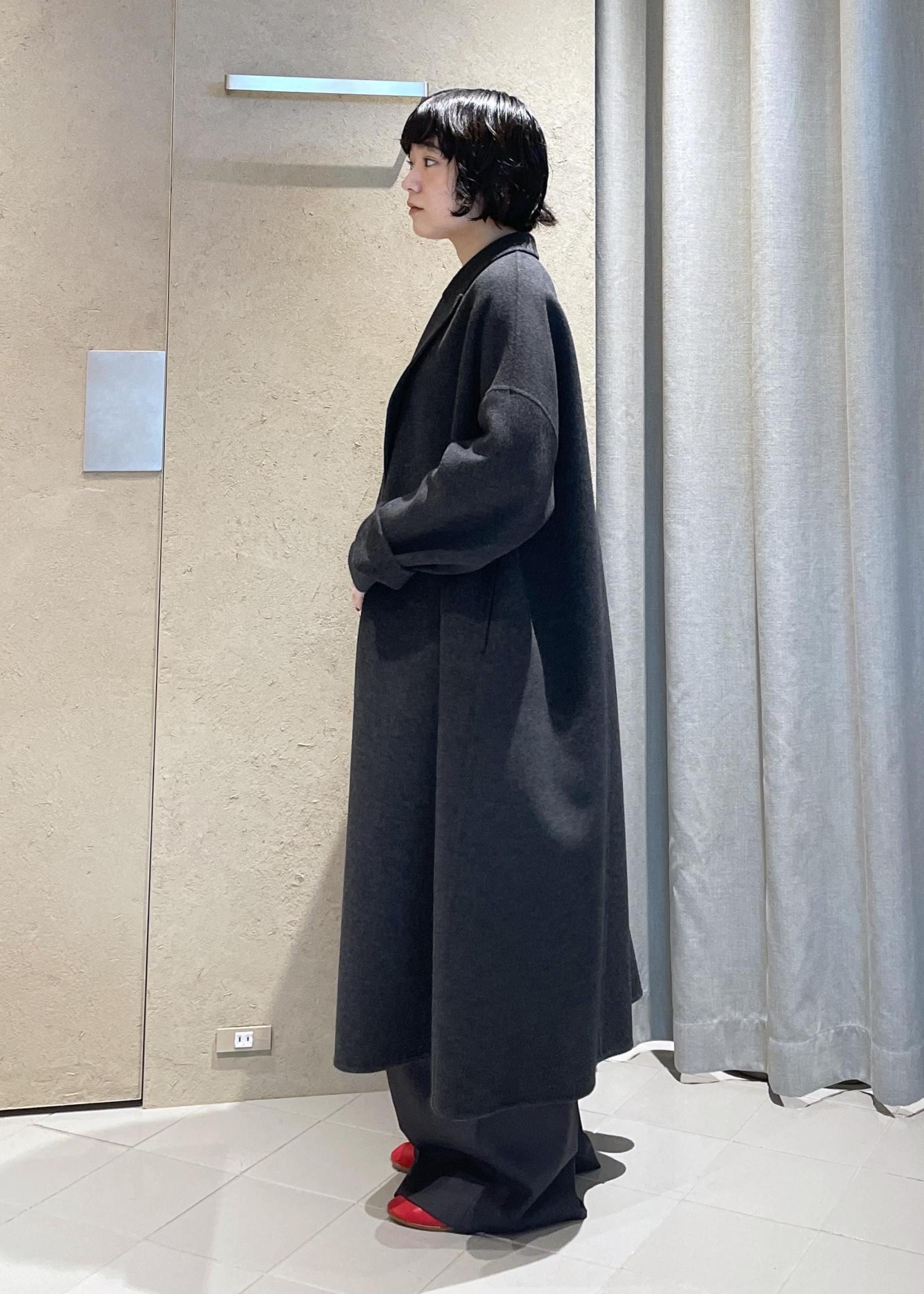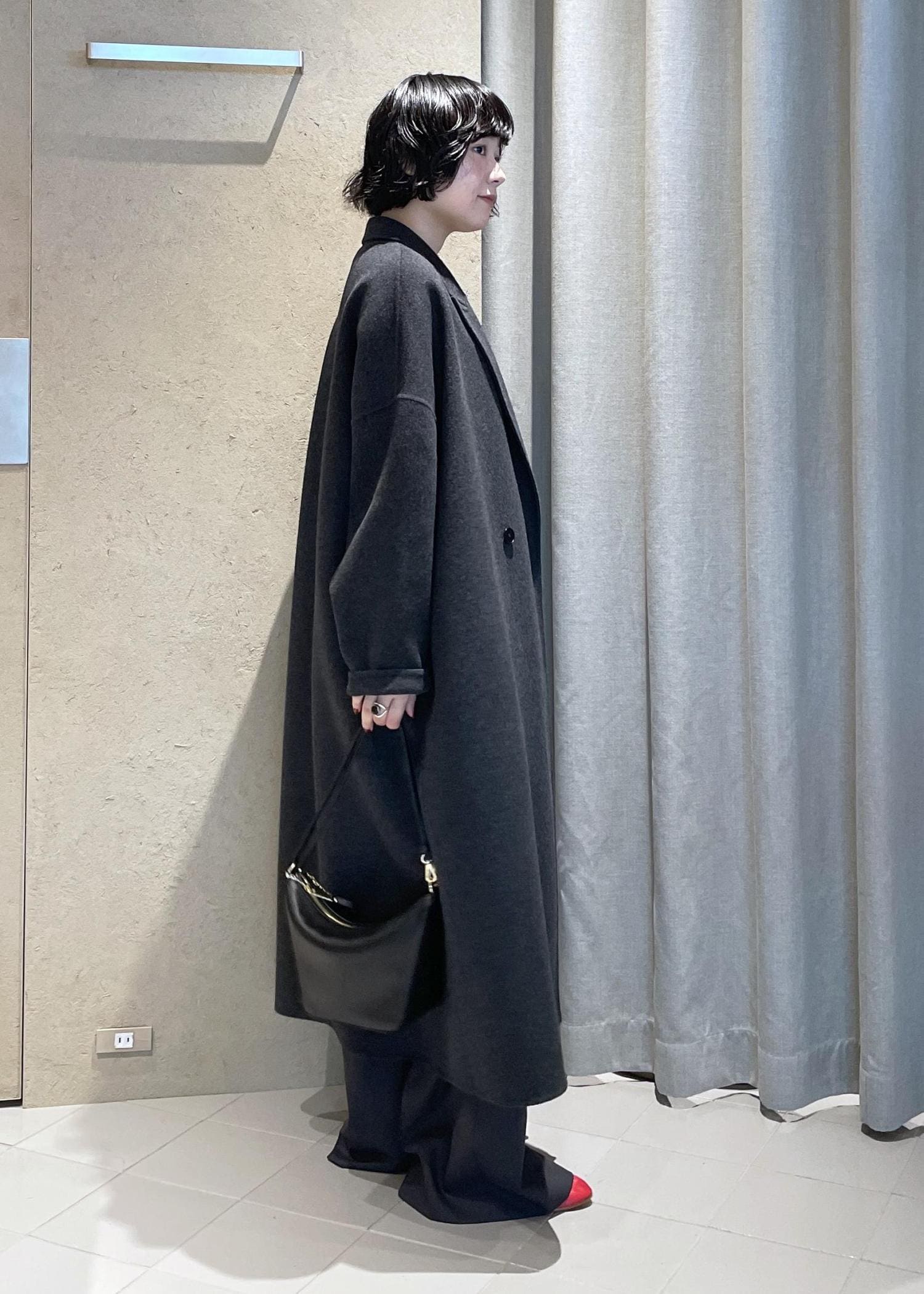 予約SALON adam et ropéシャルムリバーロングコートチャコール / S¥69,300レビュー身長155センチでSサイズを着用して、ふくらはぎぐらいの丈です。ウールのアウターですがかなり軽く肩こりもなりにくいと思います。裏地が付いていない分、早めの時期から来ていただけますし、大きめサイズなので中も厚手のニットでもしっかり羽織れます。