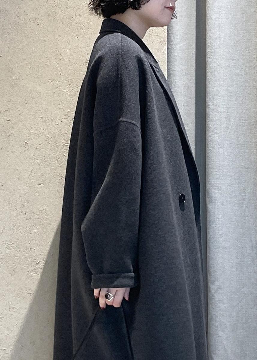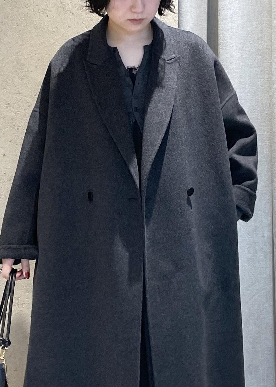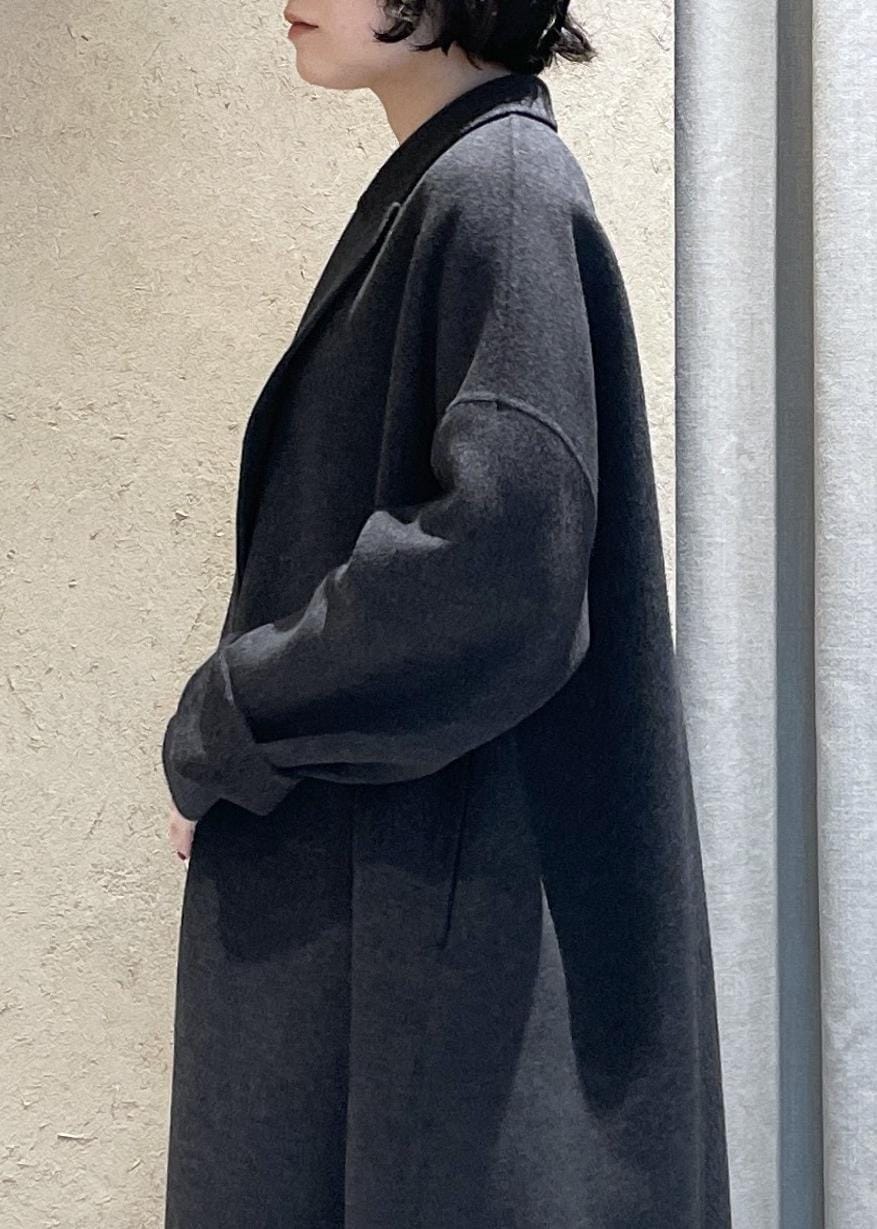 予約SALON adam et ropéシャルムリバーロングコートチャコール / S¥69,300レビュー身長155センチでSサイズを着用して、ふくらはぎぐらいの丈です。ウールのアウターですがかなり軽く肩こりもなりにくいと思います。裏地が付いていない分、早めの時期から来ていただけますし、大きめサイズなので中も厚手のニットでもしっかり羽織れます。