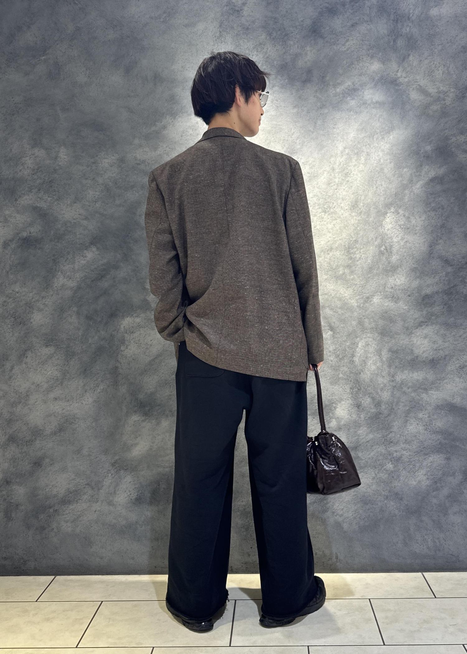 キレイな形のスウェットパンツにクラシカルテーラードジャケットを合わせた大人キレイめコーデです。ラフな着心地ですが、しっかりキレイ見えします。スウェット感のないスウェットパンツなのでパジャマ感が出ずらいのもポイントです。流行りのスウェットパンツをキレイにジャケットで合わせてみました。
