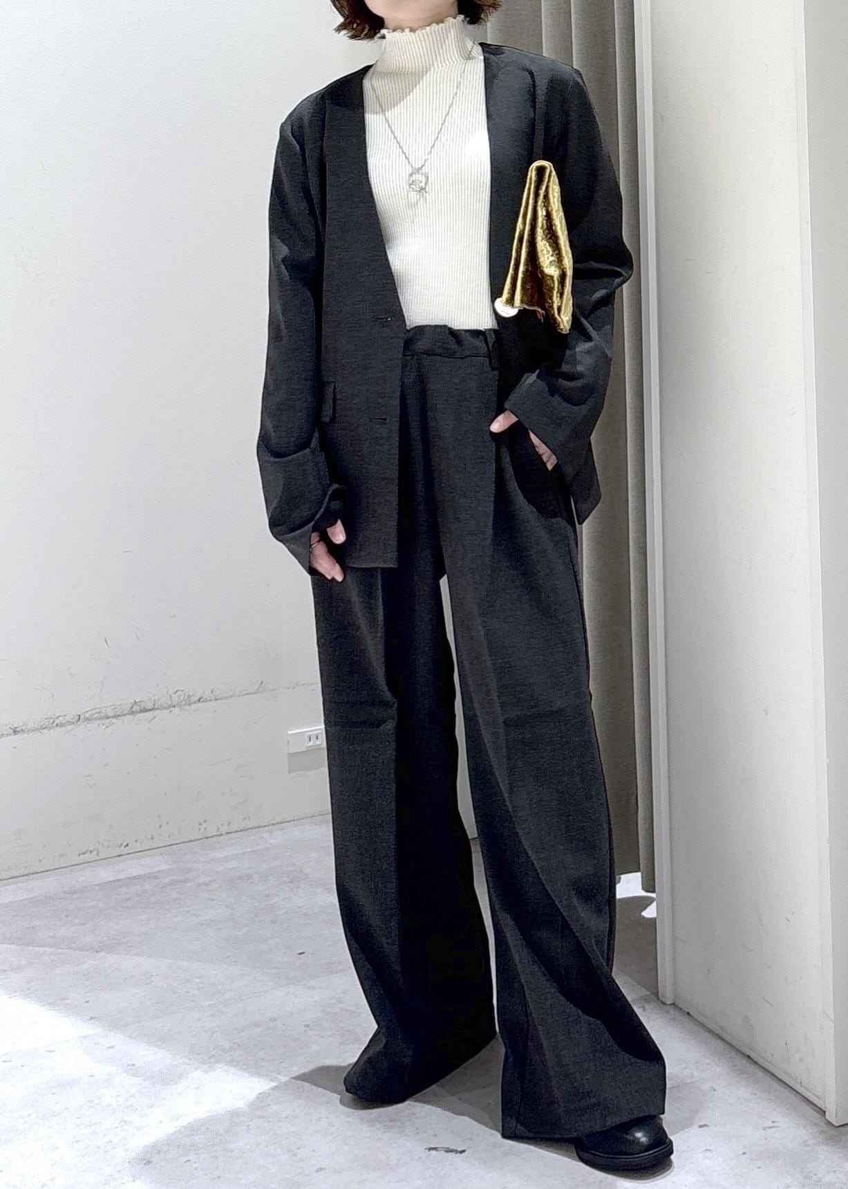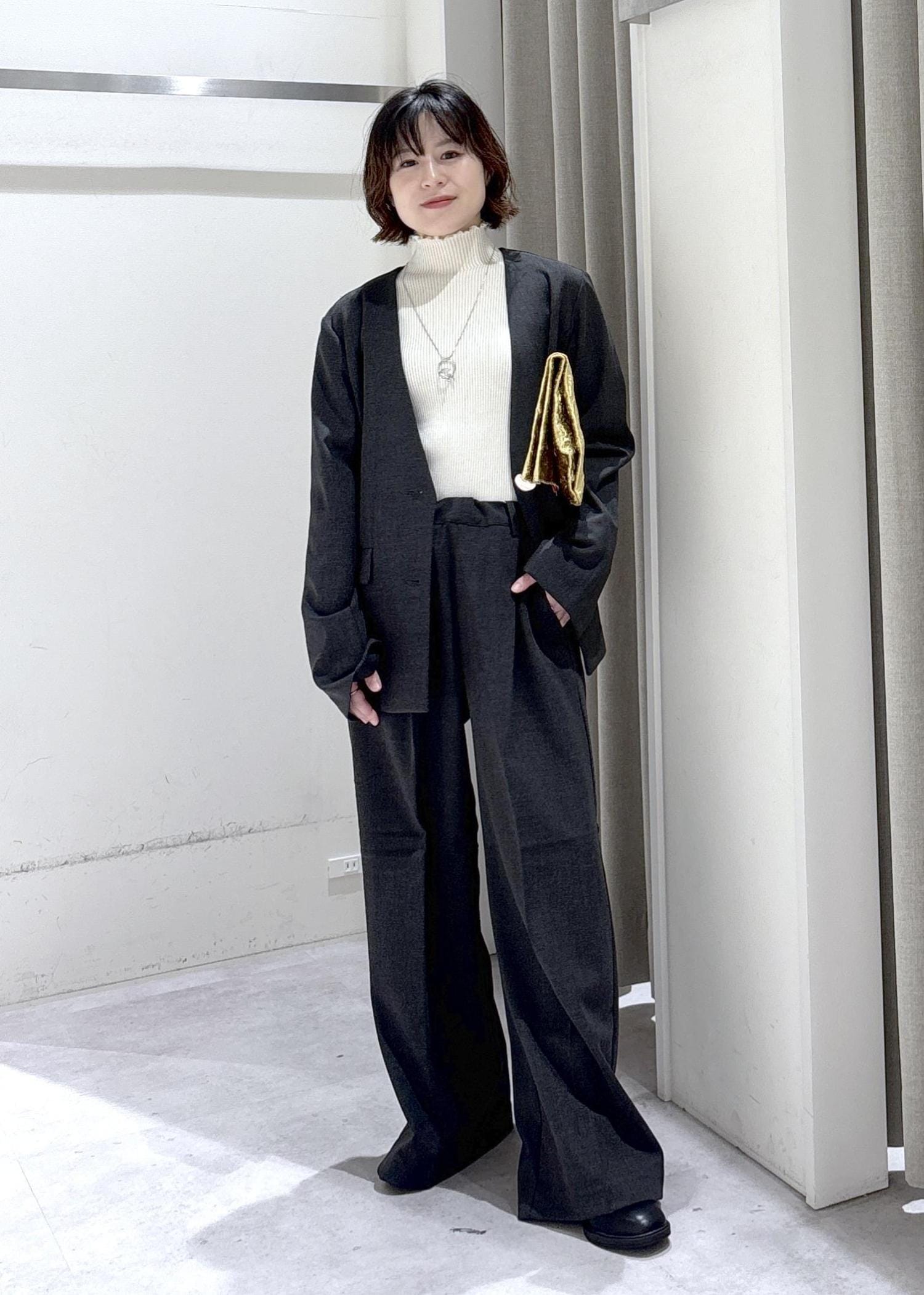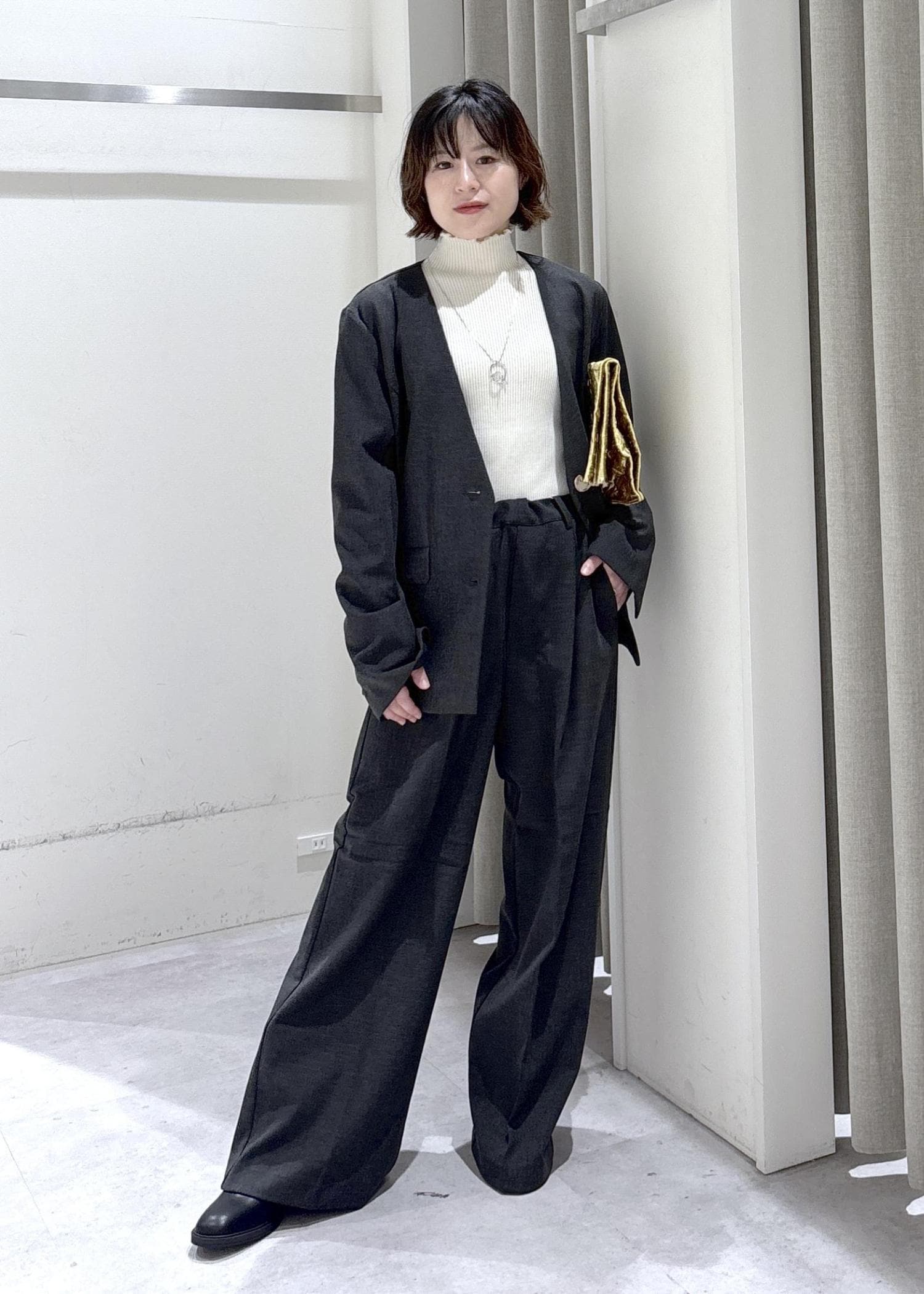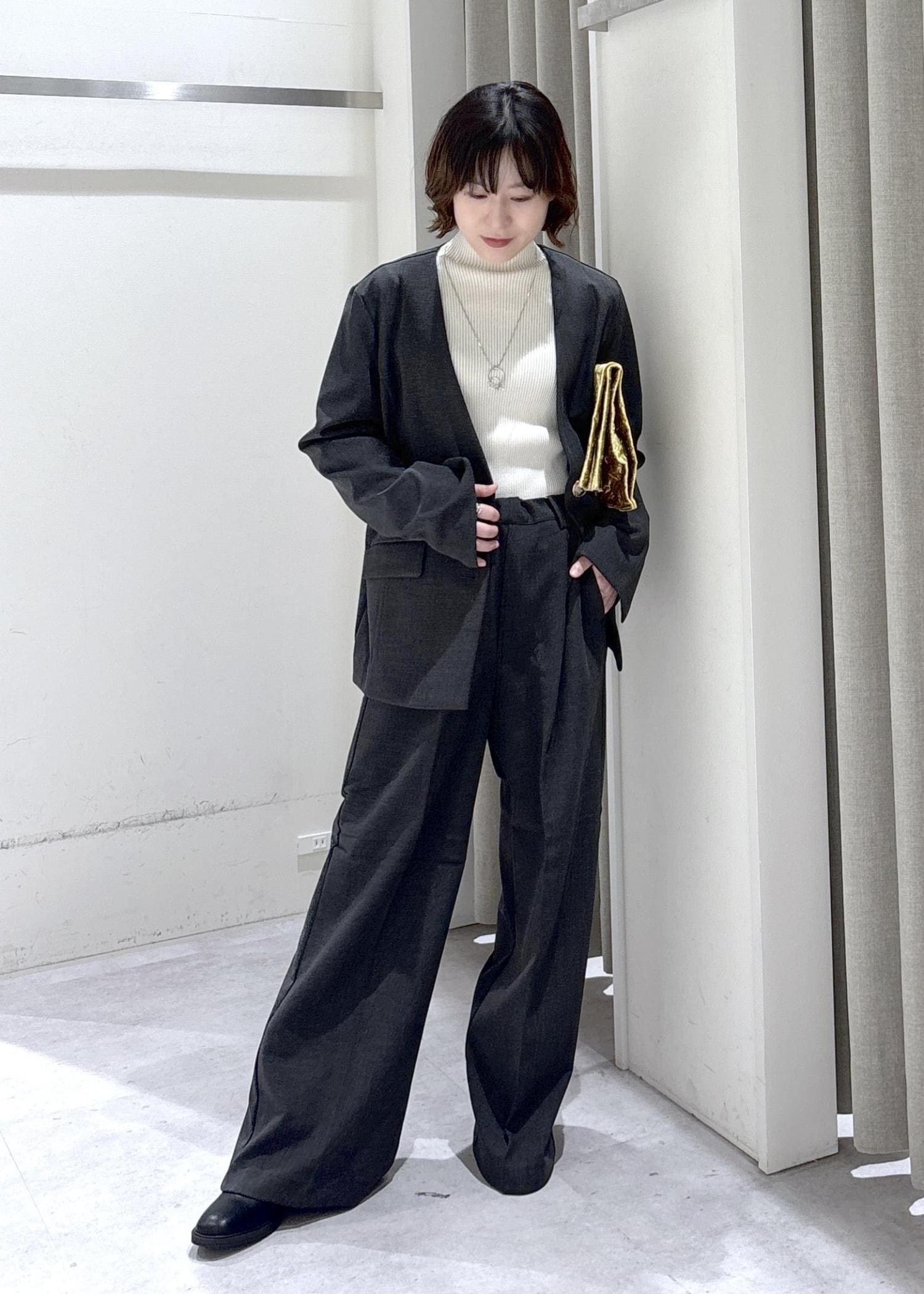 LE CERCLE par ropéタックワイドパンツ/セットアップ対応チャコール / F¥10,890レビュー低身長149cmで脚長効果抜群!