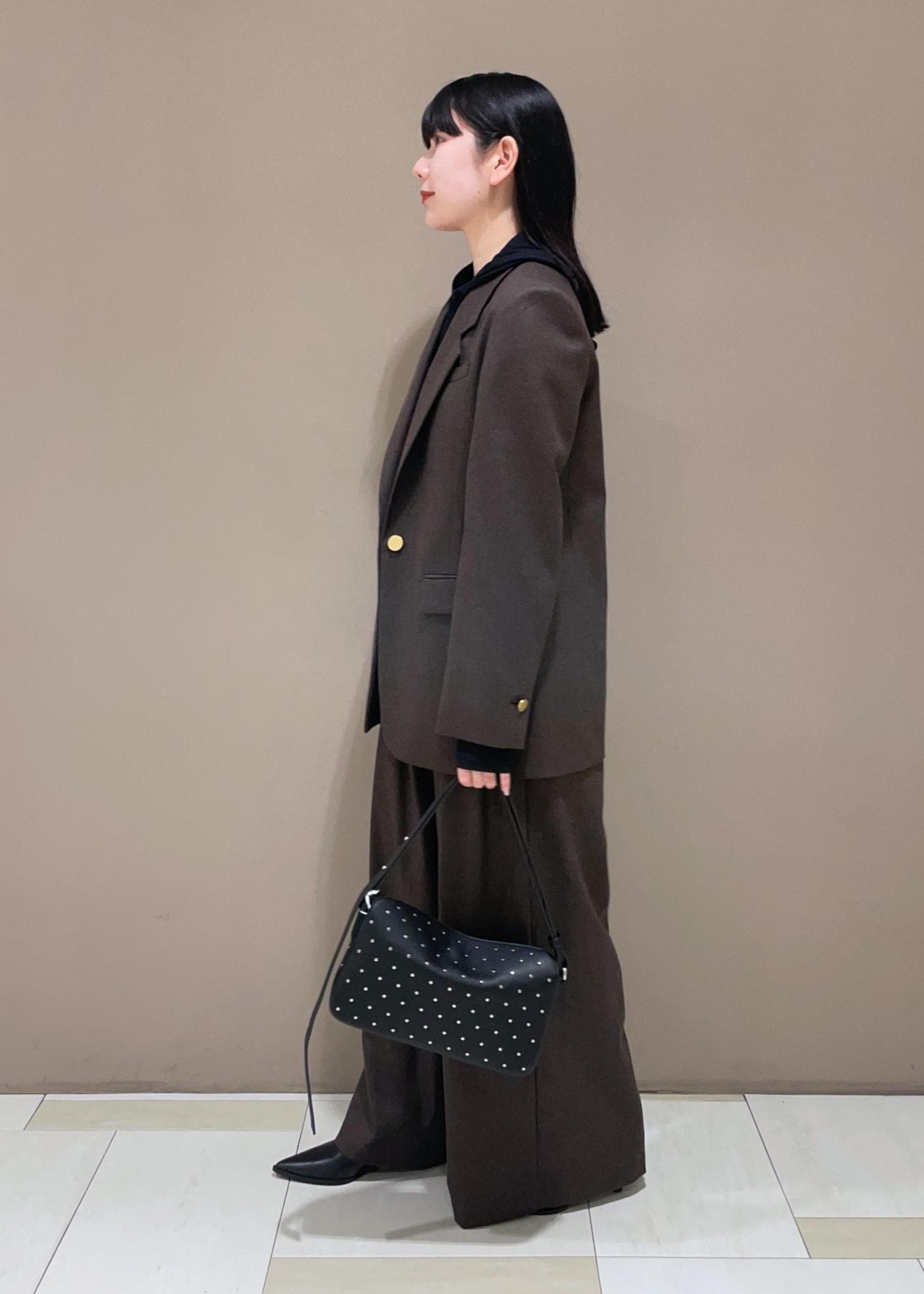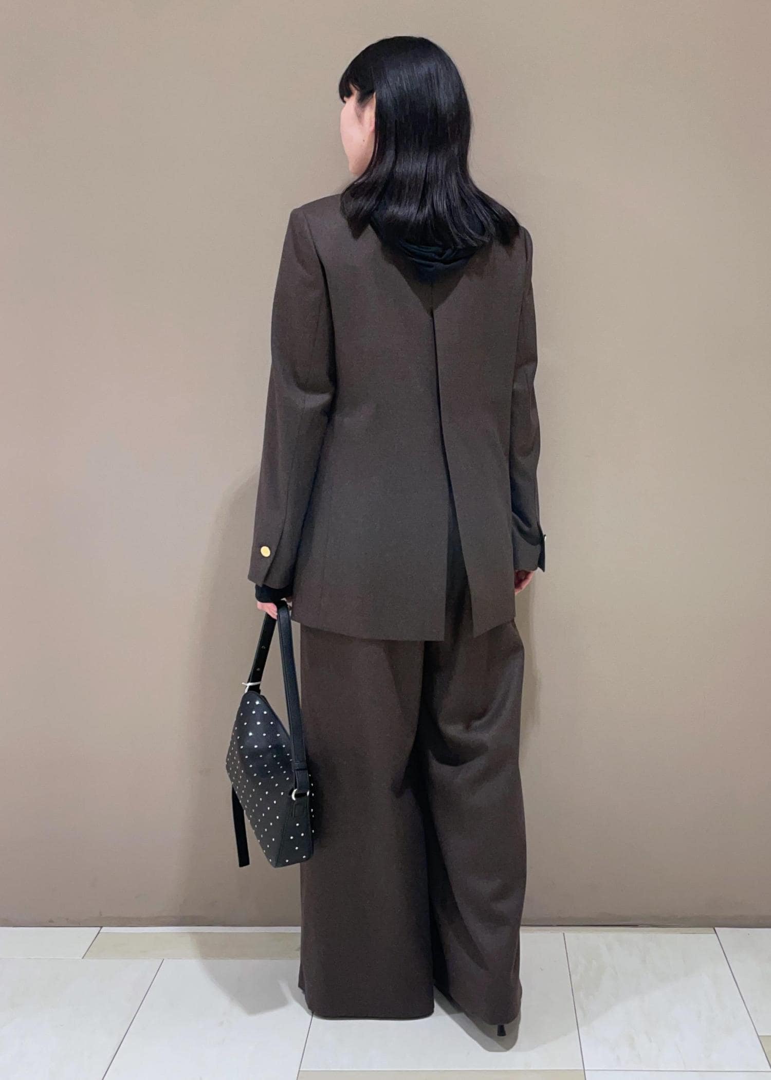 ADAM ET ROPÉ FEMMEシングルブレストスリットジャケットダークブラウン / 36¥39,600レビュー肩周りがすっきりで、アダムエロぺのジャケットの中では、コンパクトに着られる一枚。軽いので気疲れもしにくいです◎
