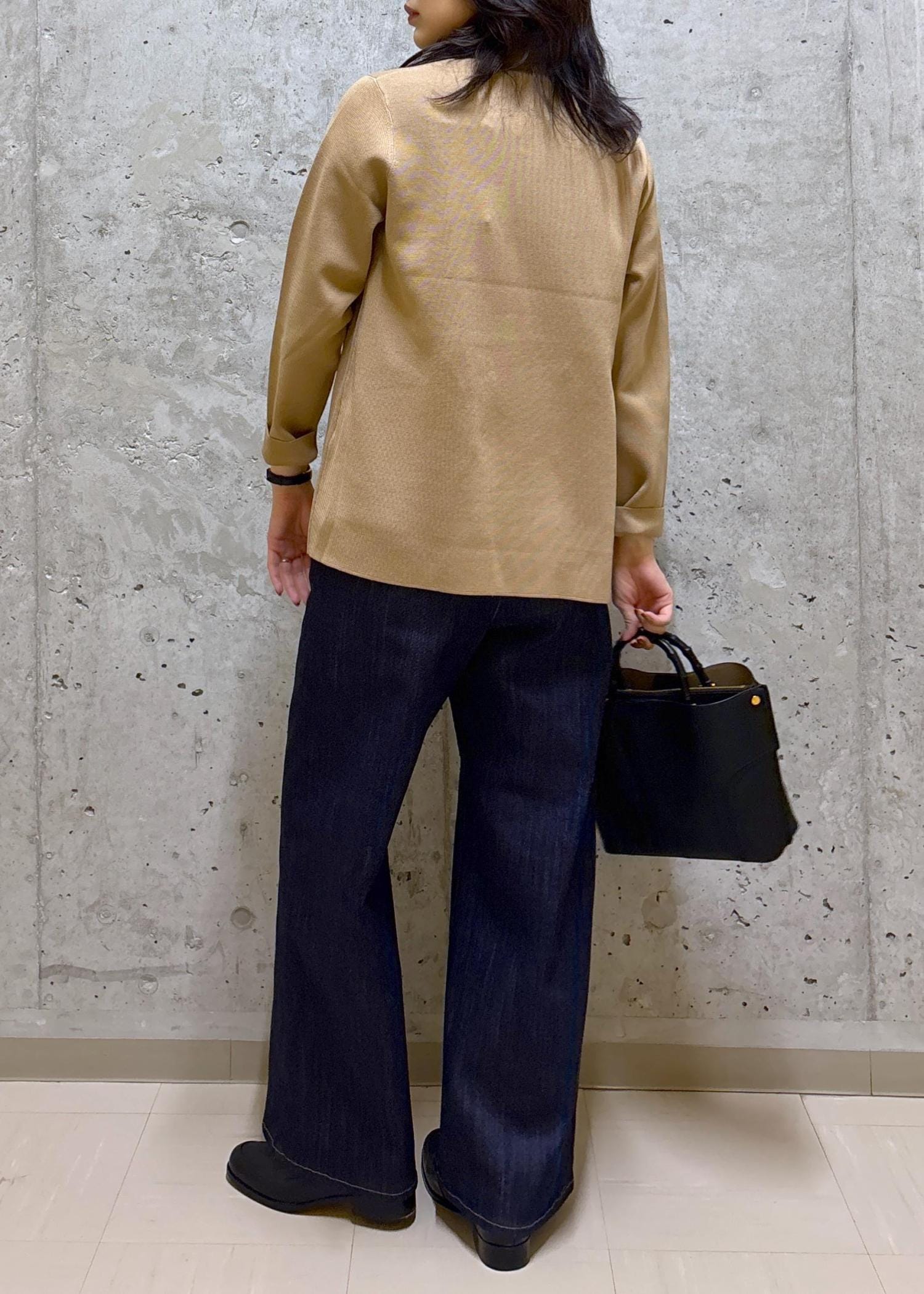 ヒップに掛かるくらいの短すぎない丈感で、裏地無しなのでカーディガン感覚で羽織れます。