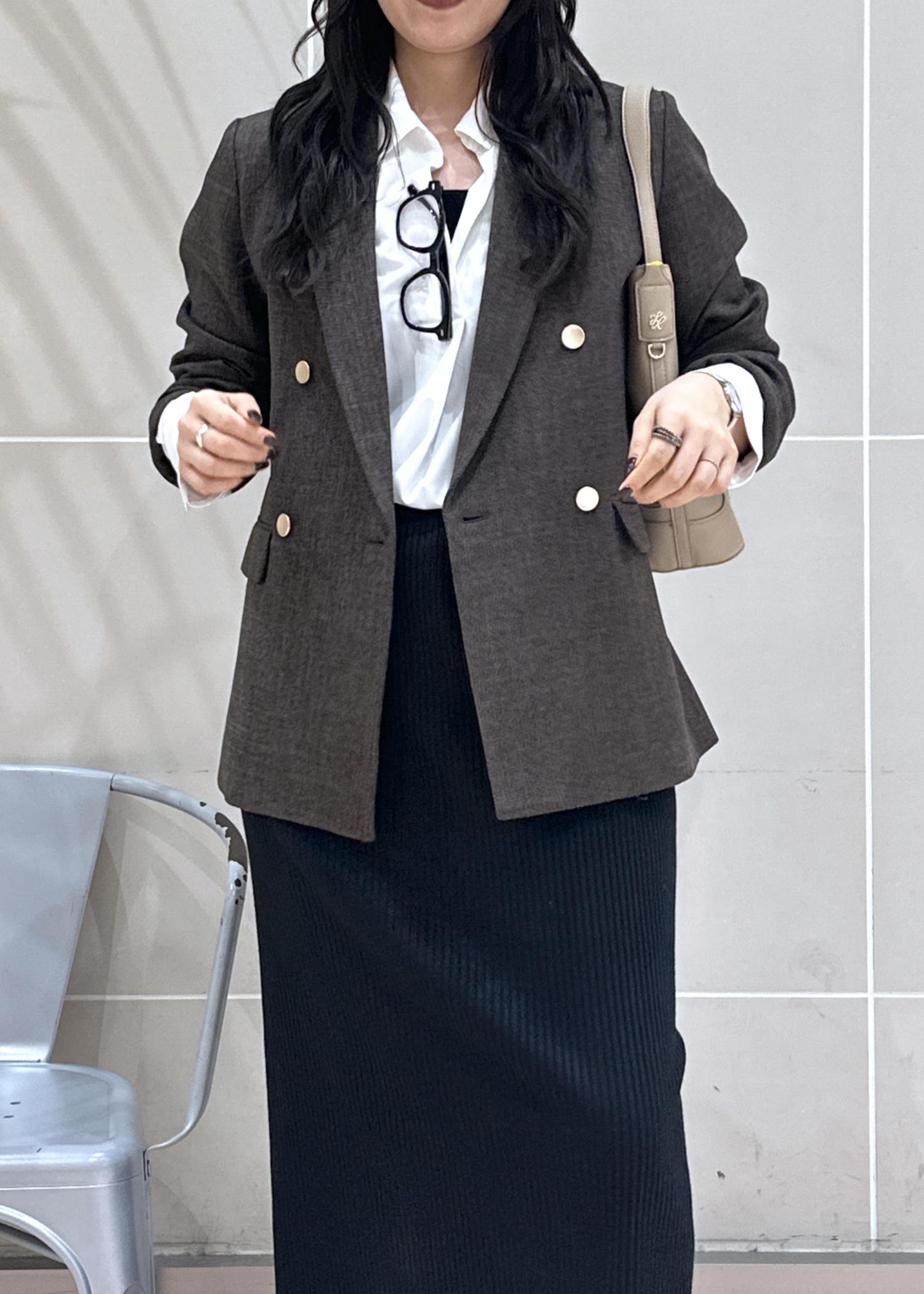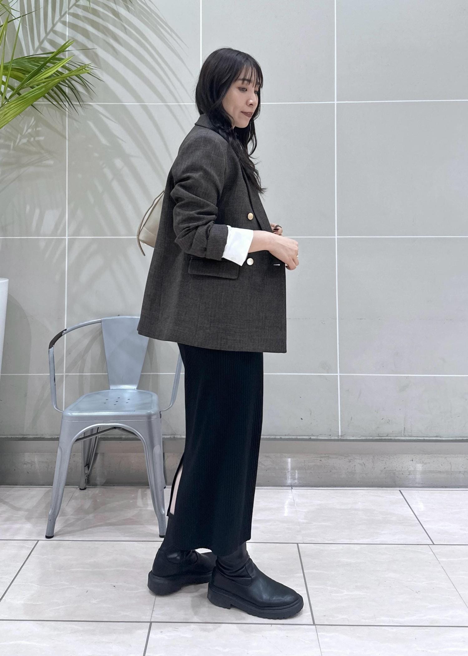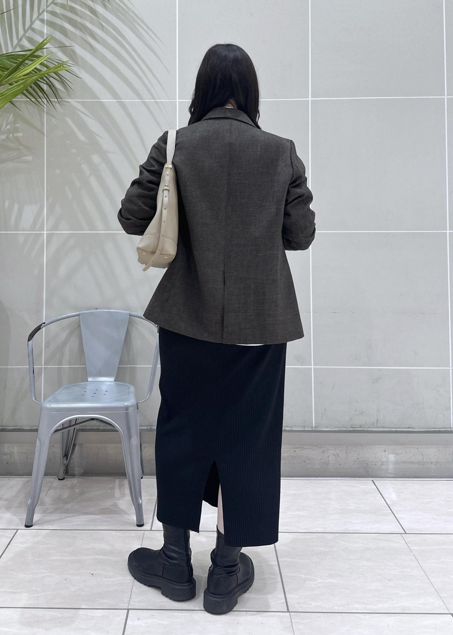 ツイード調で高見えし、やや重量感のある見た目ですが、実際はとても軽く着心地が良いです。 -