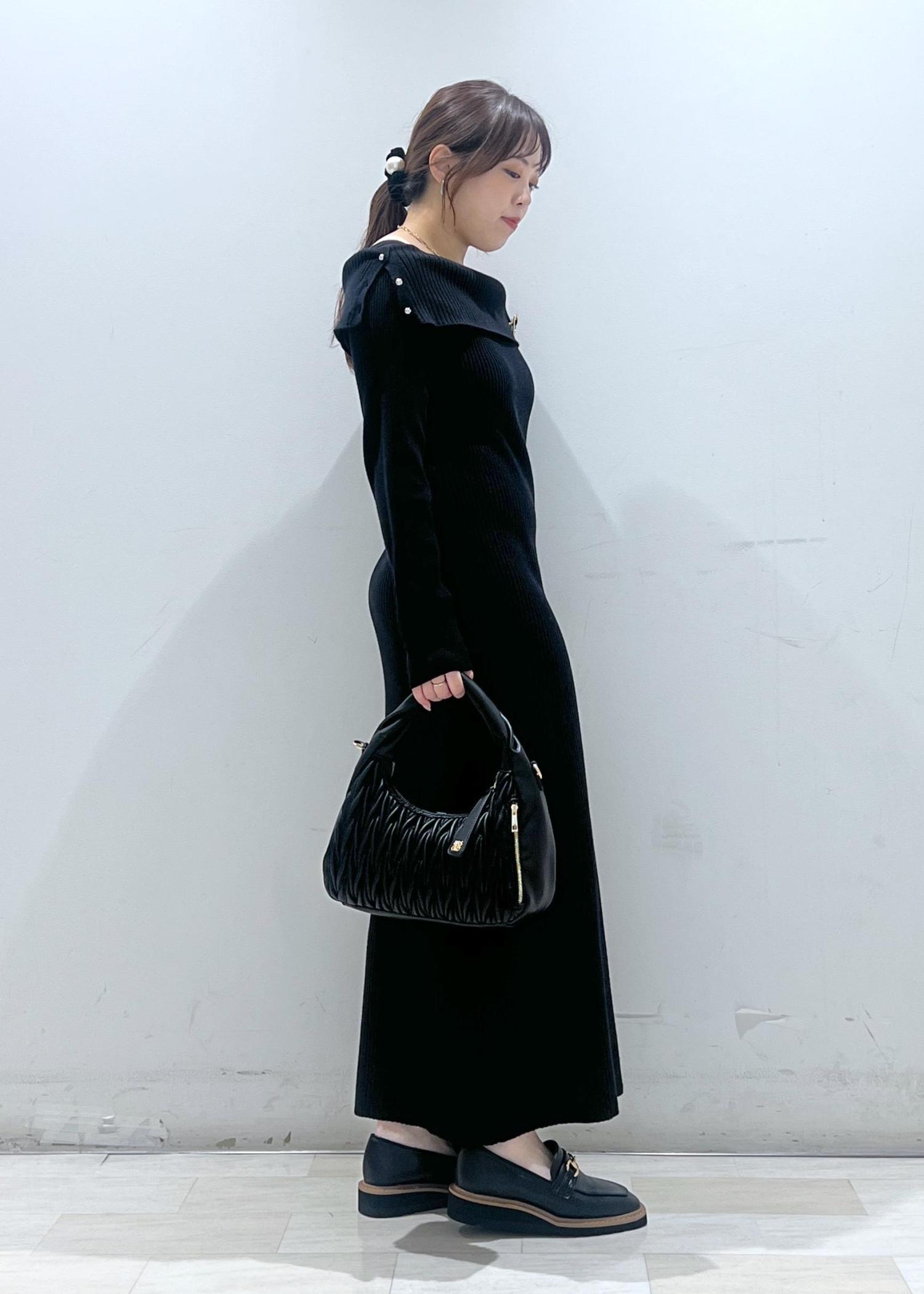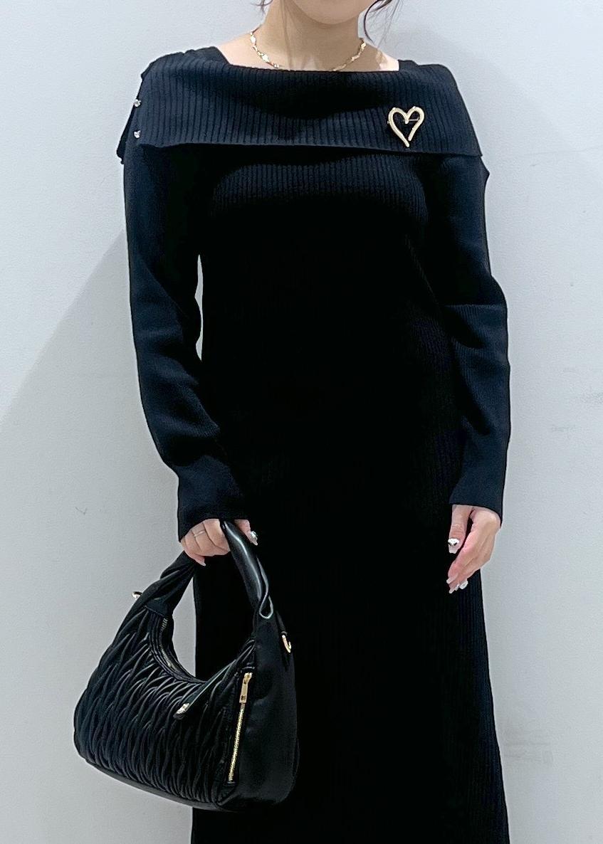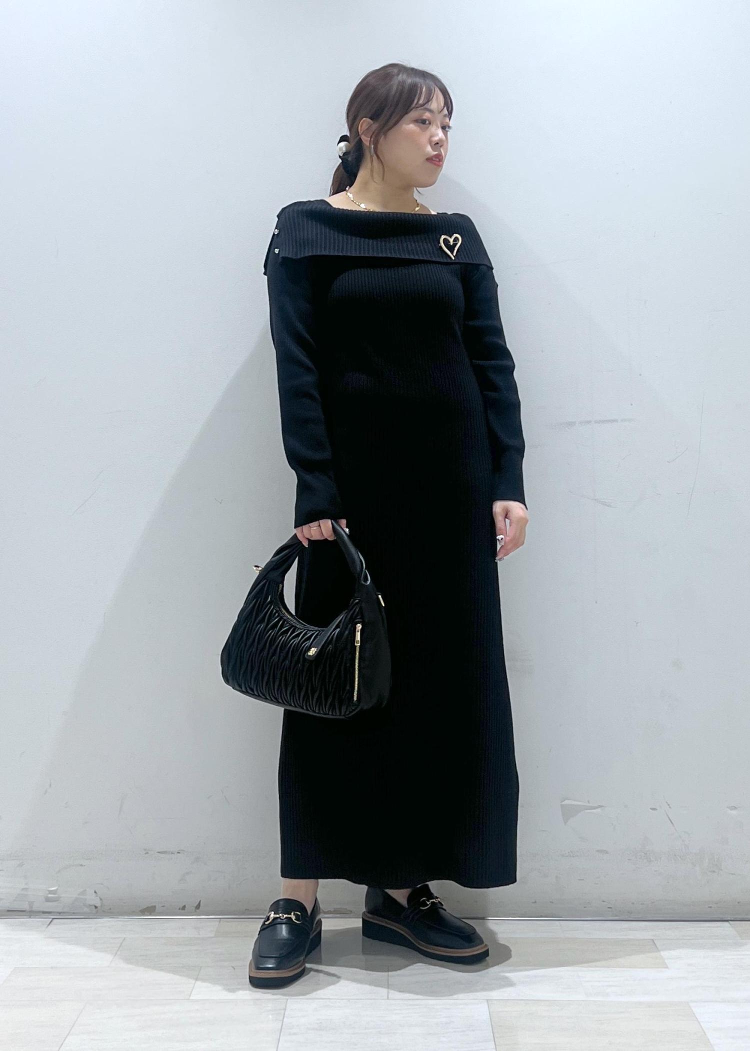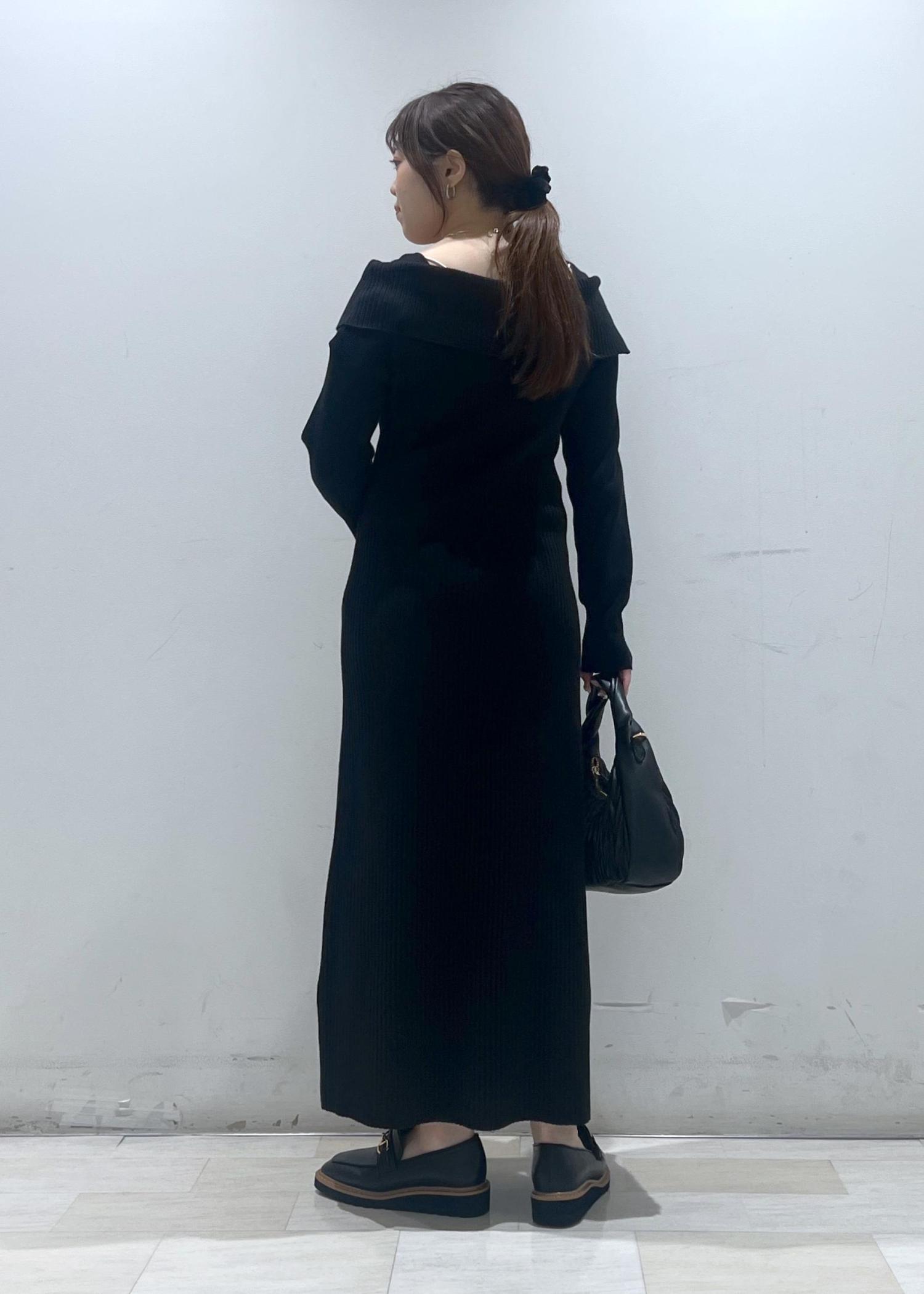 VISアシメオフショルリブニット美シルエットワンピース/着丈が選べるブラック / F¥8,899レビュー中肉のモチっとしたとても着心地のよいニット素材のオフショルデザインワンピース。