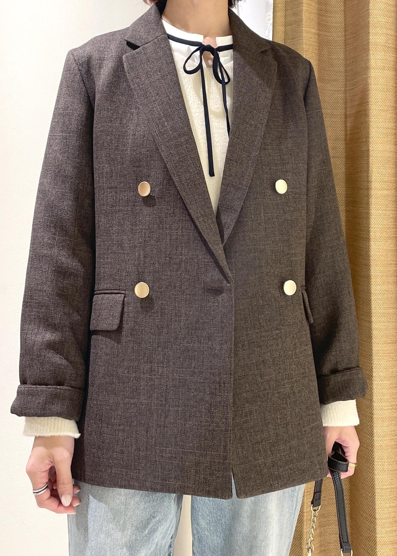 全体的にゆとりがある為、女性らしい華奢感が際立ちますし、インナーにブラウスやカットソーをレイヤードして頂くのもオススメです。