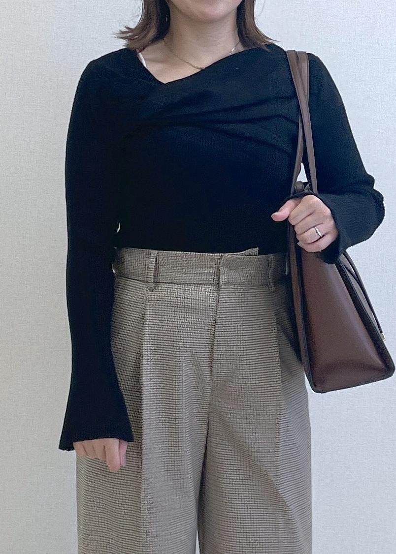 VISアシメねじれデザインリブニットブラック / F¥5,489レビュー150cmでFサイズ着用です。