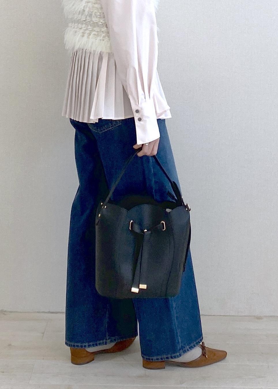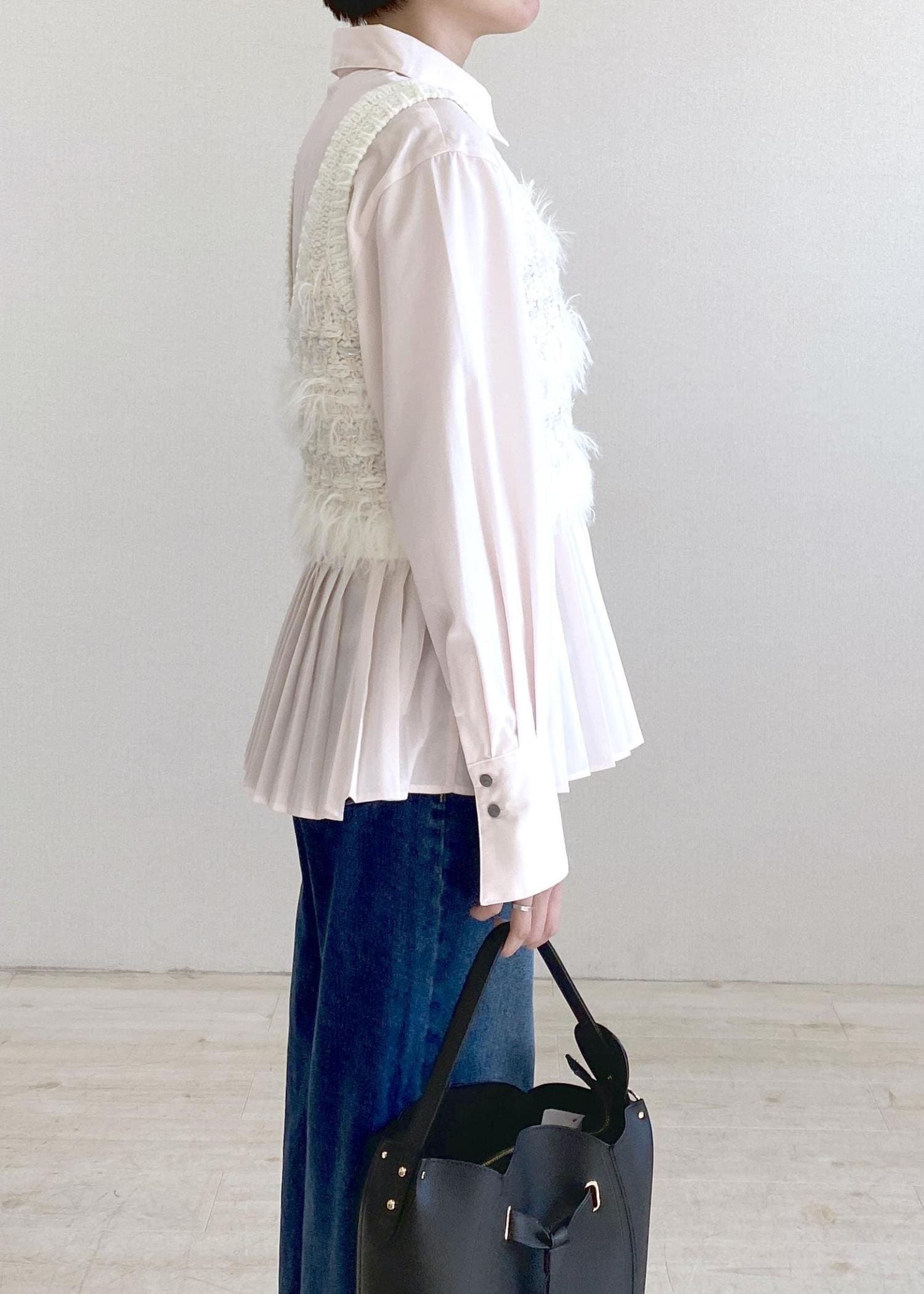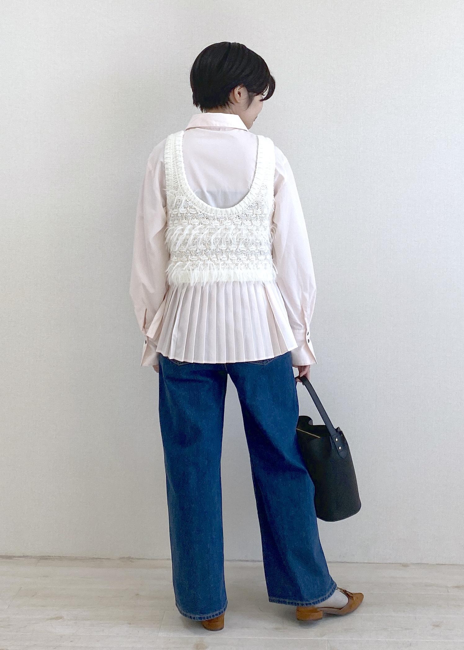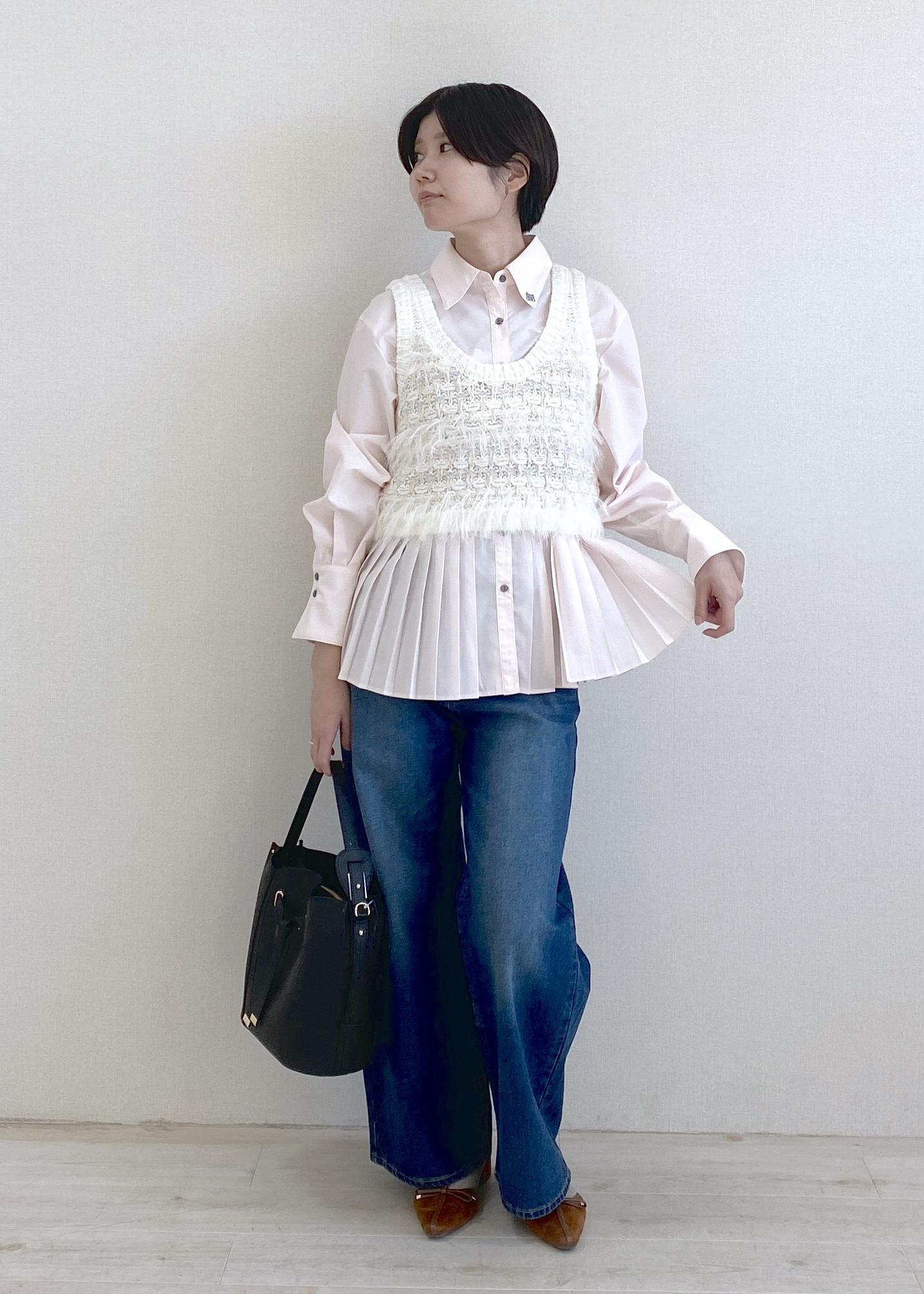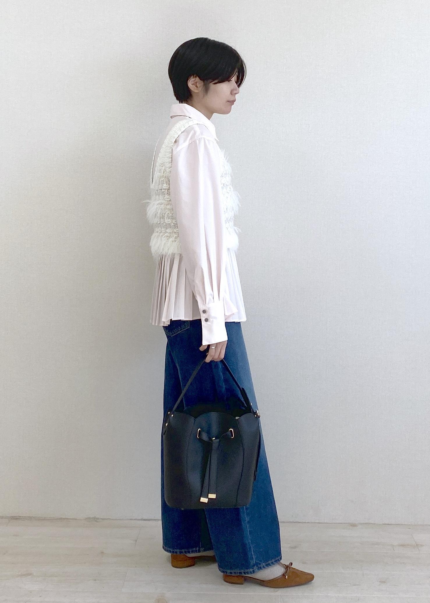 プリーツのボリューム感もそこまで無いのでボトムスも幅広く対応可能です。 -