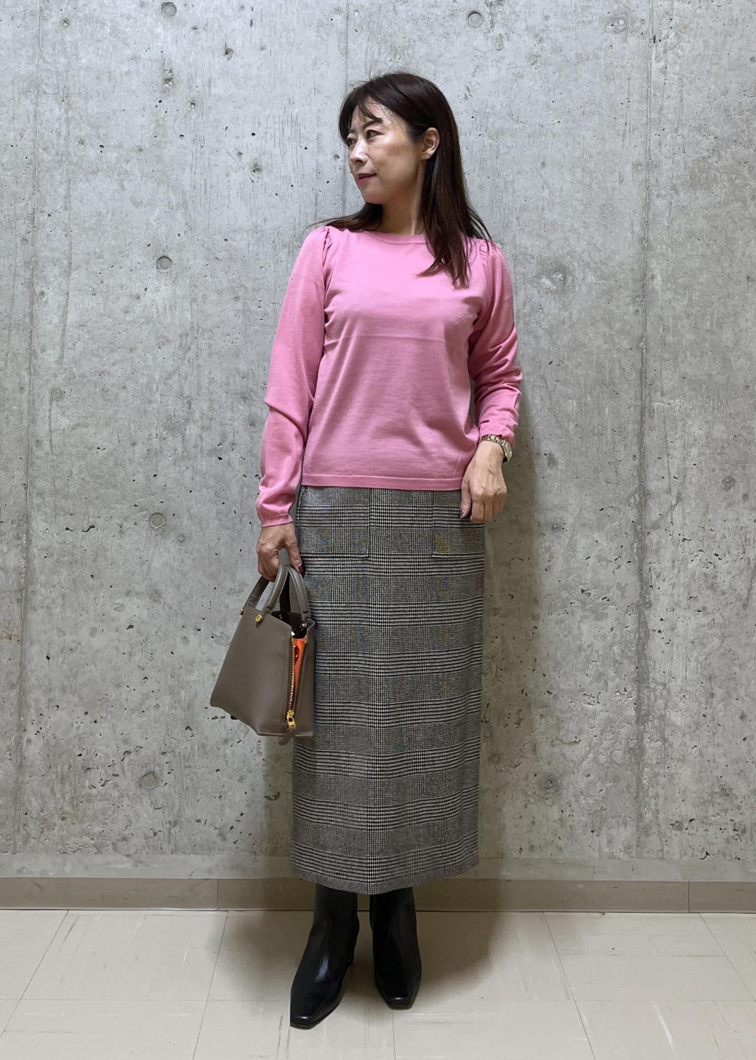 ROPÉ袖ギャザークルーネックニットプルオーバー/イージーケアローズピンク / F¥19,800レビュー程よいゆとりがありますが、ヒップにかかる程の丈と、肩が落ちるデザインではないのでコンパクトに見えるので小柄な方にオススメのシルエットです。