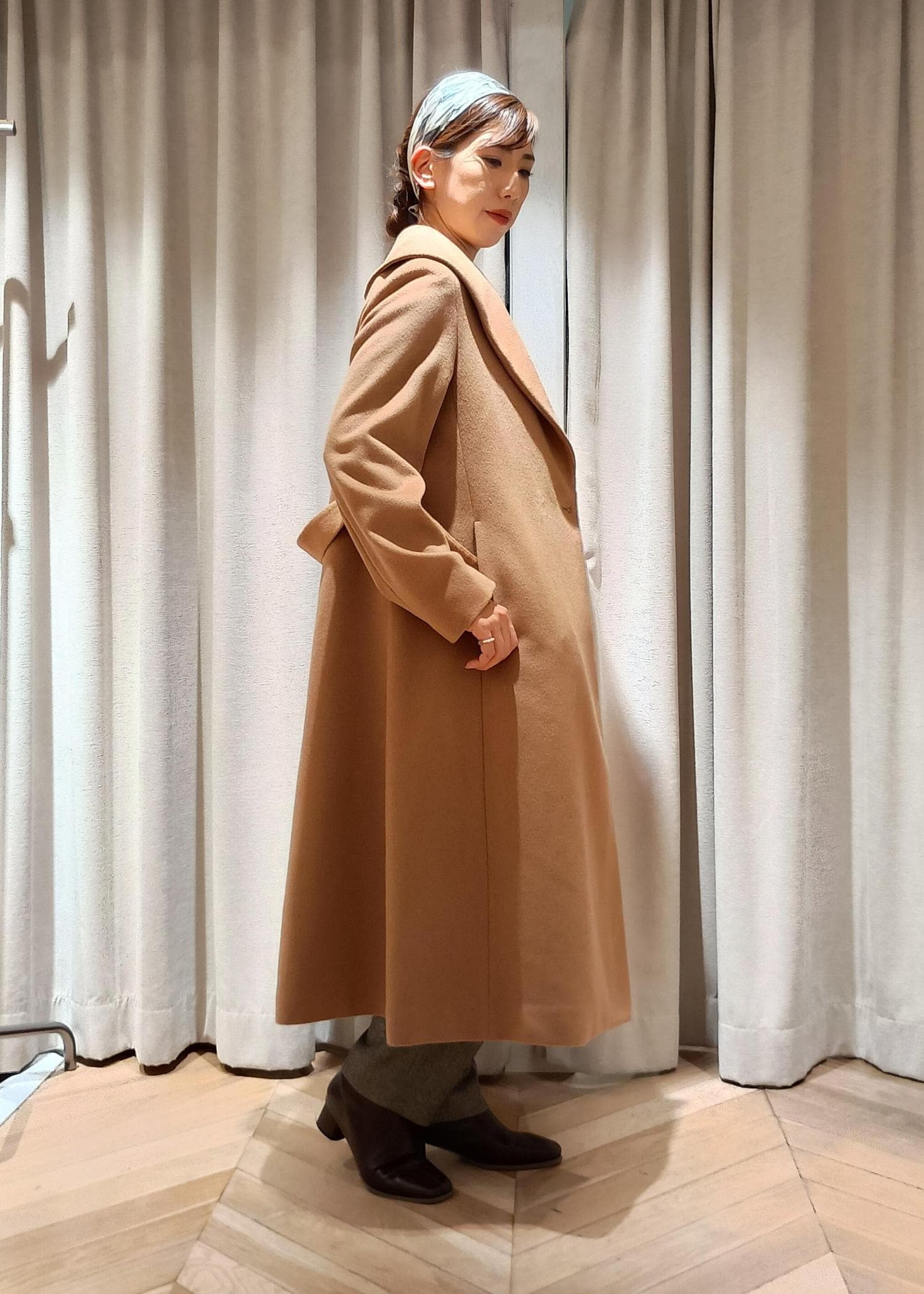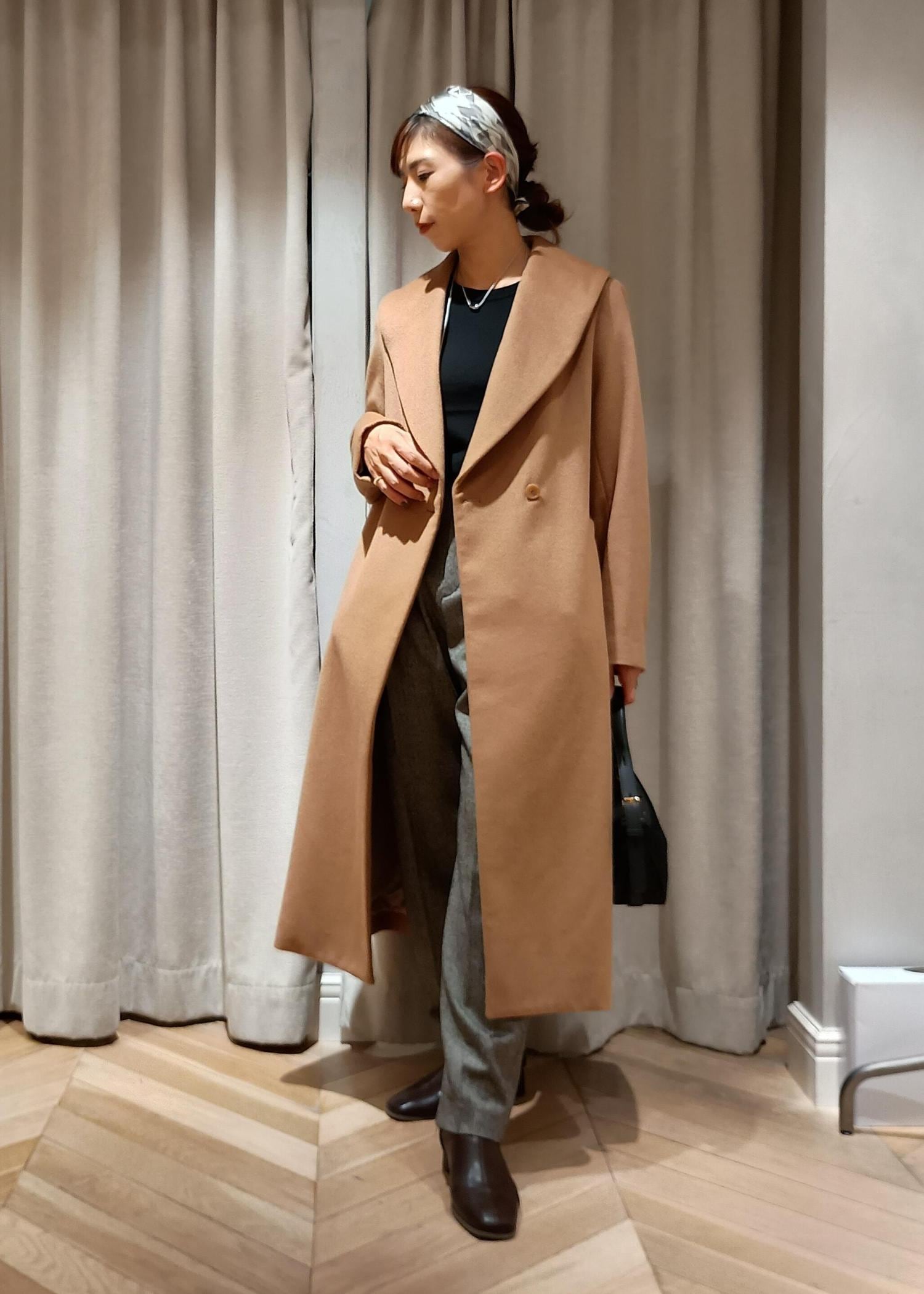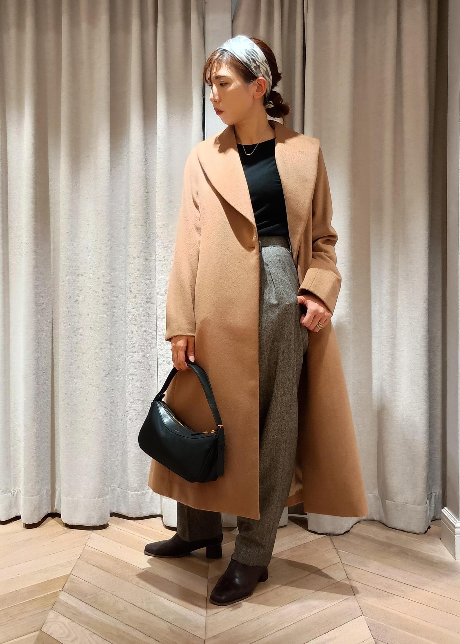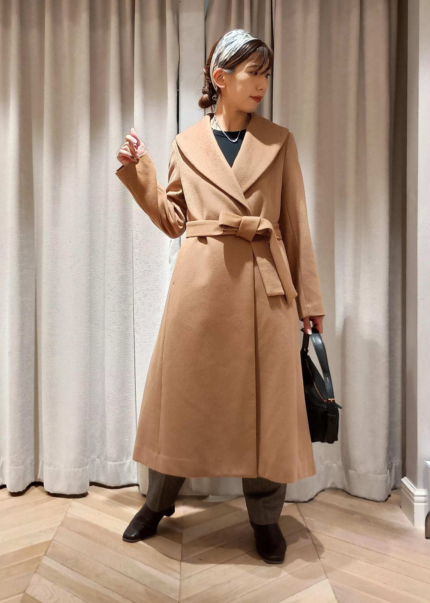 NEW!ROPÉプレミアムカシミヤ ショールカラーコート【25AW】キャメル / 38¥69,300レビューショールカラーでレディな印象のロングコート。きちんと感もありながら華やかなスタイリングにもおすすめなシルエットで様々なシーンで活躍します。袖幅は狭すぎないので中に厚みのあるトップスを合わせても窮屈さを感じず着膨れして見えないのが嬉しいポイントです。