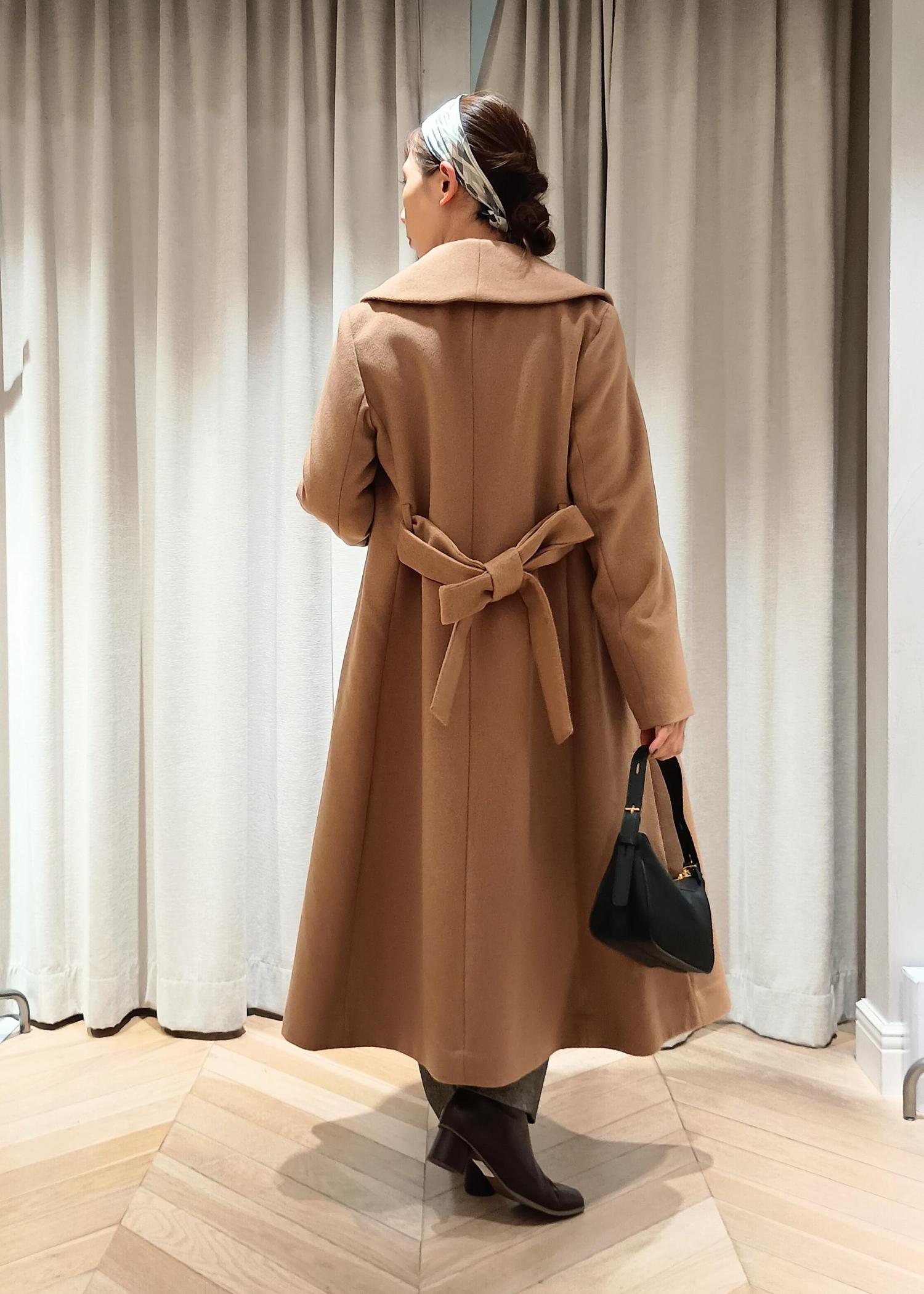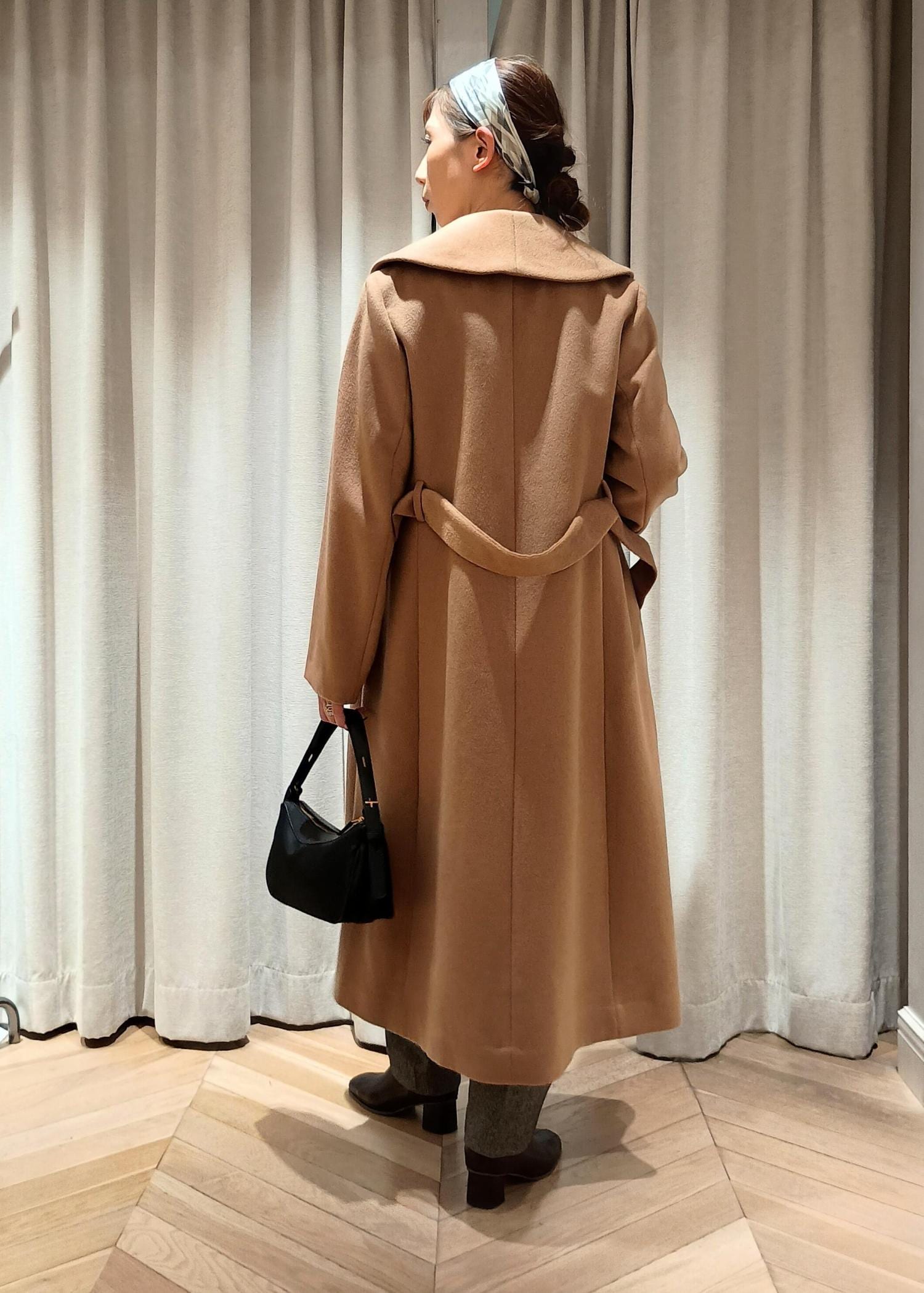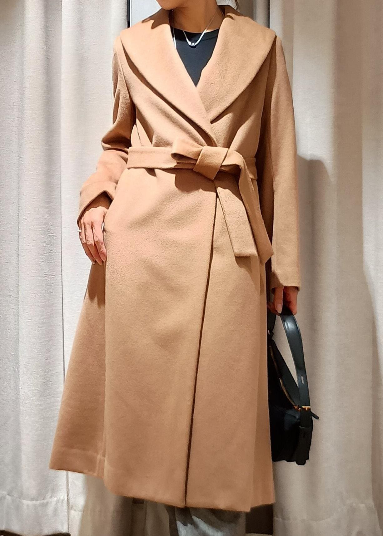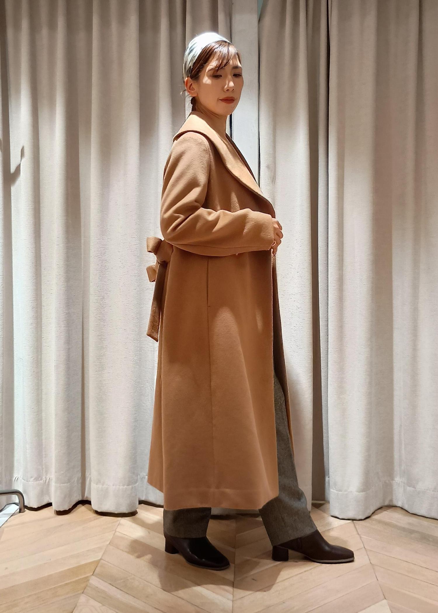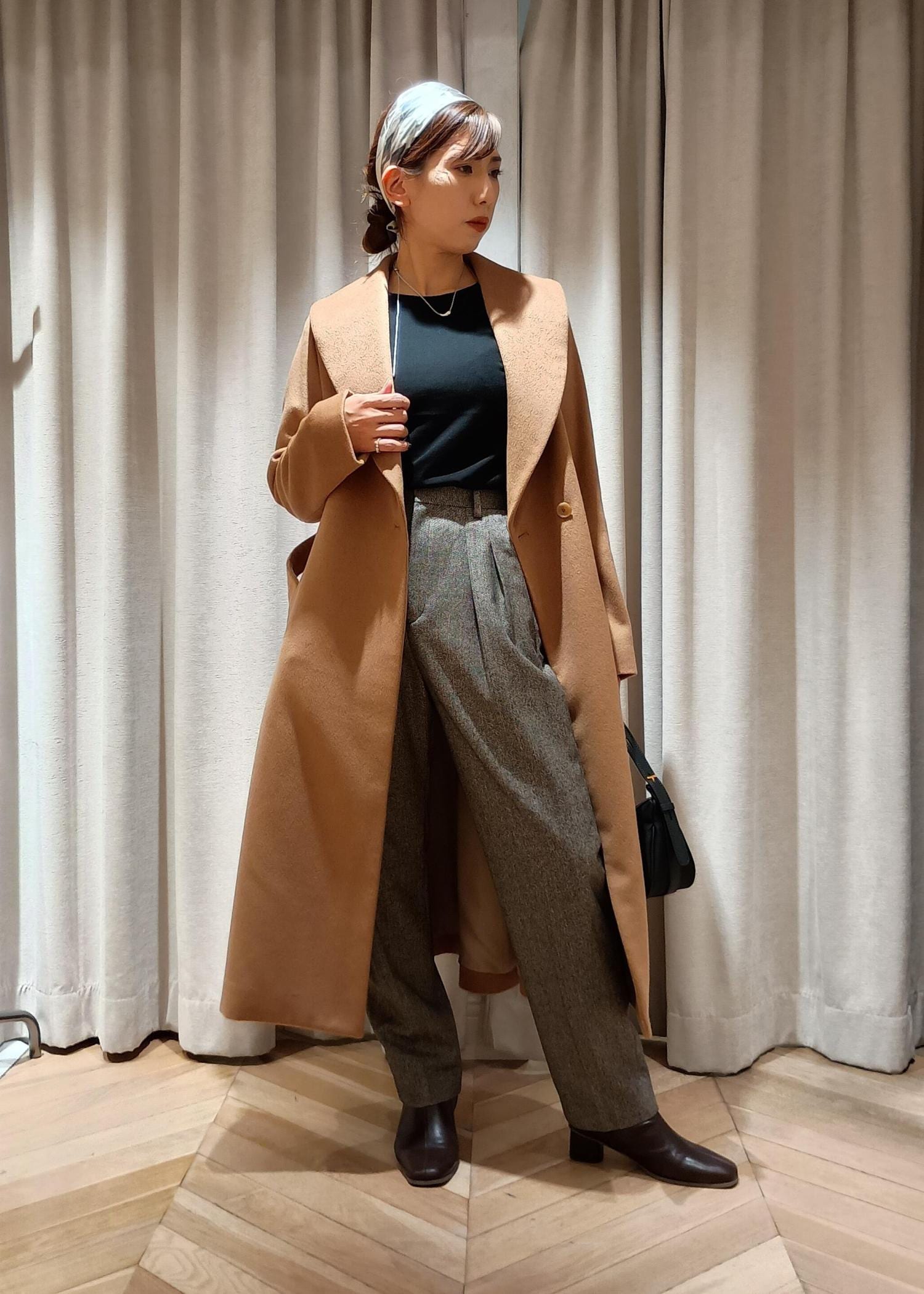 NEW!ROPÉプレミアムカシミヤ ショールカラーコート【25AW】キャメル / 38¥69,300レビューショールカラーでレディな印象のロングコート。きちんと感もありながら華やかなスタイリングにもおすすめなシルエットで様々なシーンで活躍します。袖幅は狭すぎないので中に厚みのあるトップスを合わせても窮屈さを感じず着膨れして見えないのが嬉しいポイントです。