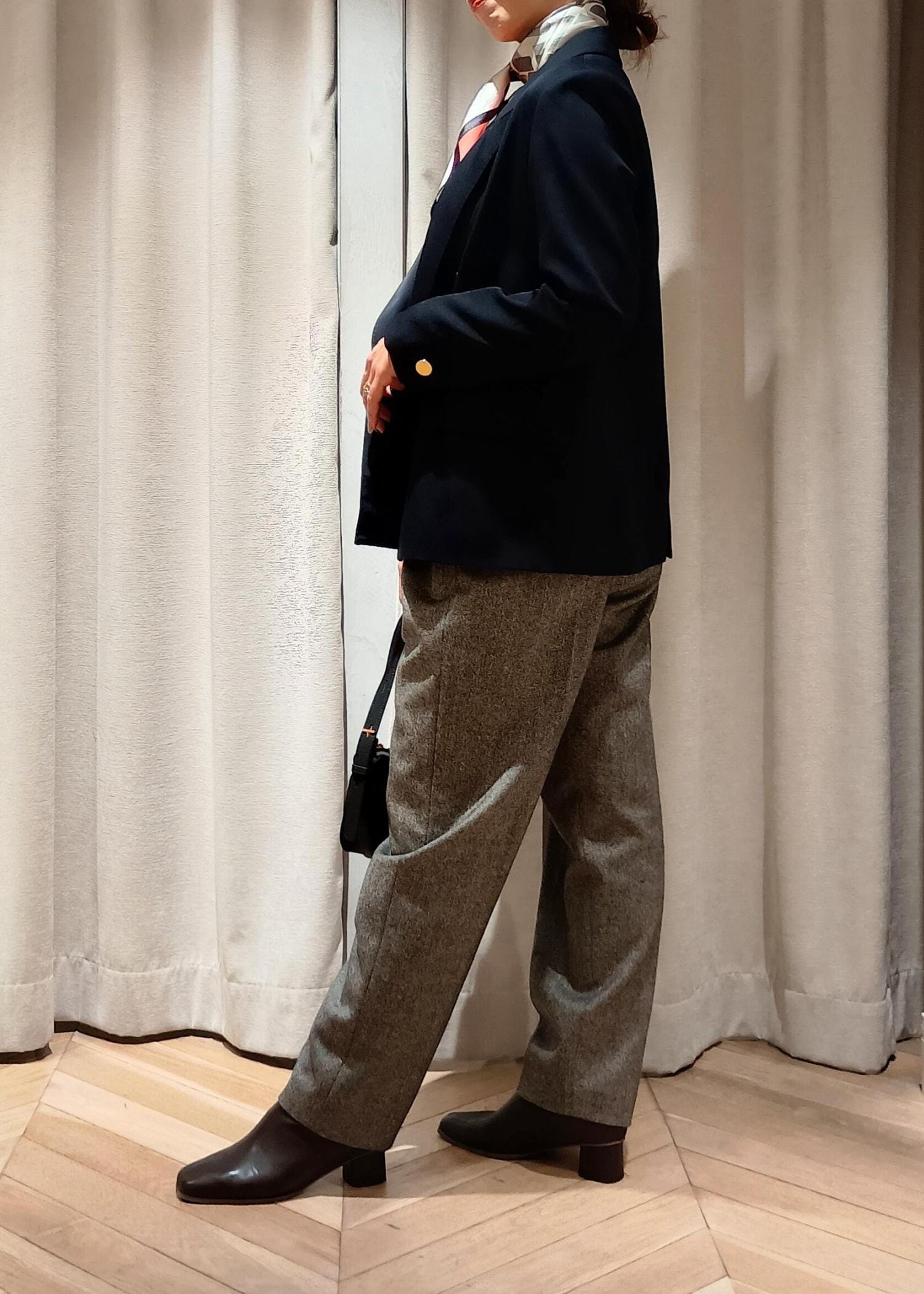 ROPÉウールレーヨンクラシック2タックパンツ(ヘリンボーン/グレンチェック)/セットアップ対応ブラック系 / 38¥27,500レビュートレンド感あるツータックのゆったりめのシルエットのテーパードパンツです。ウォーム感のある生地でONからOFFまで着回しスタイリングに代活躍します!