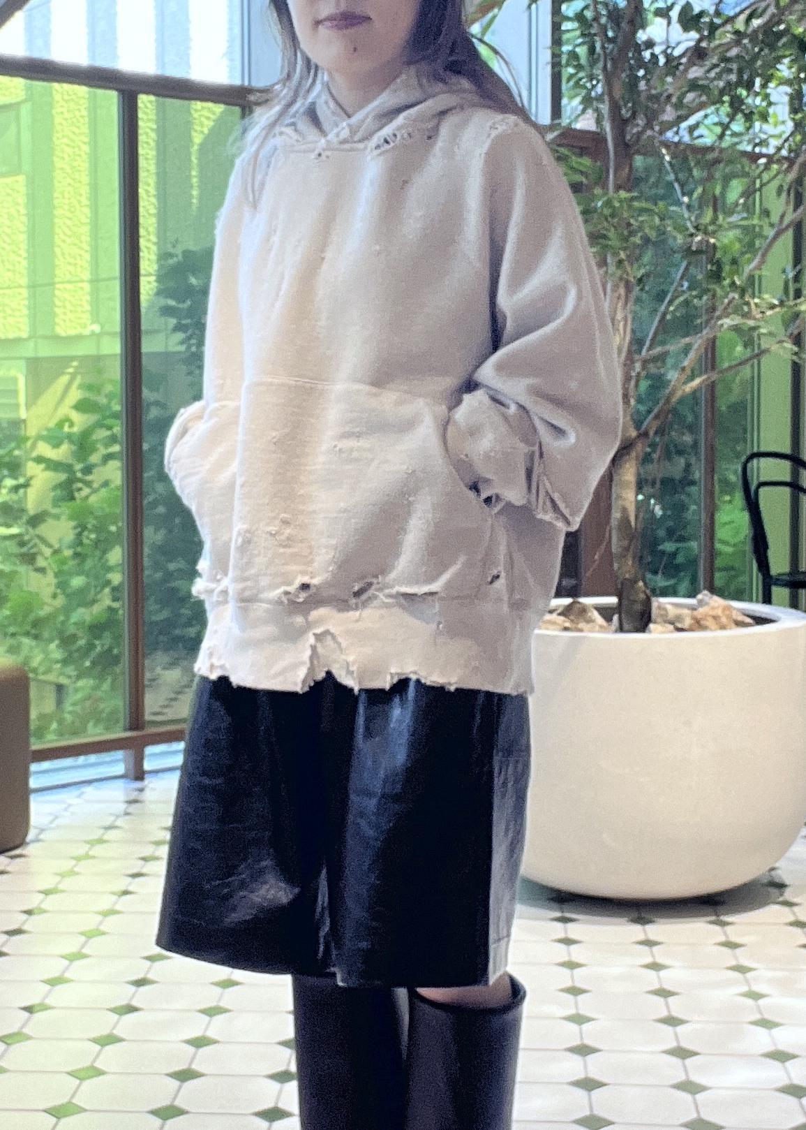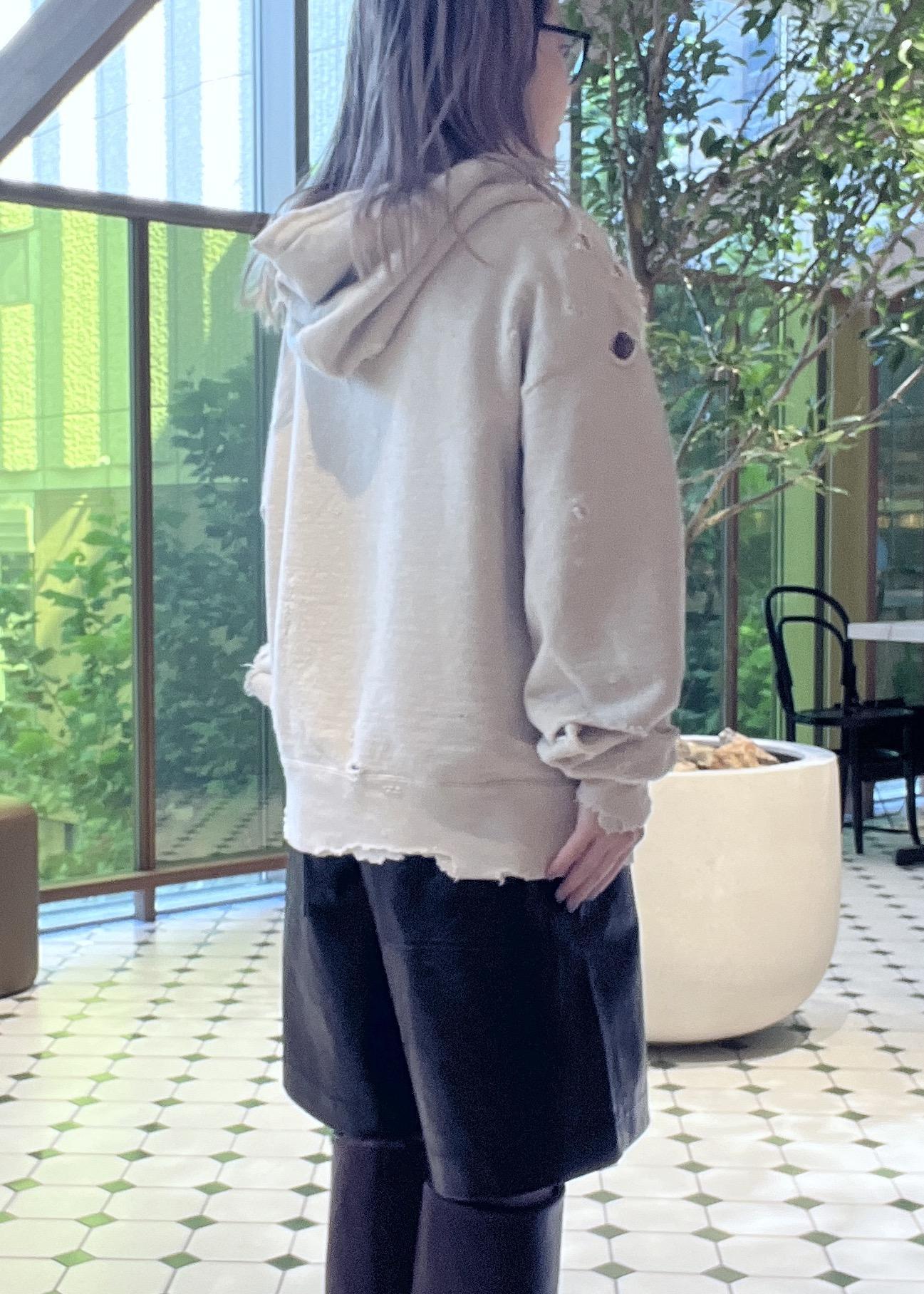 SALON adam et ropé【KURO(クロ)】MORE DAMAGE SWEAT PARKAライトグレー / 0¥38,500レビューお尻がしっかり隠れる丈。