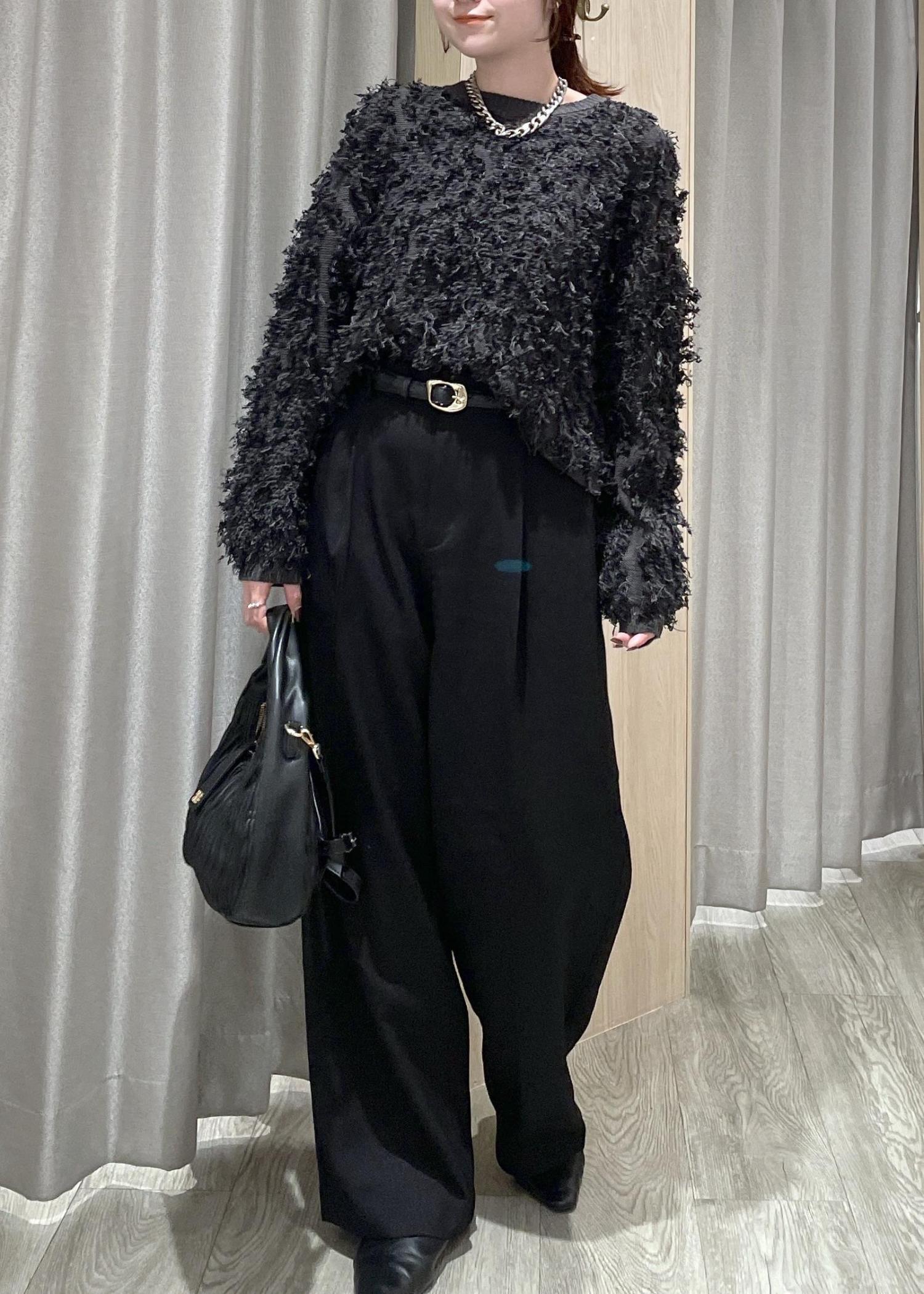 VISリボンヤーンフリンジニットプルオーバーチャコール / F¥6,589レビュー1枚で着映えするフリンジニット♡身長159cmで腰くらいのコンパクトな着丈ですが、横幅広めでボディラインを拾わないゆったり着れるサイズ感です!敏感肌ですがチクチク感は無かったです◎