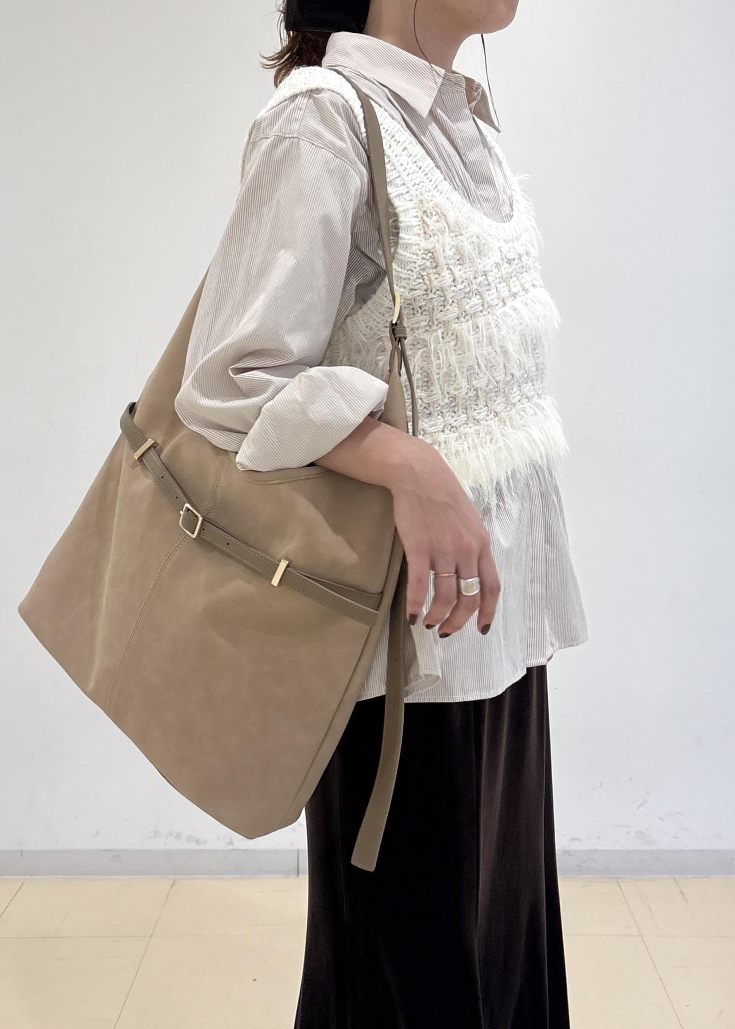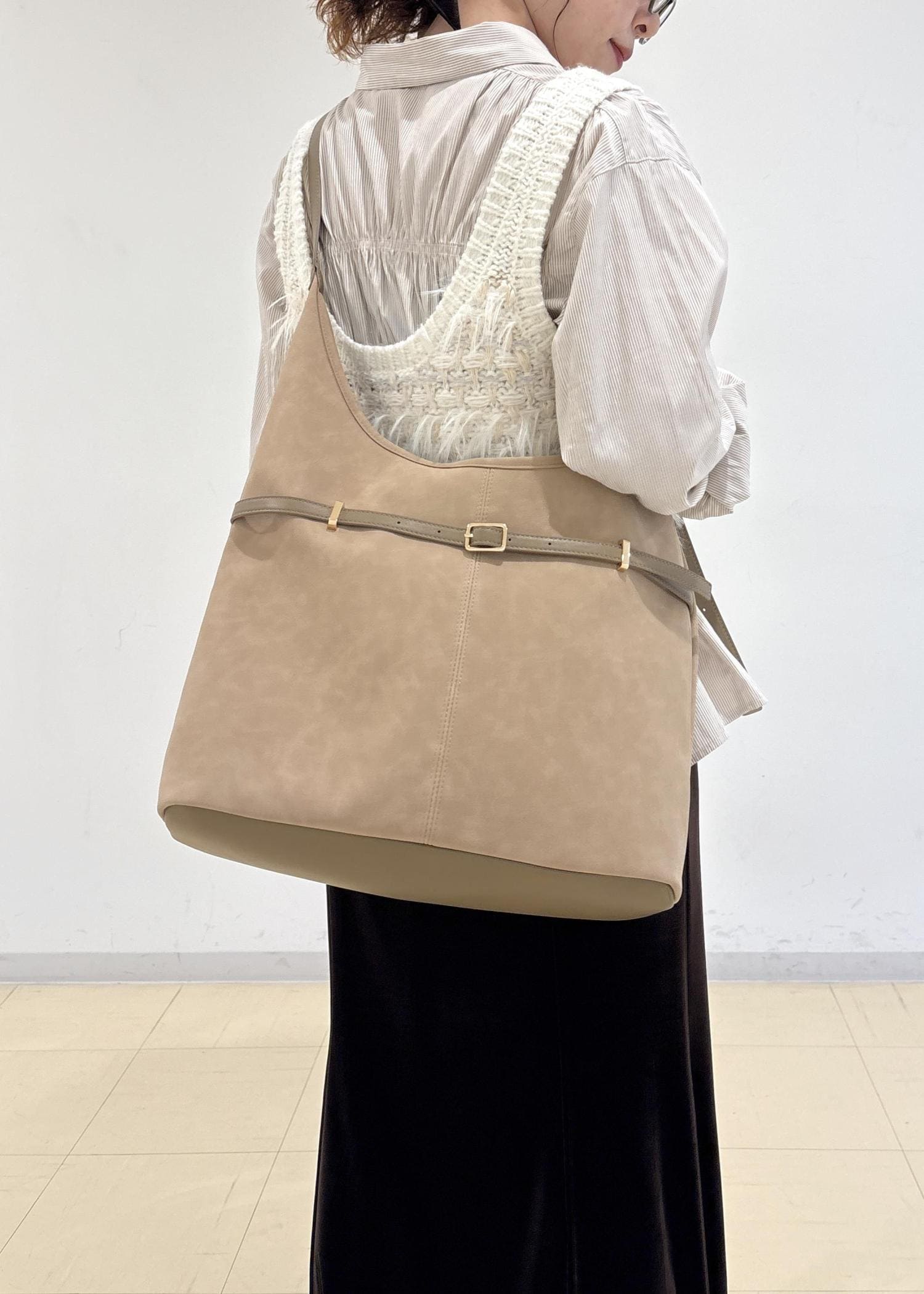 VIS【A4収納】フロントベルトソフトショルダーバッグベージュ系 / F¥4,843レビューリアルバイしたアイテム!