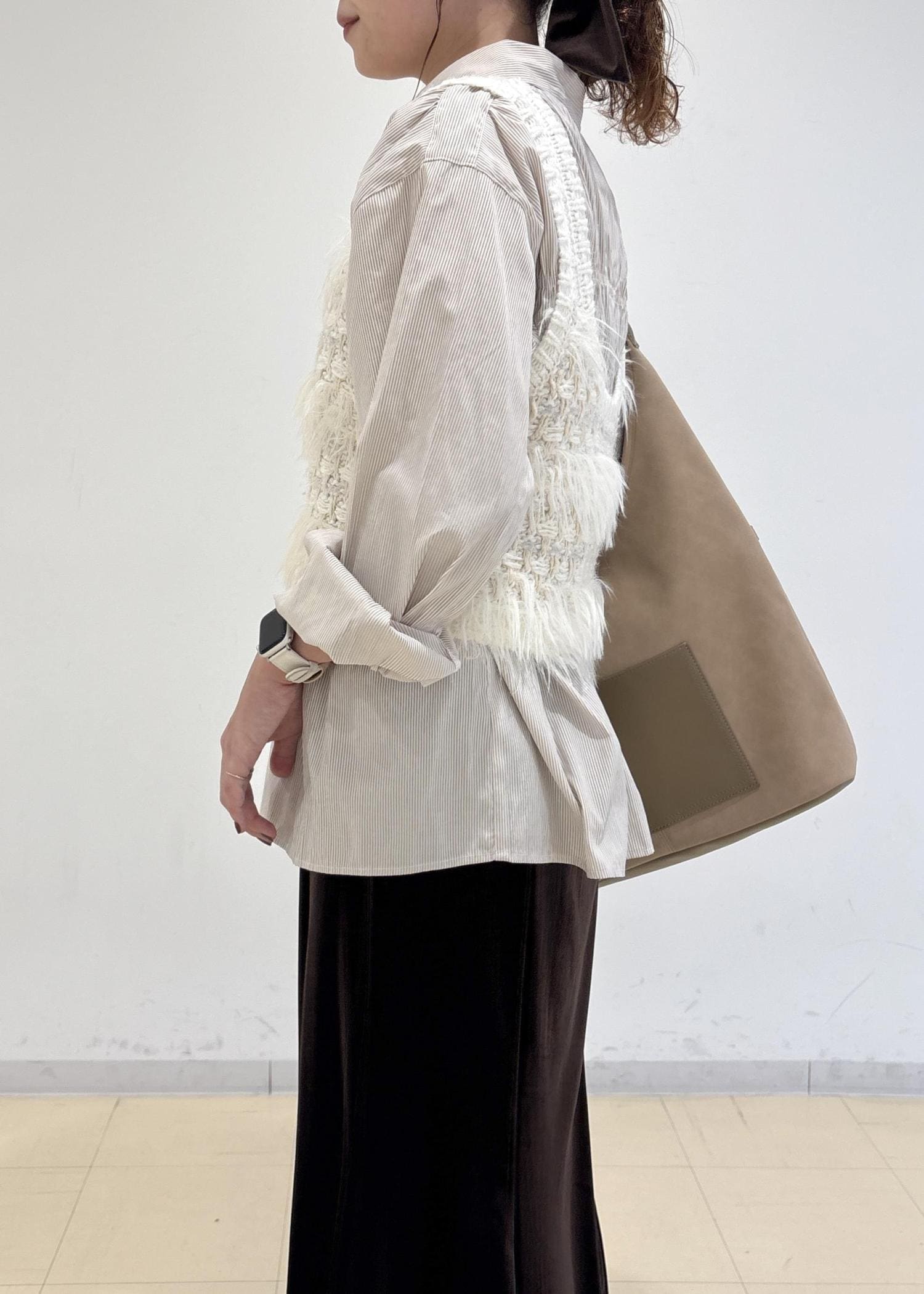 フロント部分のシャーリングがスッキリとした印象にしてくれます◎