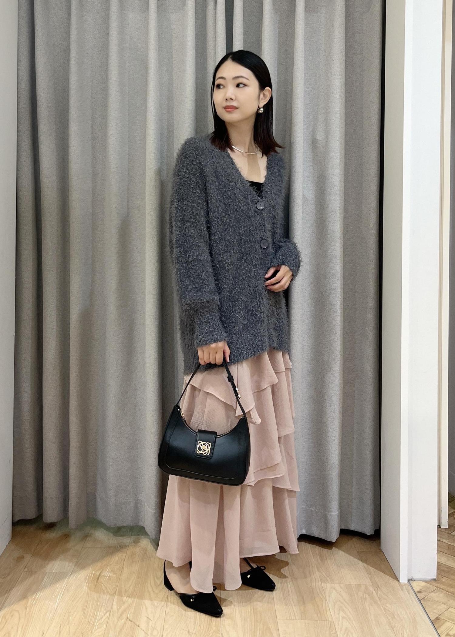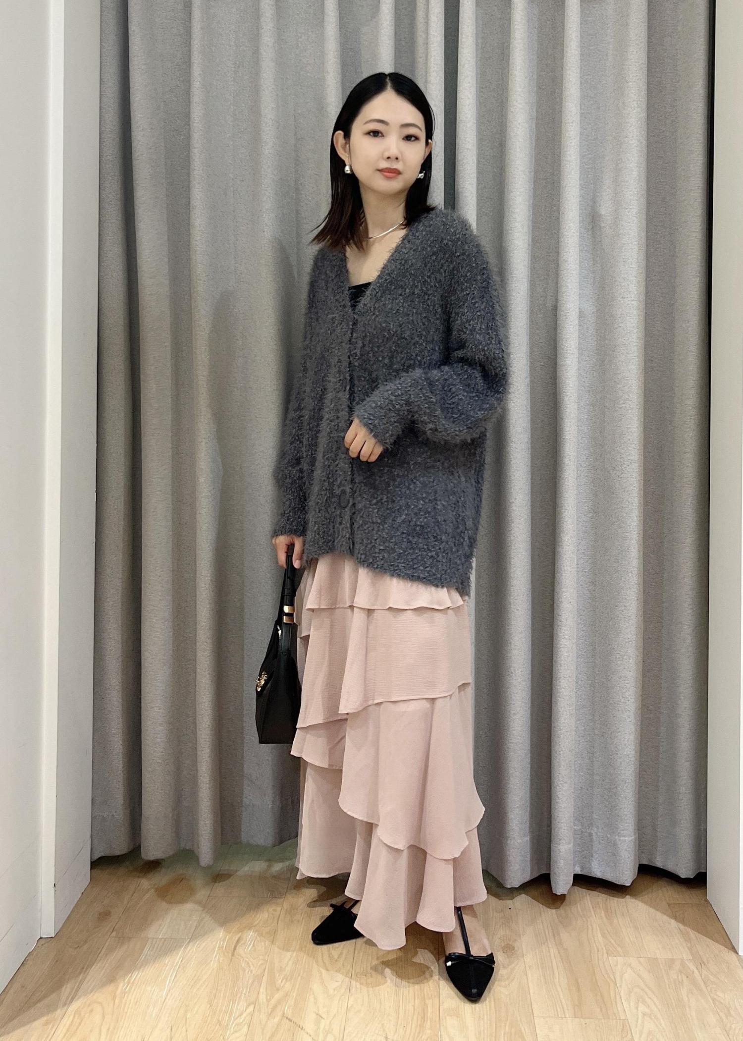 VISポップコーンヤーンラメフェザーニットカーディガン/WEB限定FSサイズスミクロ / F¥4,612レビュー160cmでお尻がすっぽり隠れる丈感です。チクチク感もなく中にインナーを着てもゆとりがあるサイズです。