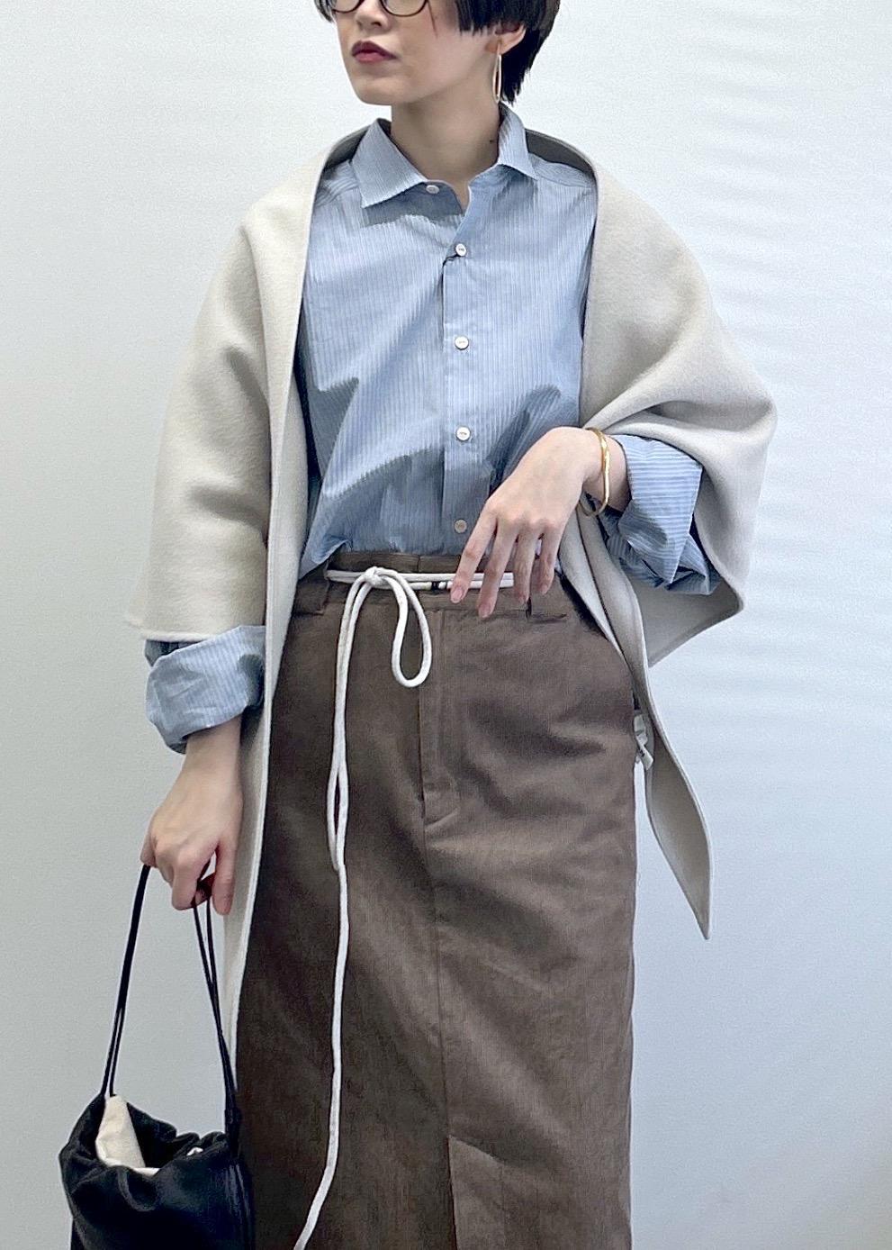 アウターを着る前や春先の時期に、ニットやジャケットなどの上から軽羽織り感覚で使って頂くのがおすすめ。