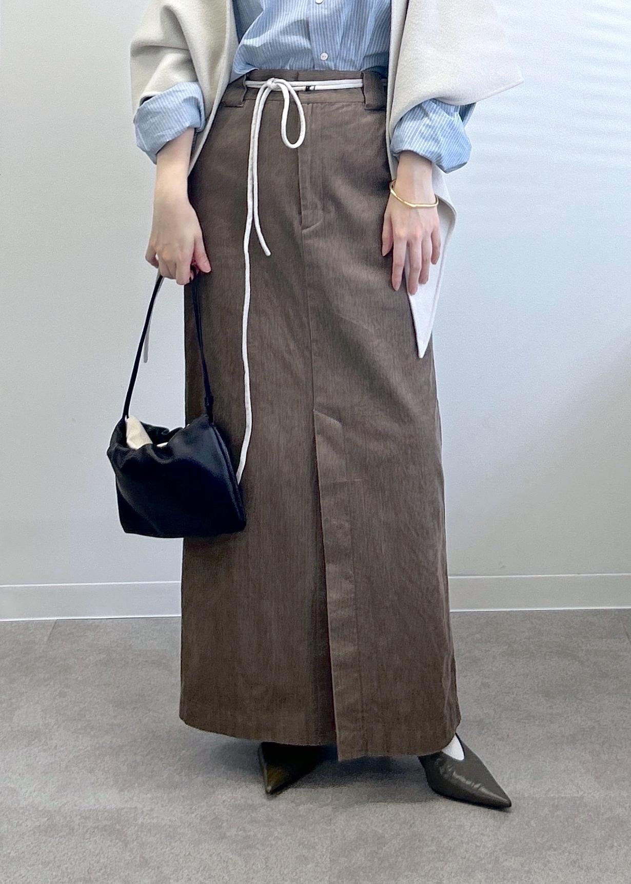 ウエストはややゆったりめなので、ベルトで調整しつつアクセントとしてプラスすると今年らしい着こなしにまとまります◎
