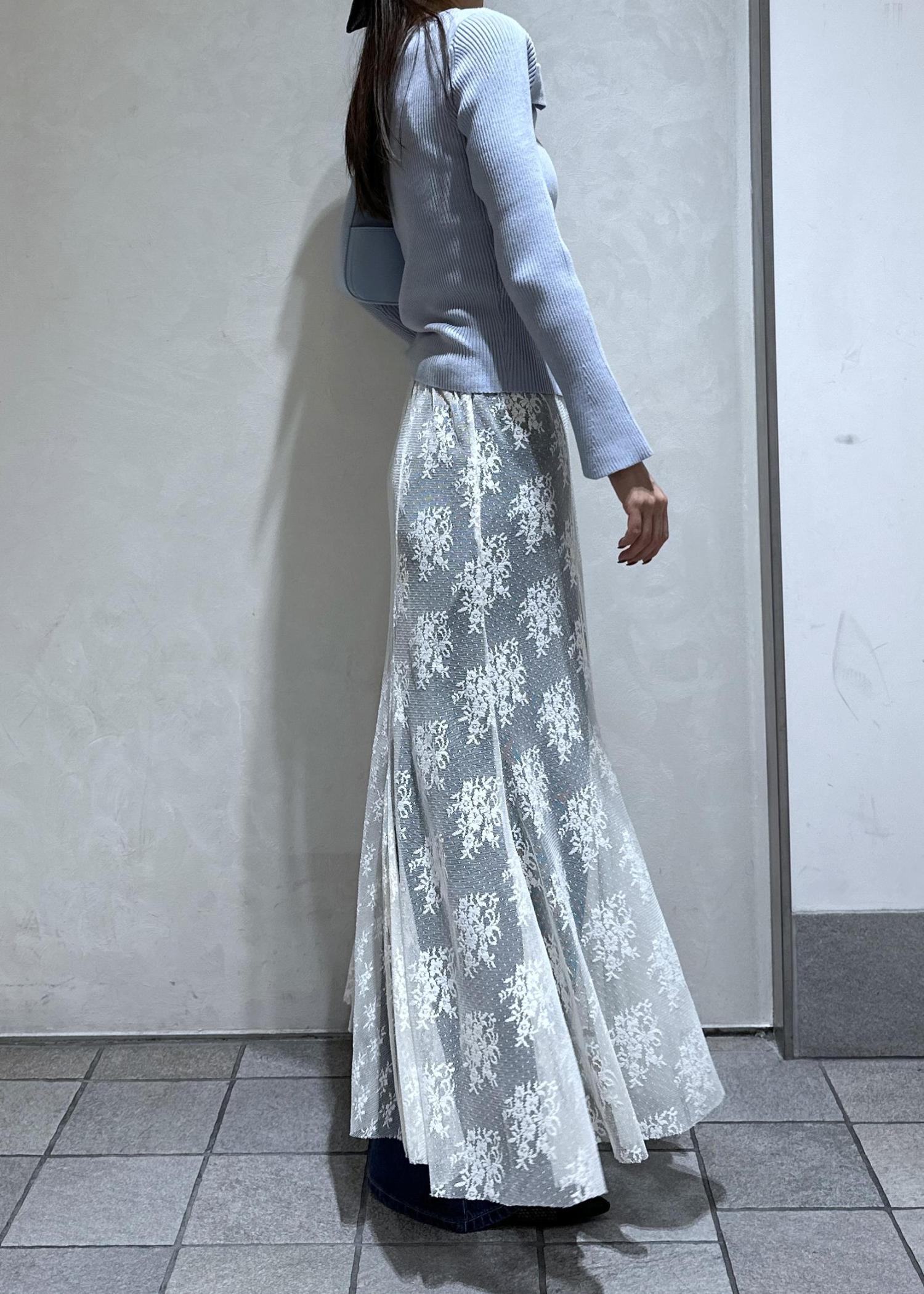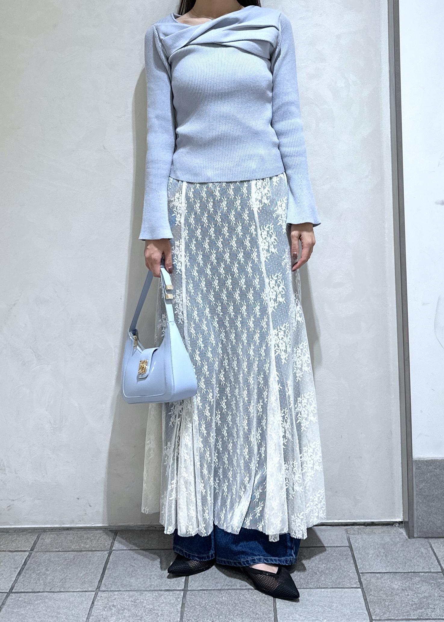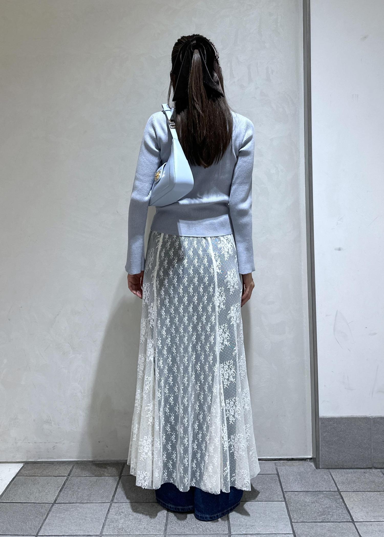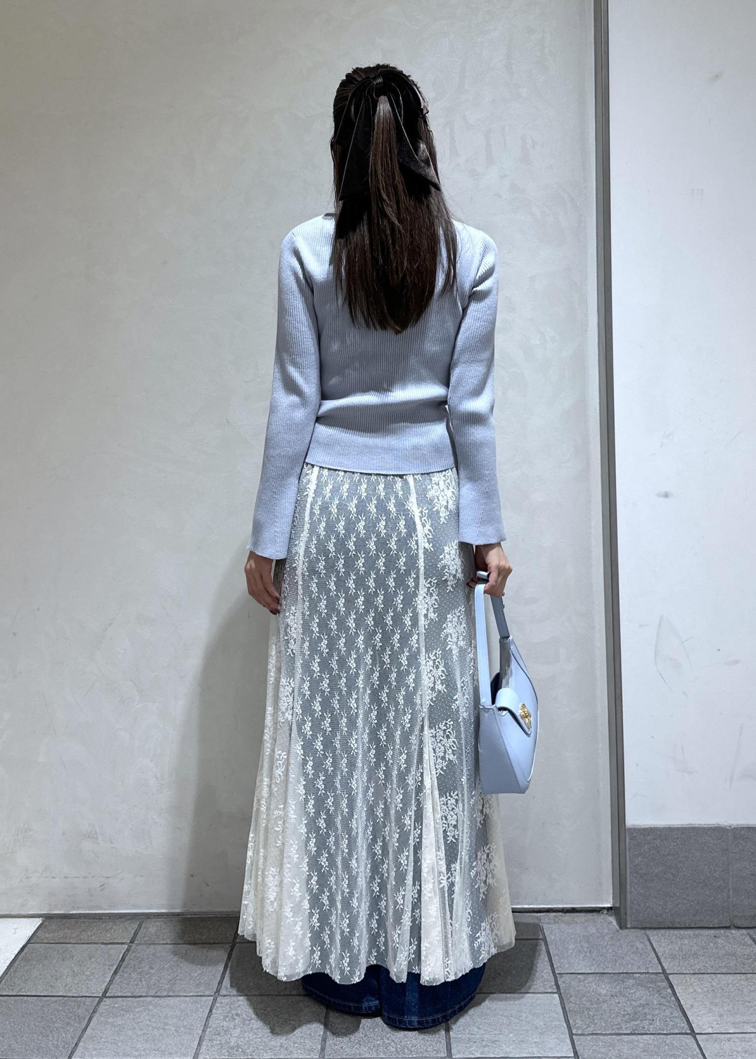 レーススカートを合わせた上品フェミニンなコーデ。