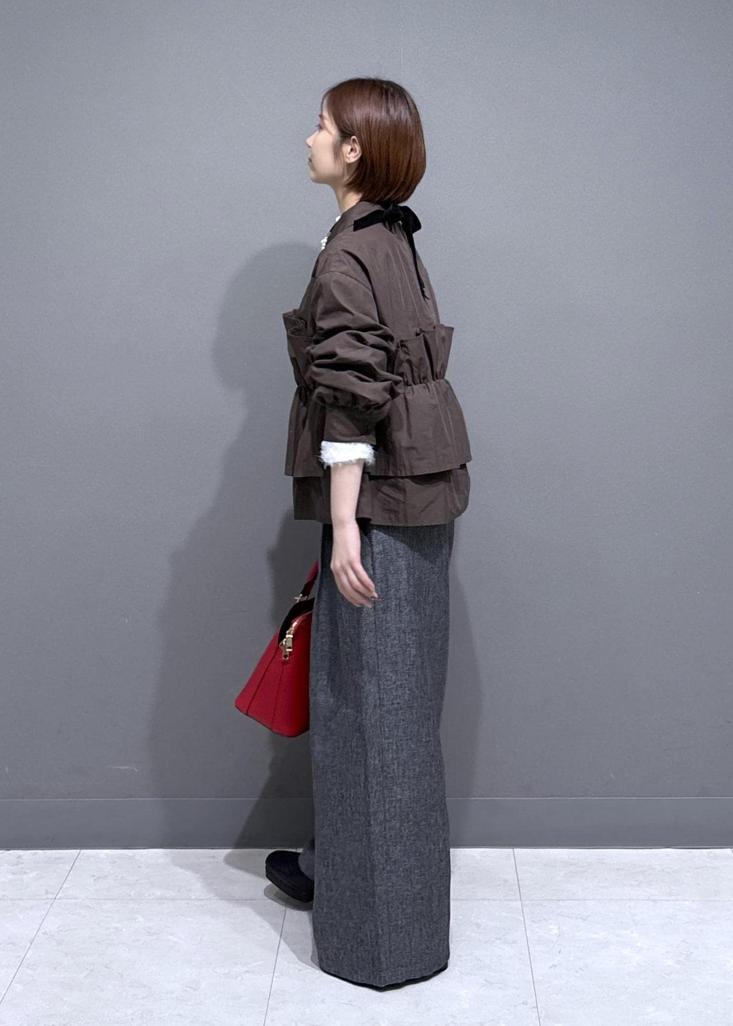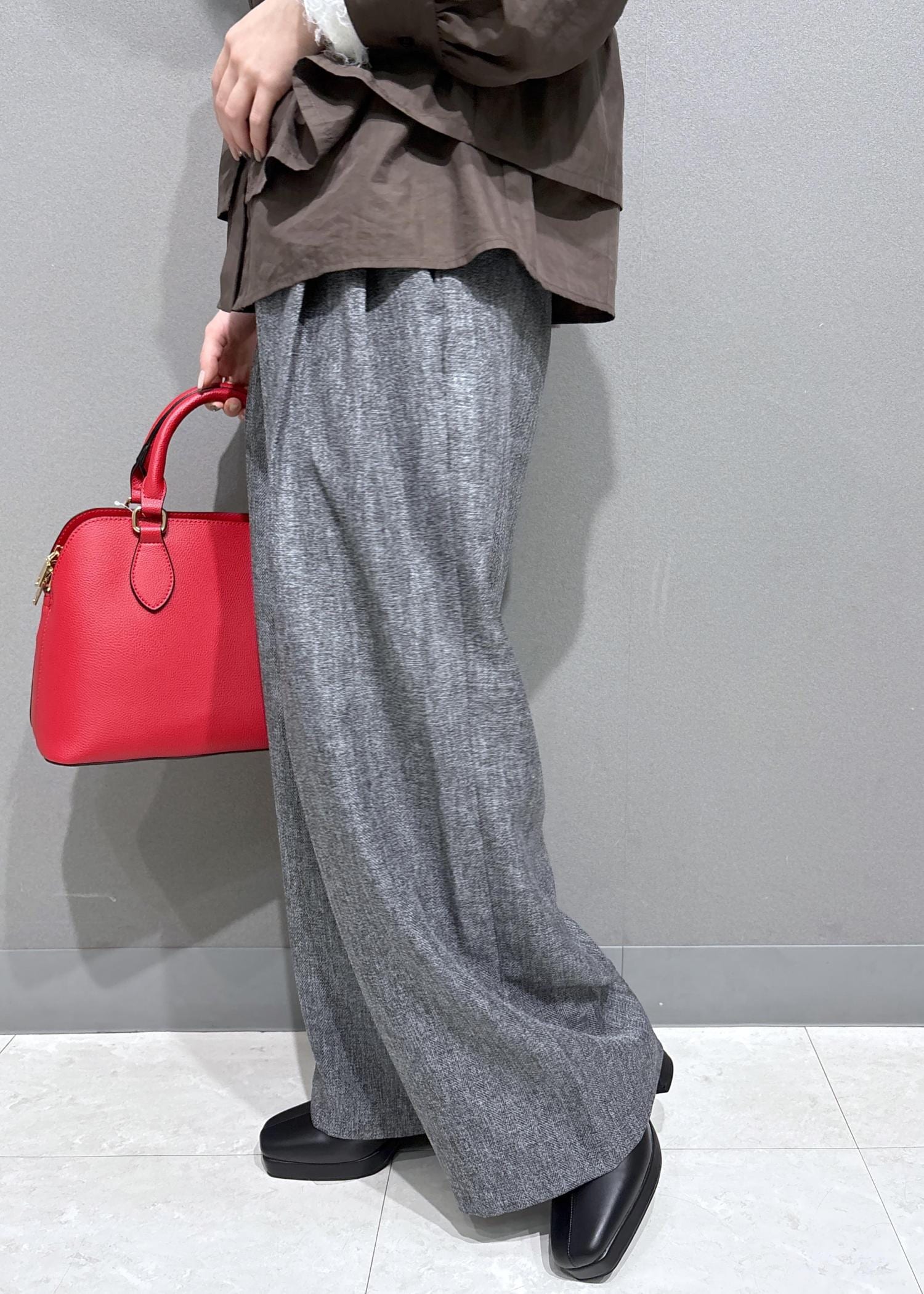 ゆったりとしたサイズ感ですが、ツイード素材なのでカジュアルに見えすぎないのも嬉しいポイントです。 -