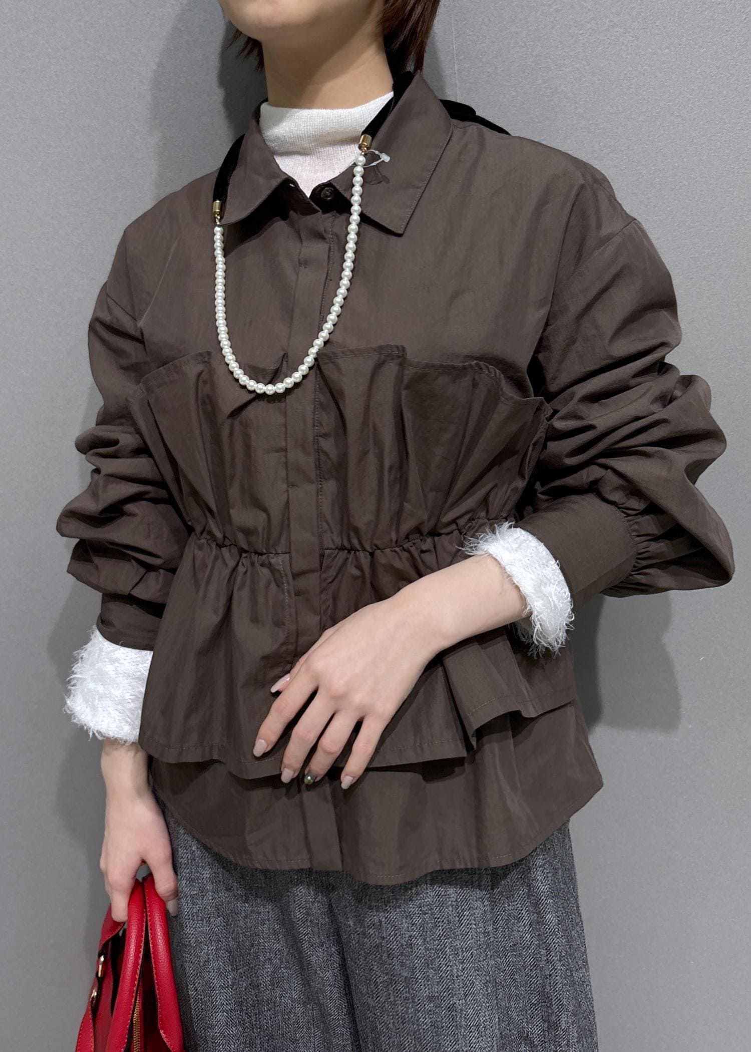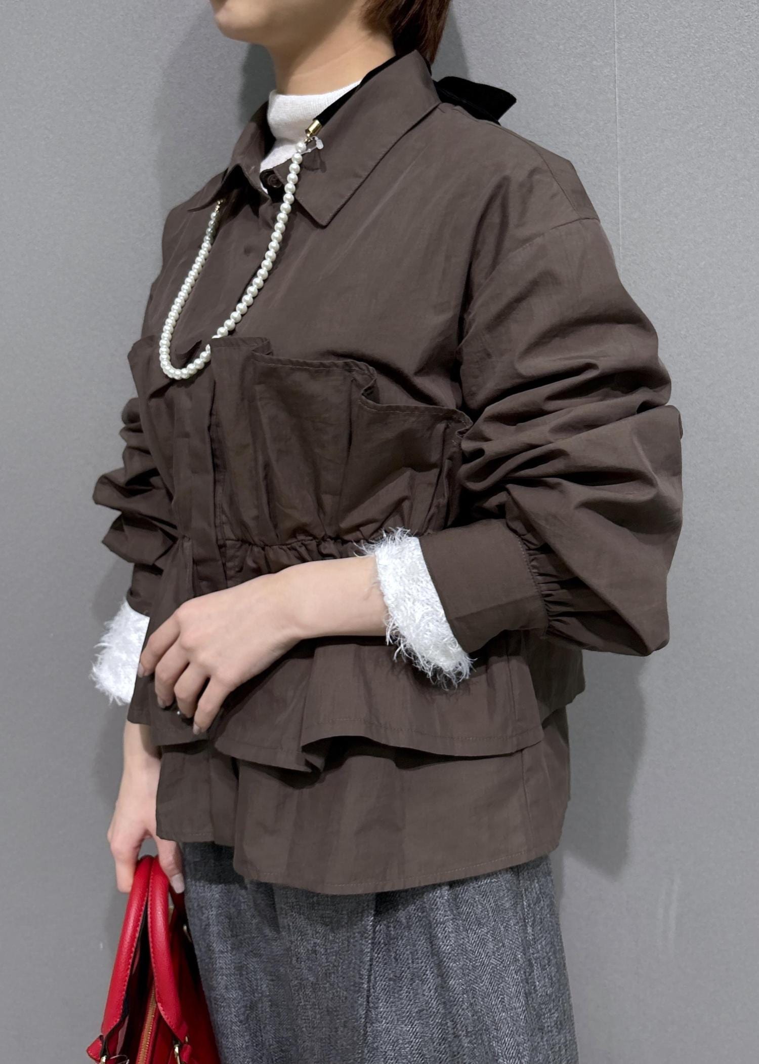 ややハリのある生地なので、フリル部分も立体的なシルエットになります。 -