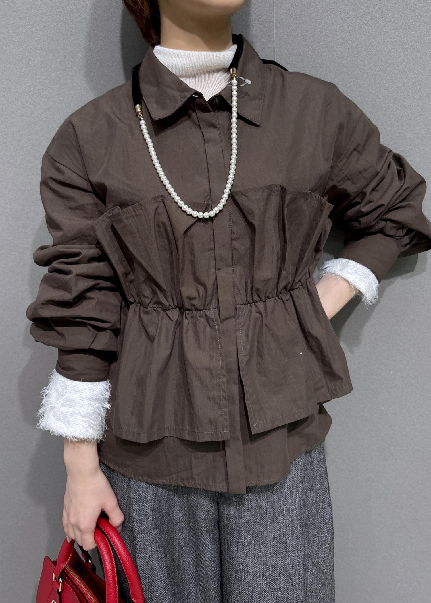 VISビスチェドッキングシャツ/イージーケアダークブラウン系 / F¥6,589レビュー150㎝で腰が隠れる丈でした。