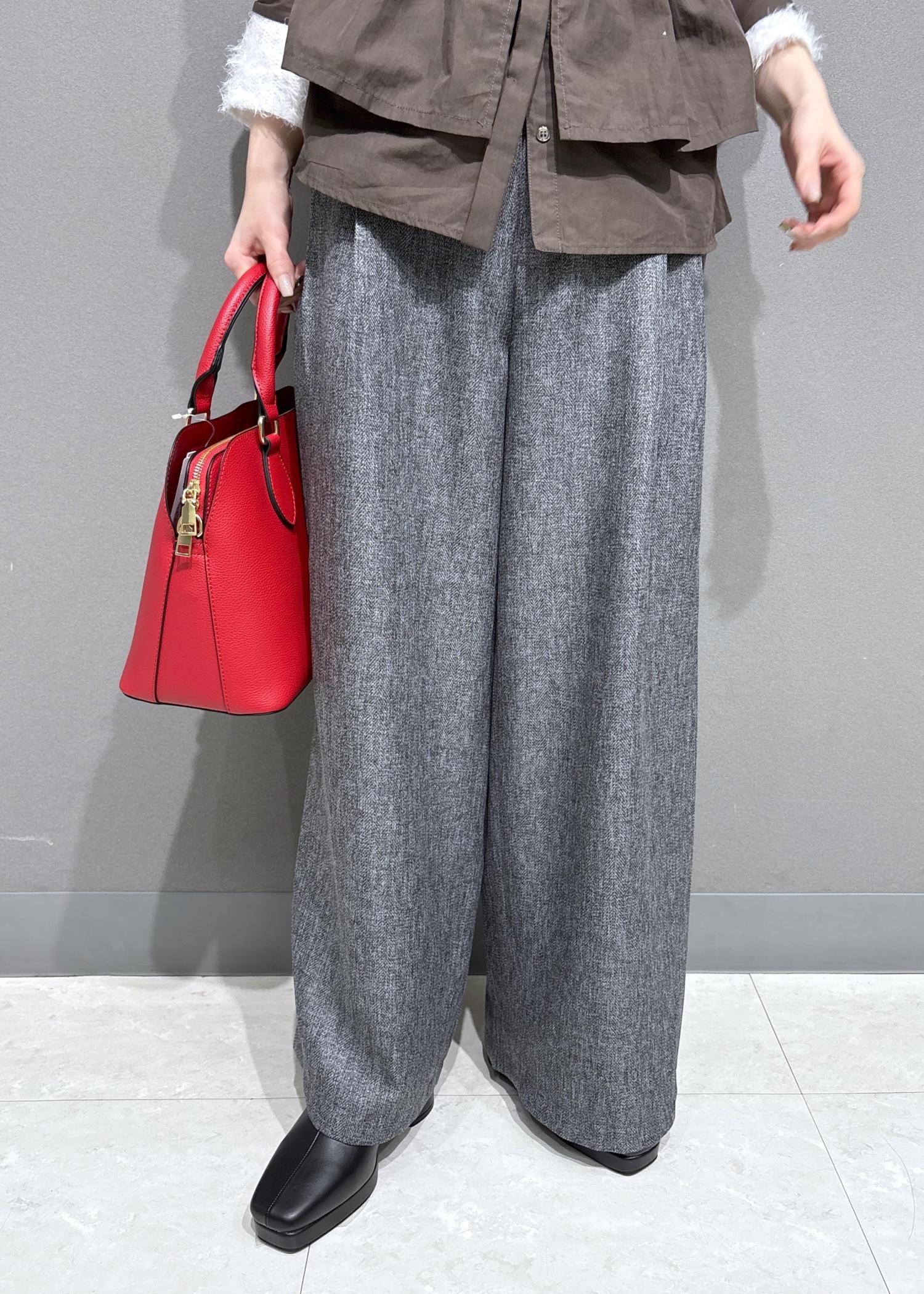 VISツイード2タックワイドパンツチャコール / S¥4,612レビュー150㎝でSサイズを着用して、ヒールのある靴と合わせるとギリギリ床につかない丈でした。