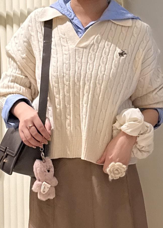 NEW!ROPÉ PICNIC【BEVERLYHILLS POLO CLUB・新色追加】ケーブル編みクロップドスキッパーニットキナリ / F¥5,995レビューケーブル編みが秋冬らしい印象のニットです。
