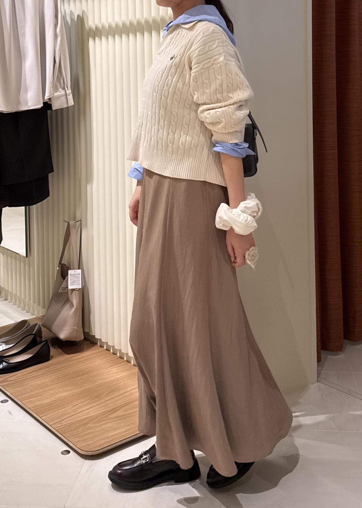 形は緩やかに広がるマーメイドシルエットでフェミニンなコーディネートによく合います。