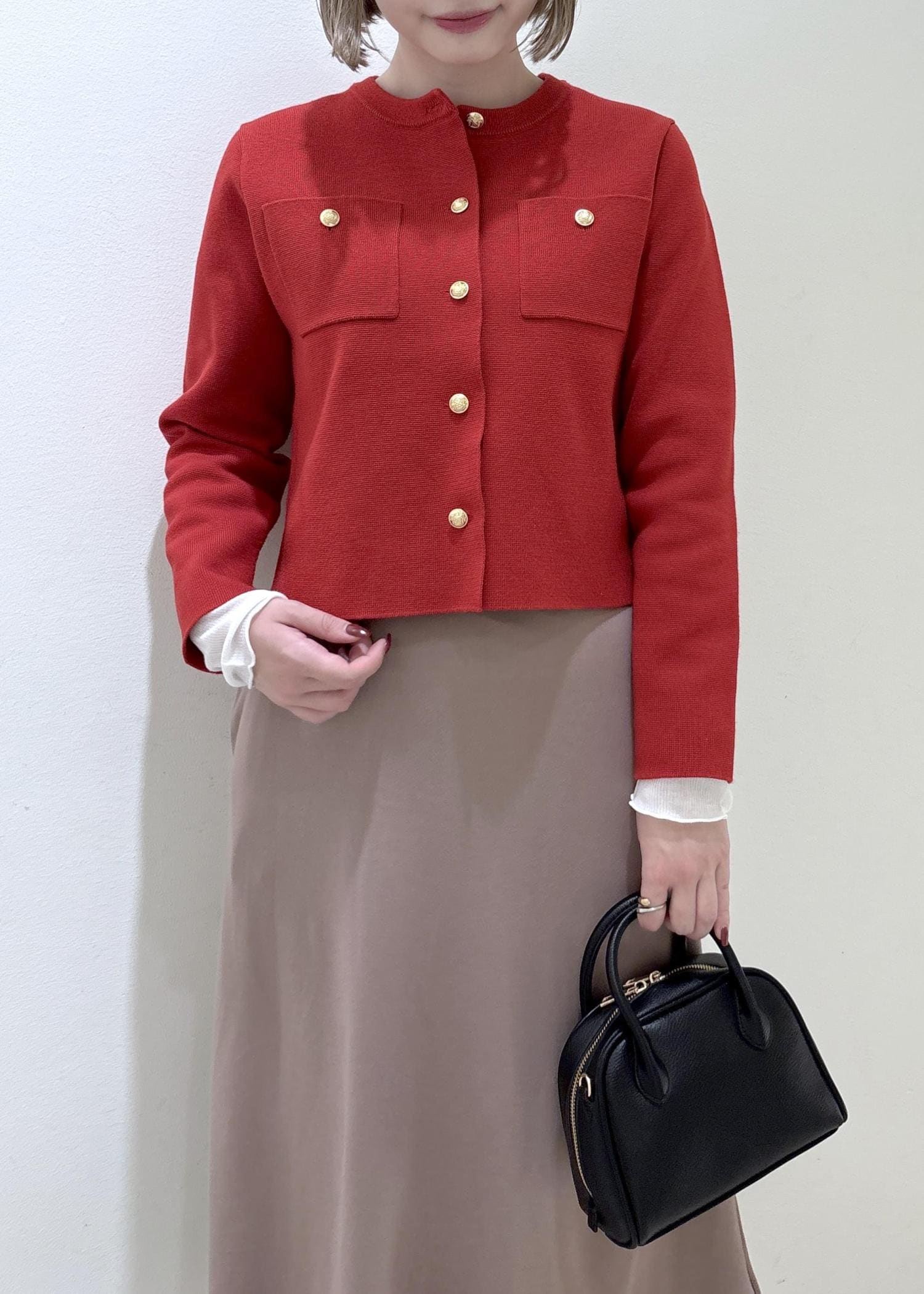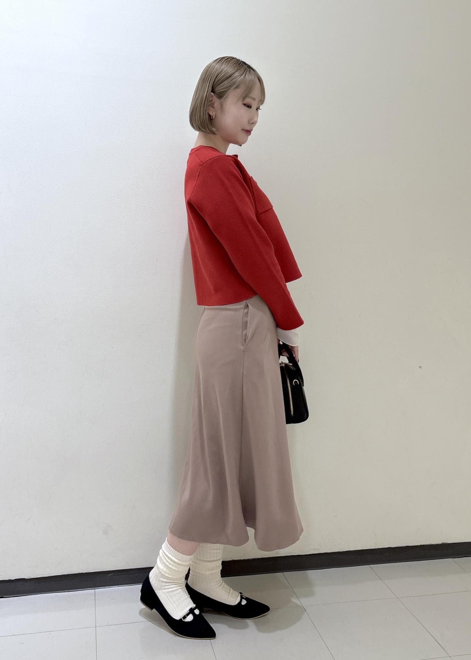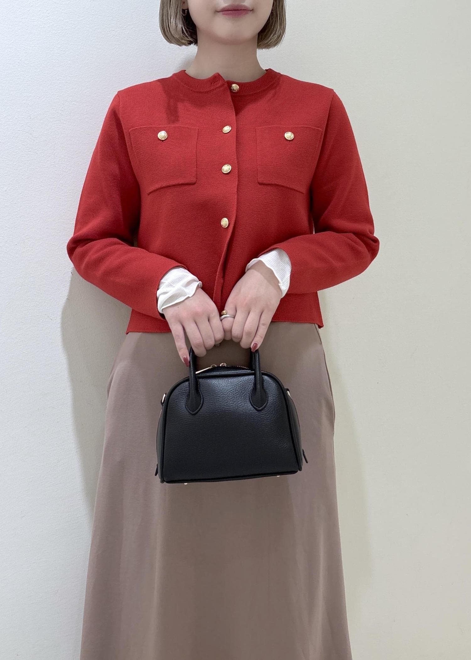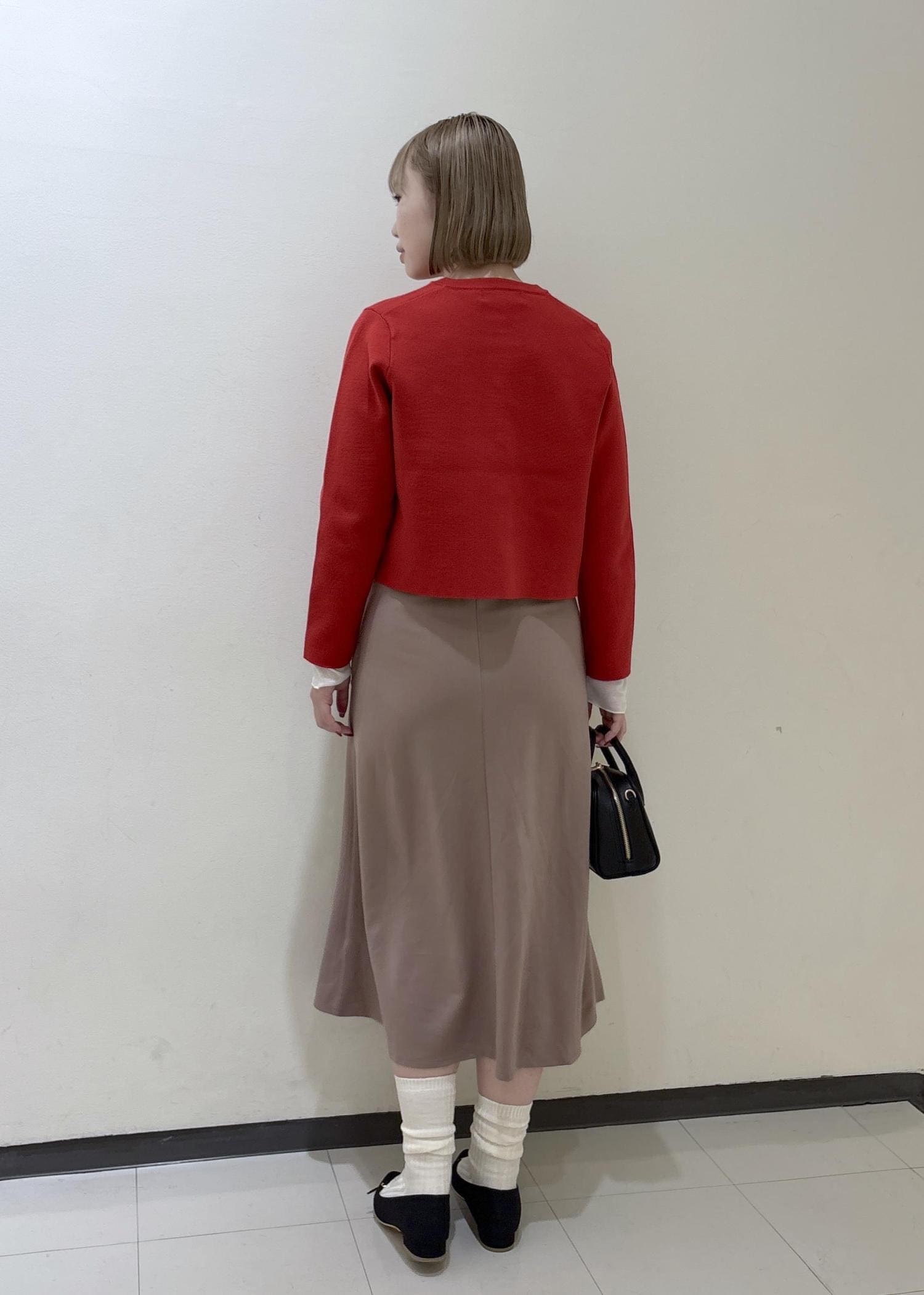 ボトムスは普段Mサイズですが、スカートは短めで合わせたかったのでSサイズを着用しています。