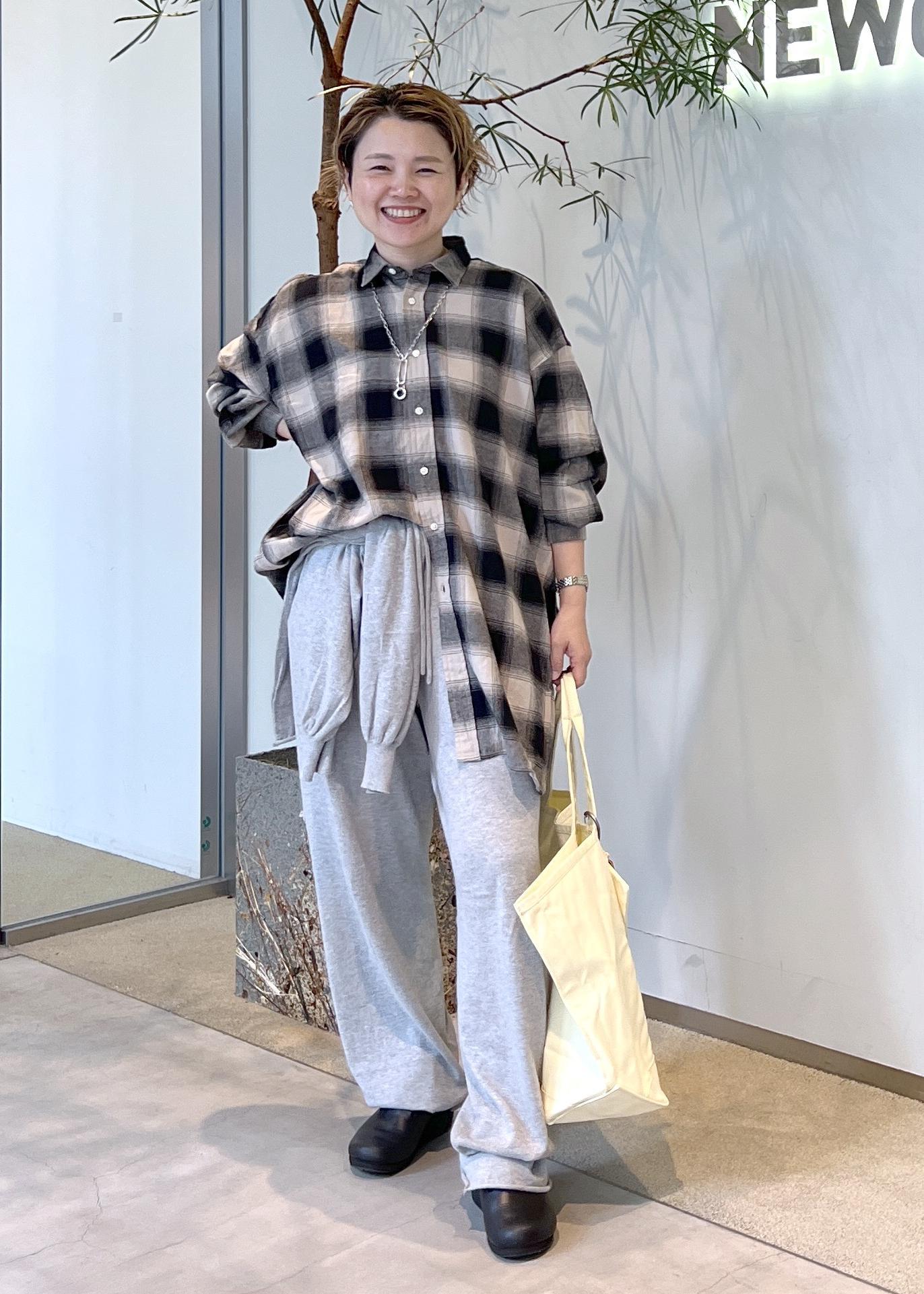 オーバーサイズですが、柔らかく薄手の素材感なので、インなどのアレンジもしやすいです。 -