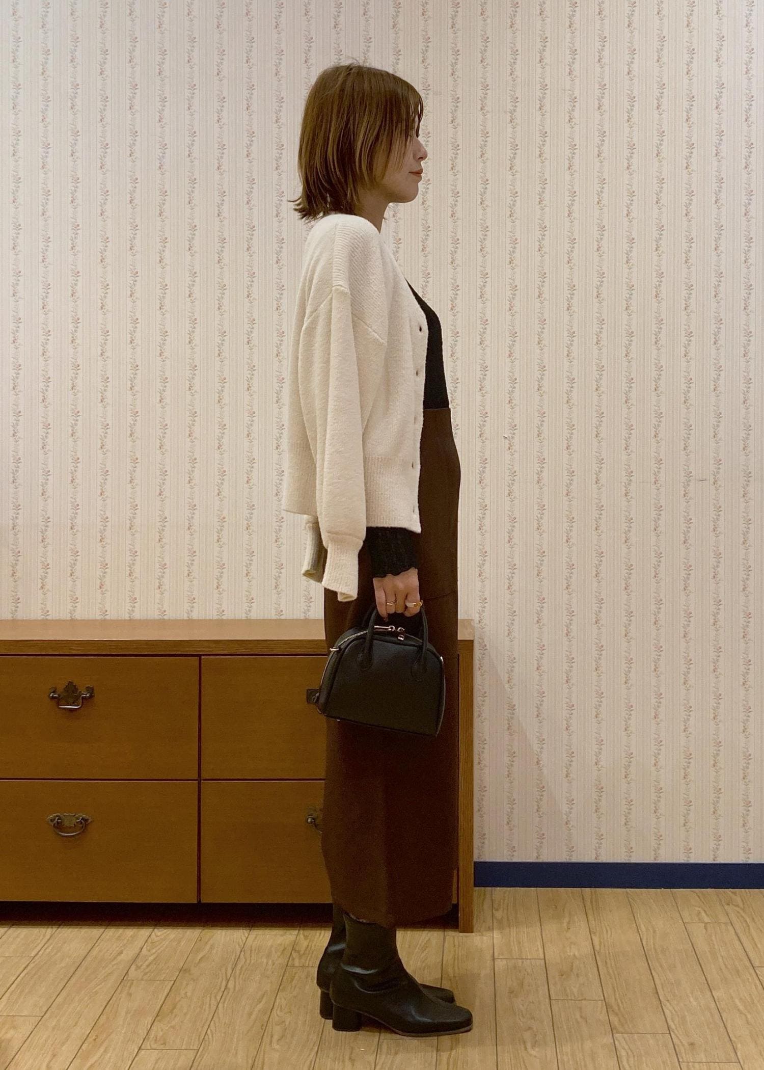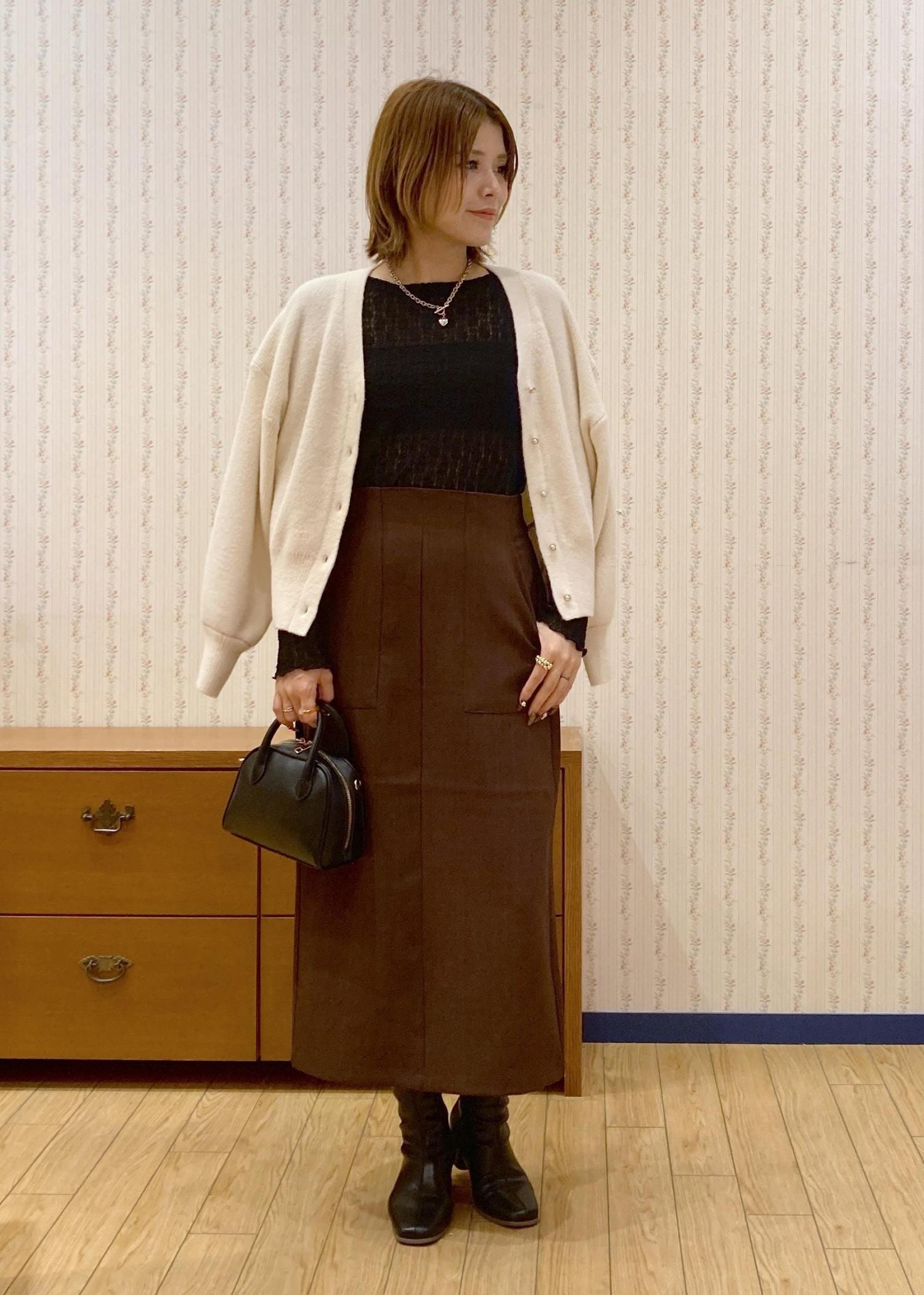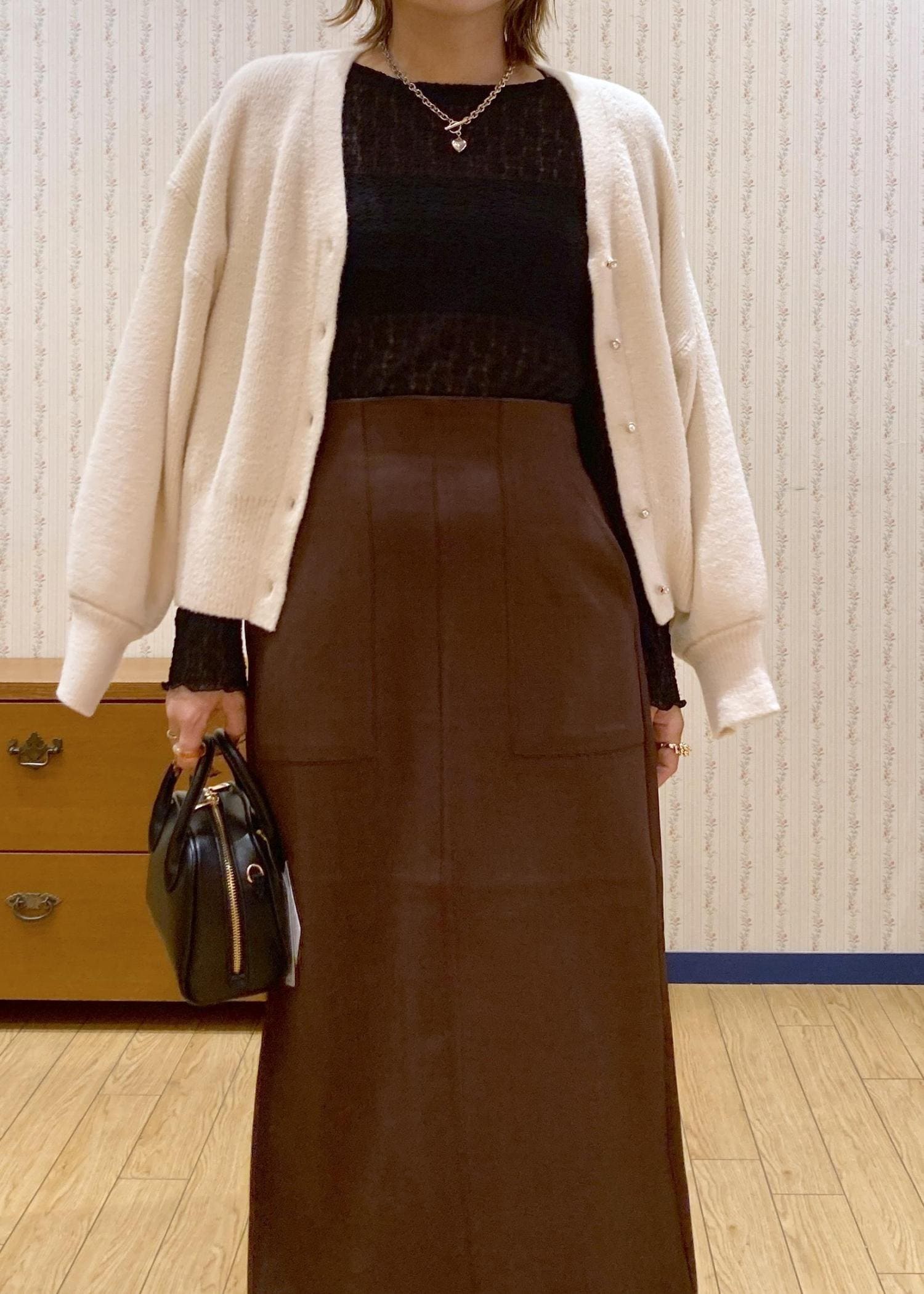 肩からふわふわな肌触りのカーディガンを羽織って大人のあざとさをプラスしました!