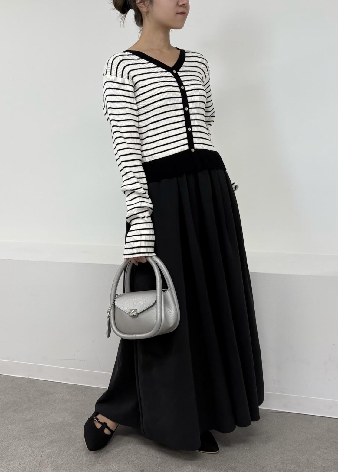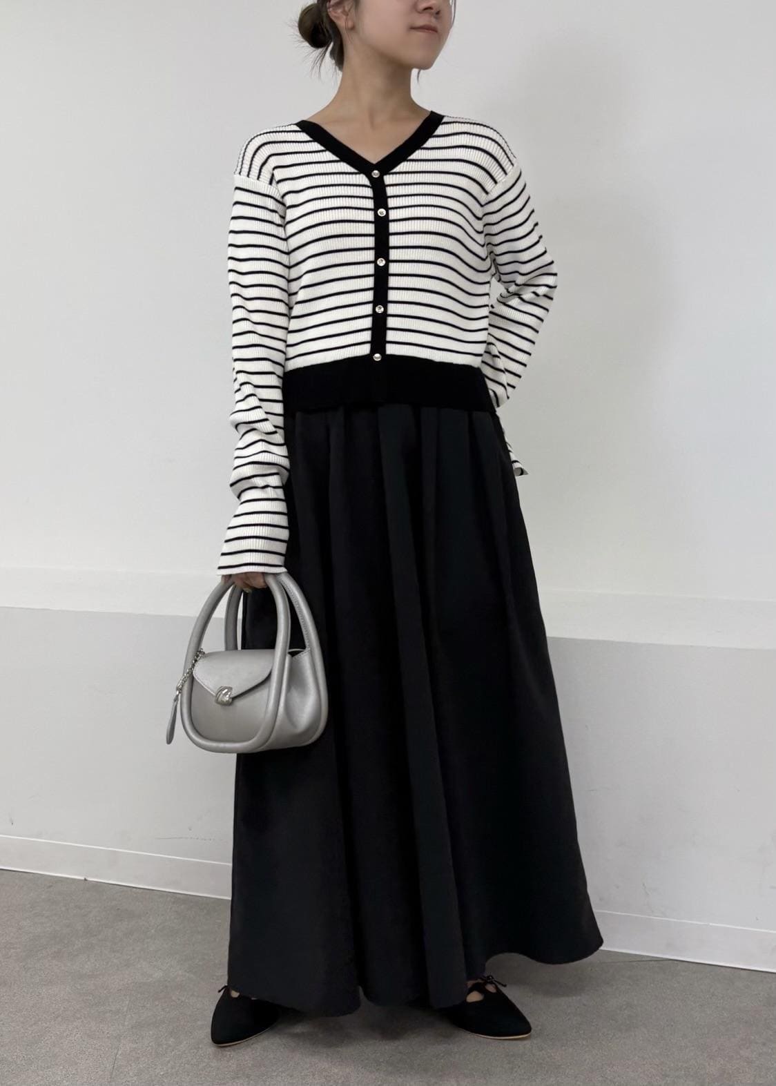 柔らかいニットとハリ感のある布帛ドッキングで着映えして、お出かけにもオススメです。
