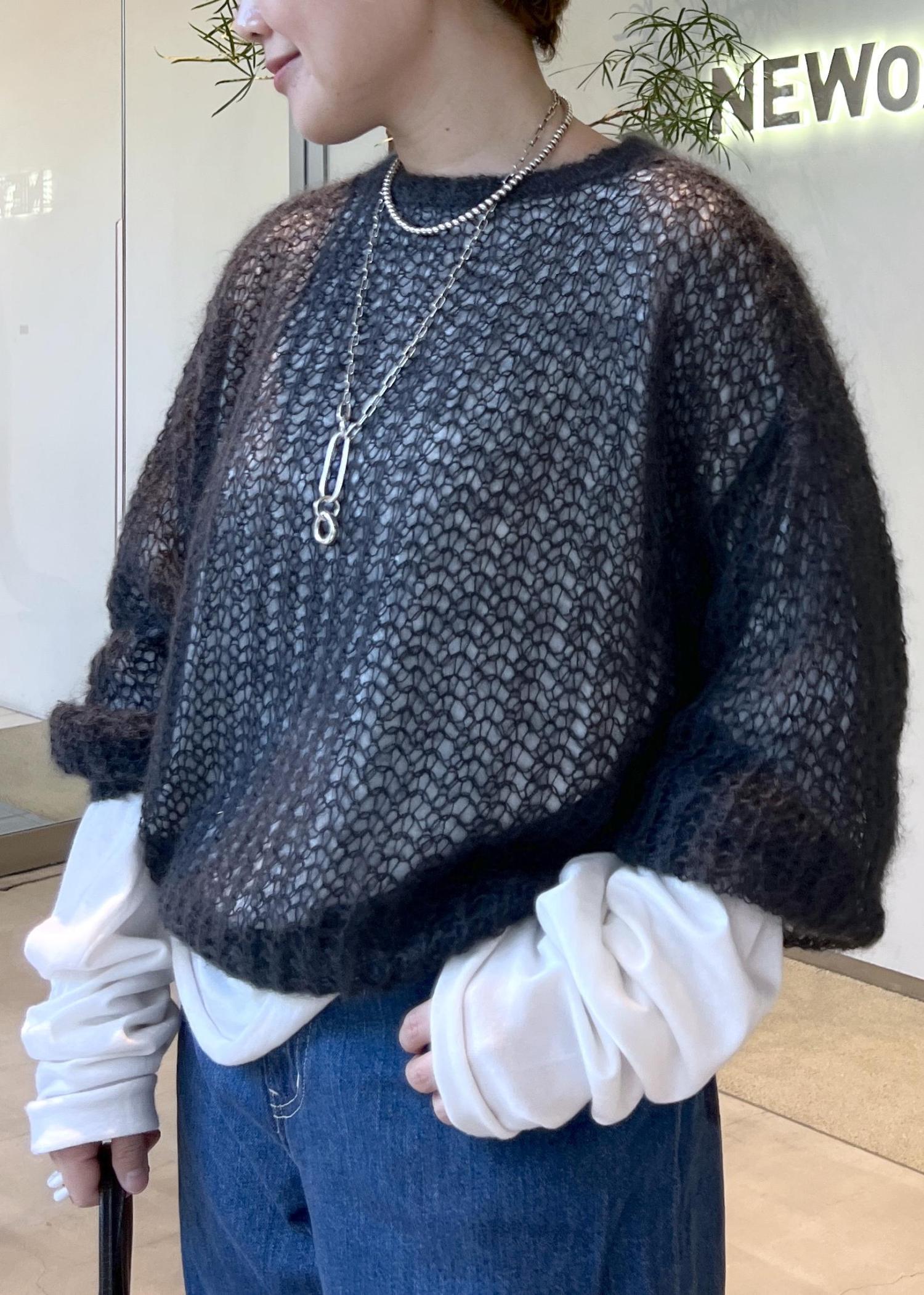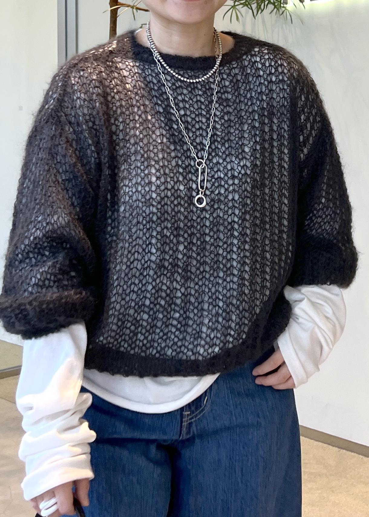 軽くて柔らかいモヘアを使用したBATONERの透かし編みニットです♡