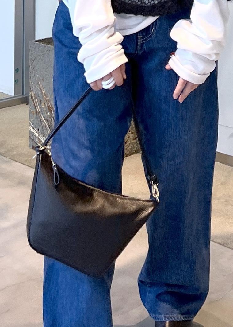 小ぶりながらもしっかりマチがあるので、スマホ、ミニ財布、小さめポーチ、ハンカチなど、必要な手荷物はしっかり入ります。 -
