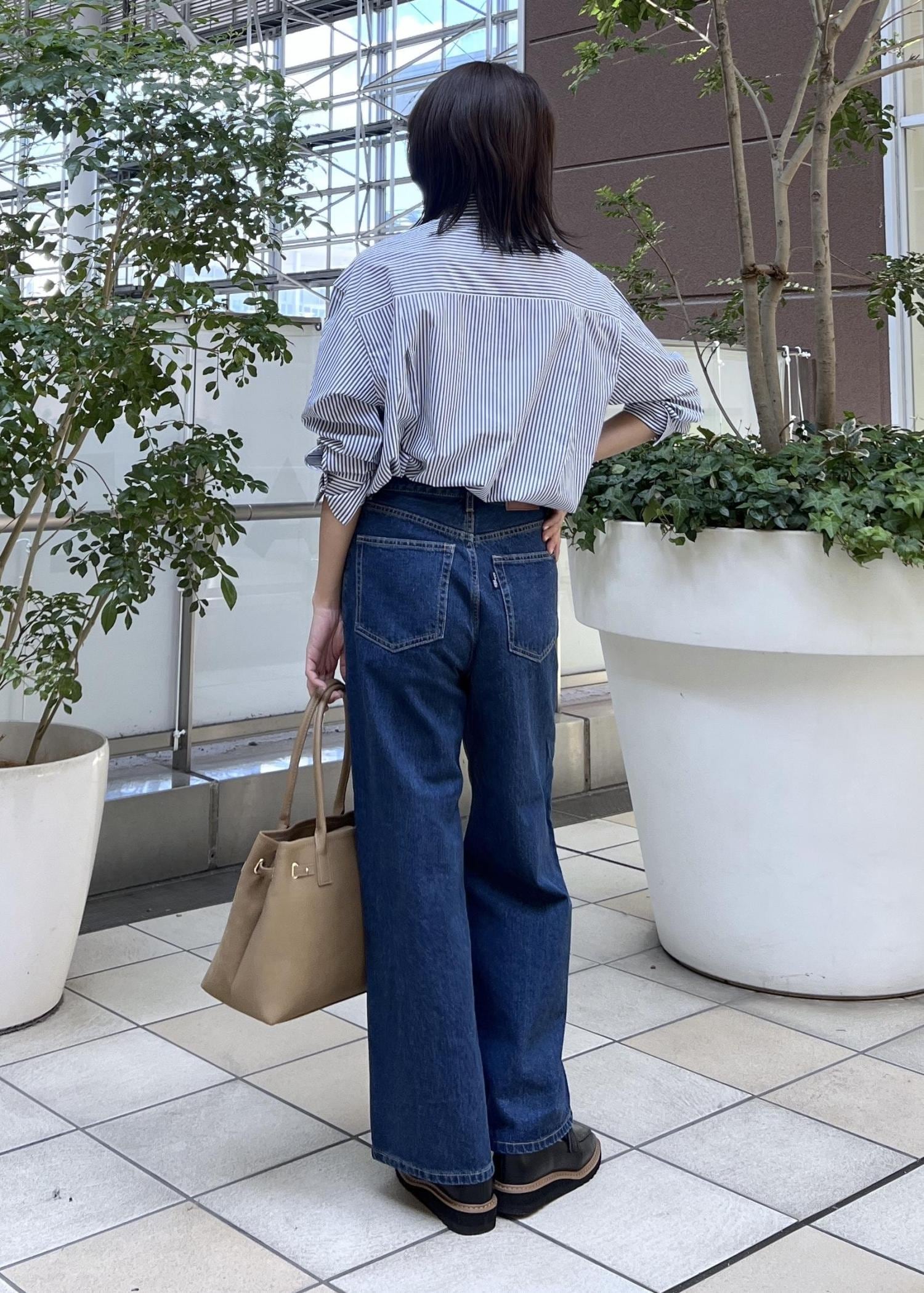 ストライプシャツ×デニムの大人カジュアルコーデ