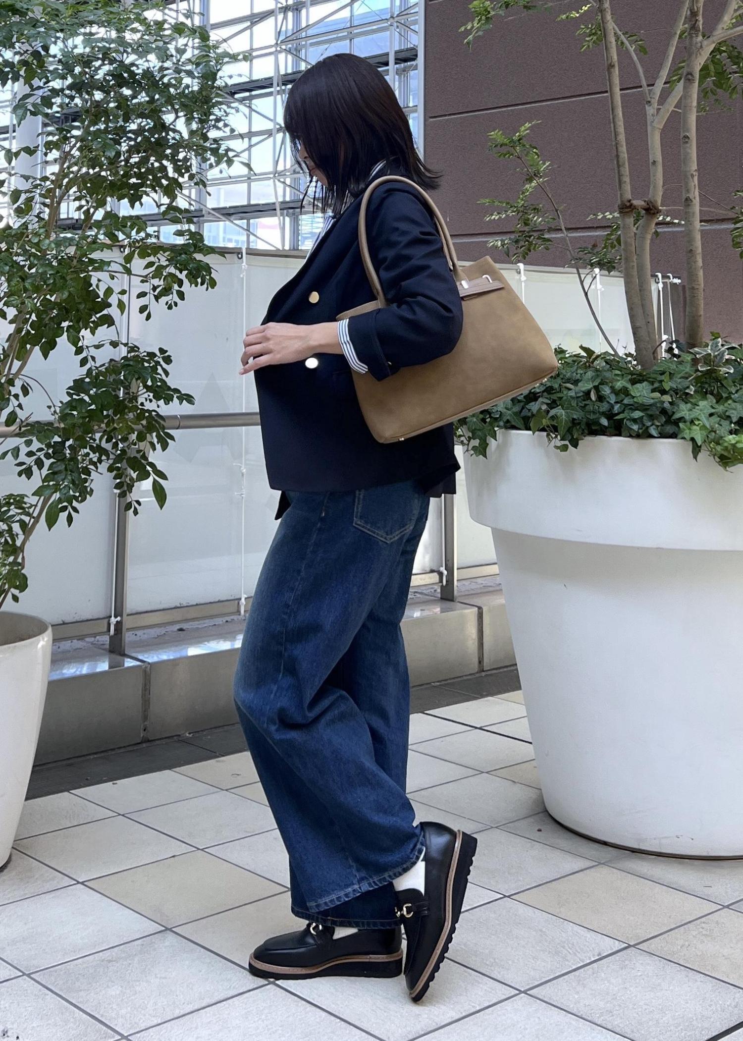 マニッシュなローファーを合わせて、大人カジュアルなスタイリングにしました。