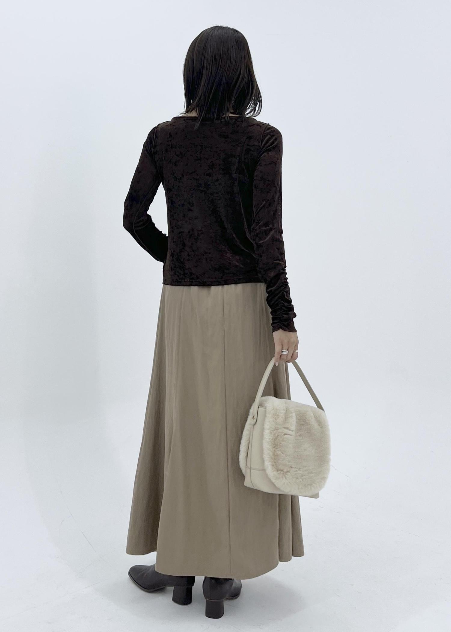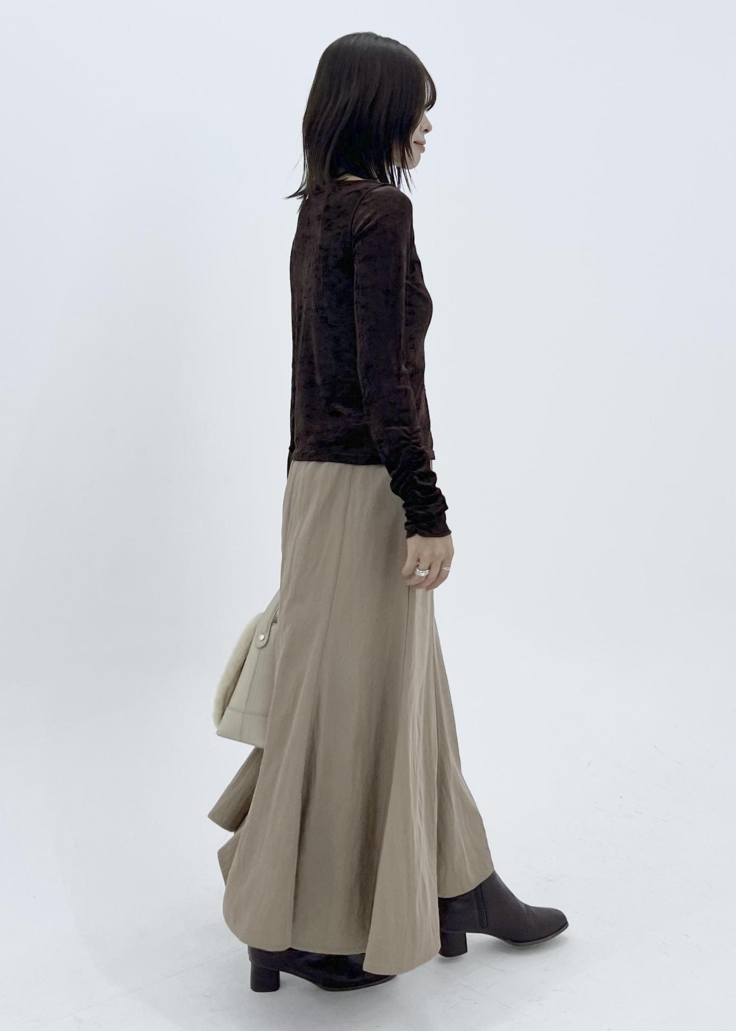 ROPÉ PICNICフィブリルマーメイドフレアスカートベージュ / M¥6,490レビューマットな質感のレーヨン・ナイロン混合素材で、肌触りも滑らかで薄手の生地感が楽に履きやすい素材感。