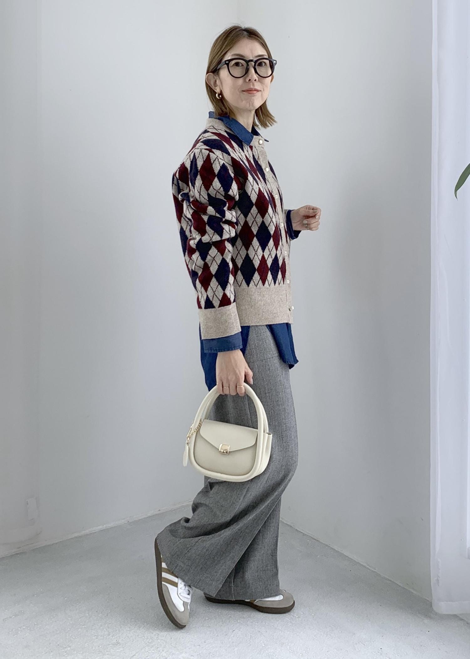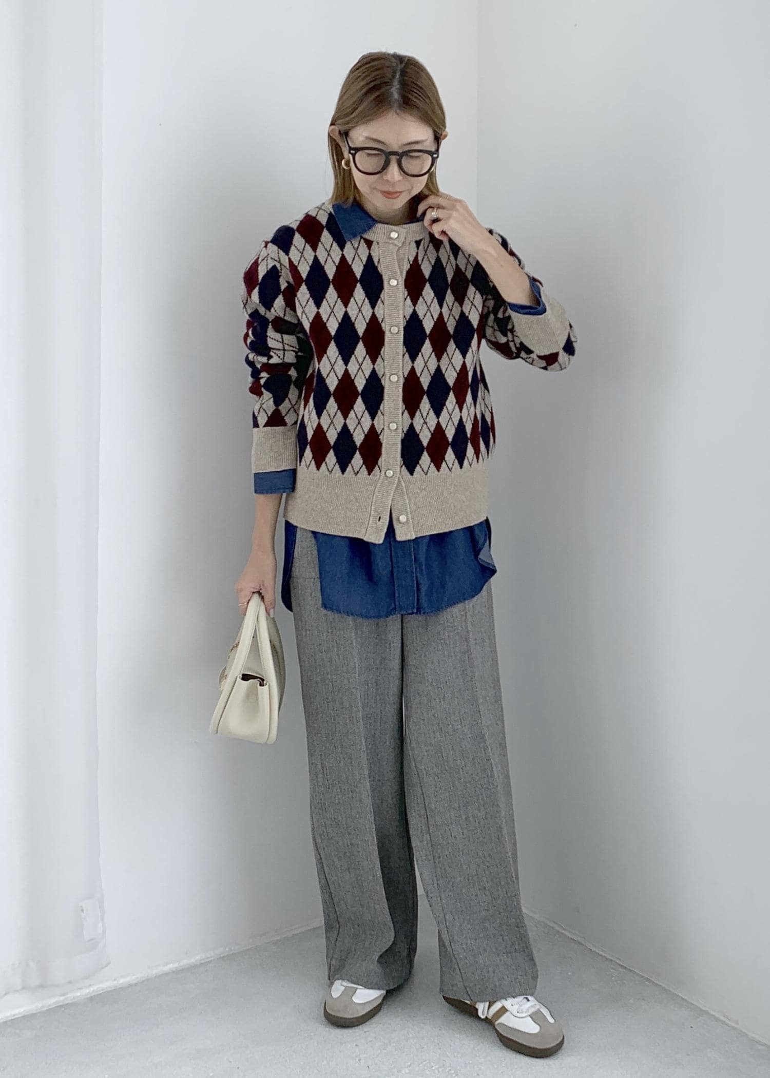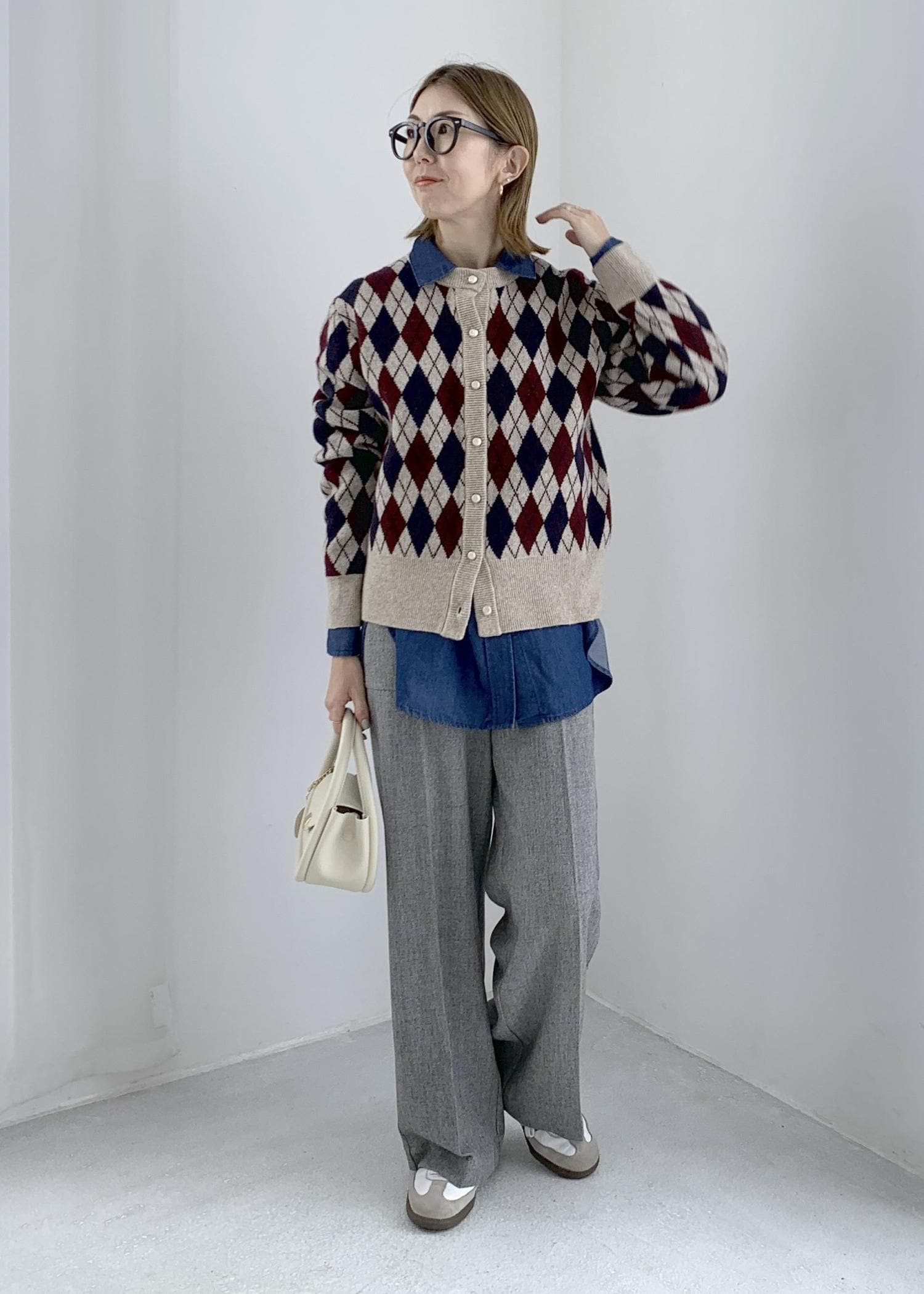 トラッドな印象のアーガイル柄カーディガン。
