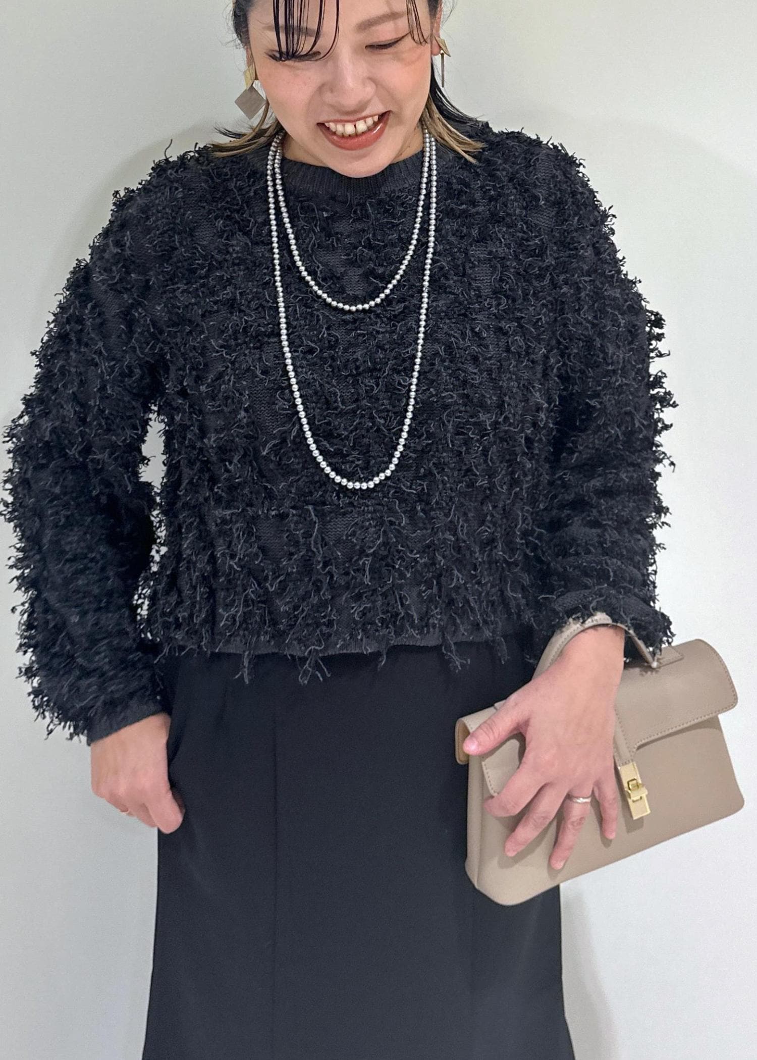 VISリボンヤーンフリンジニットプルオーバーチャコール / F¥6,589レビューふわふわなのに大きく見えないのがgood!