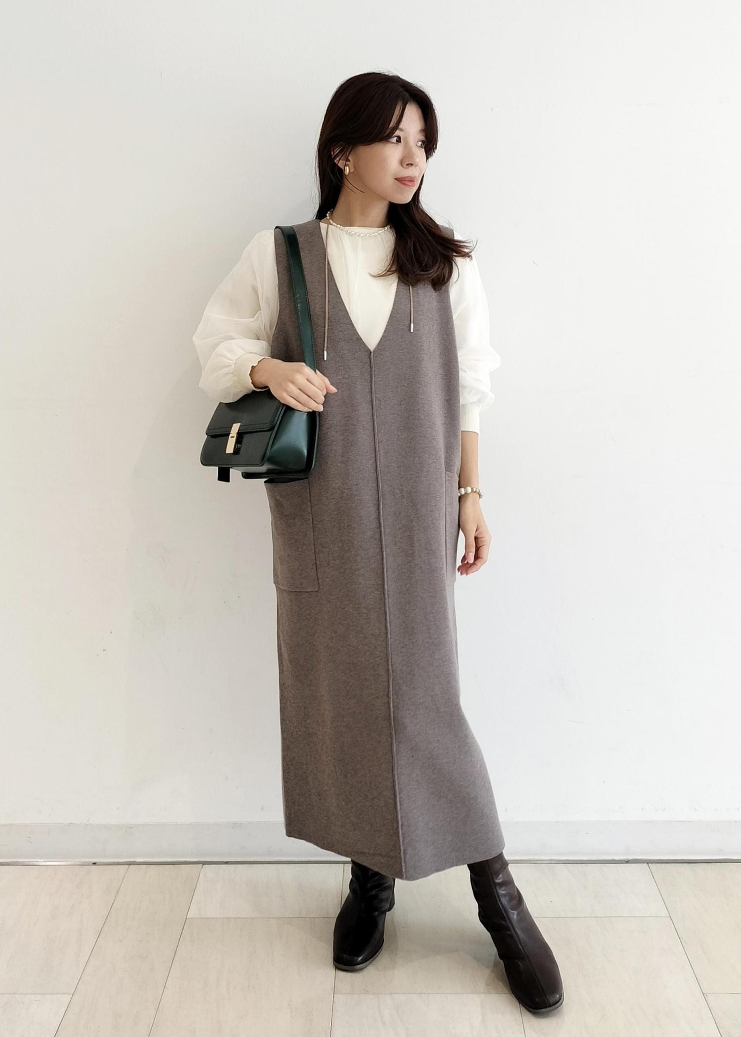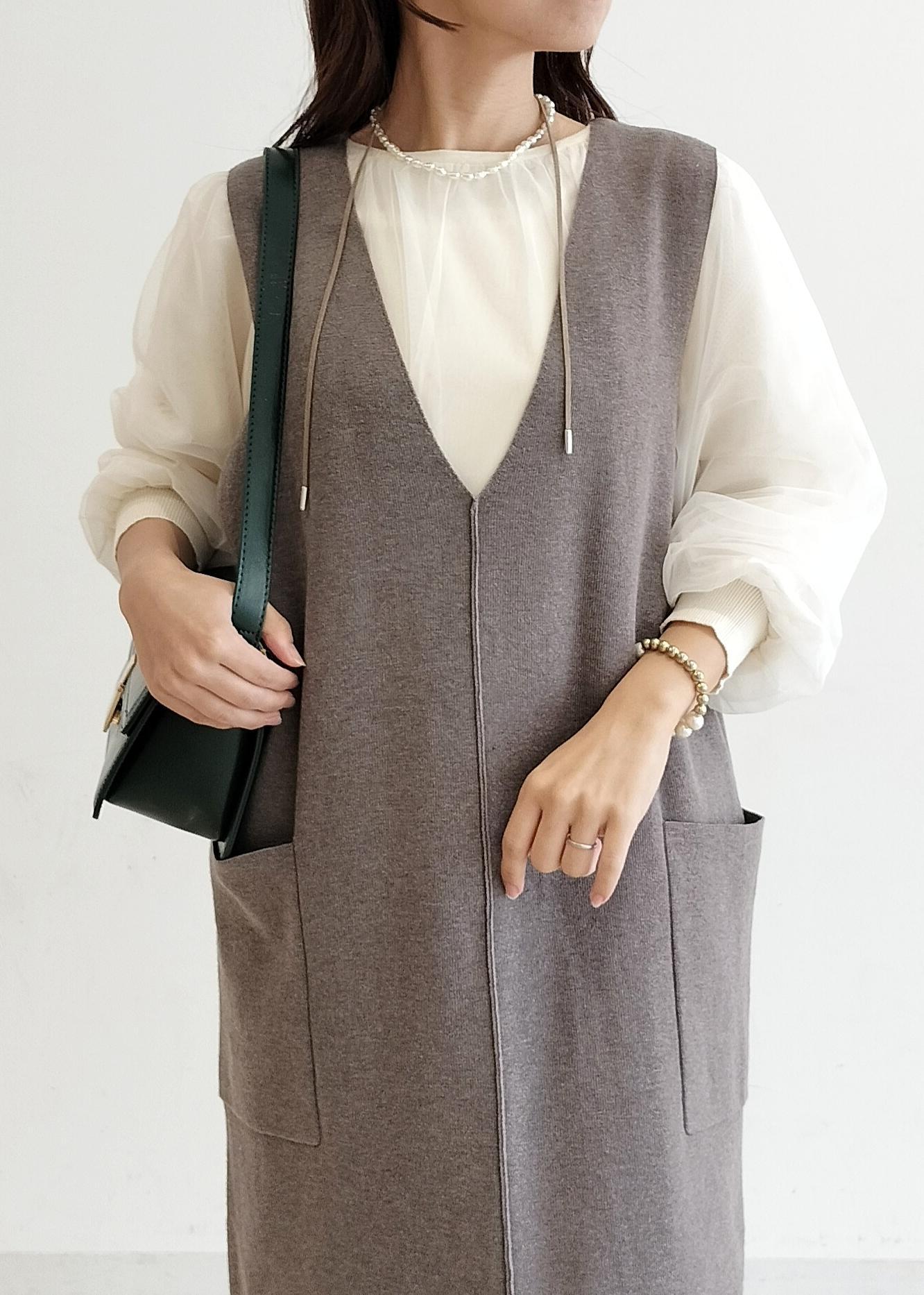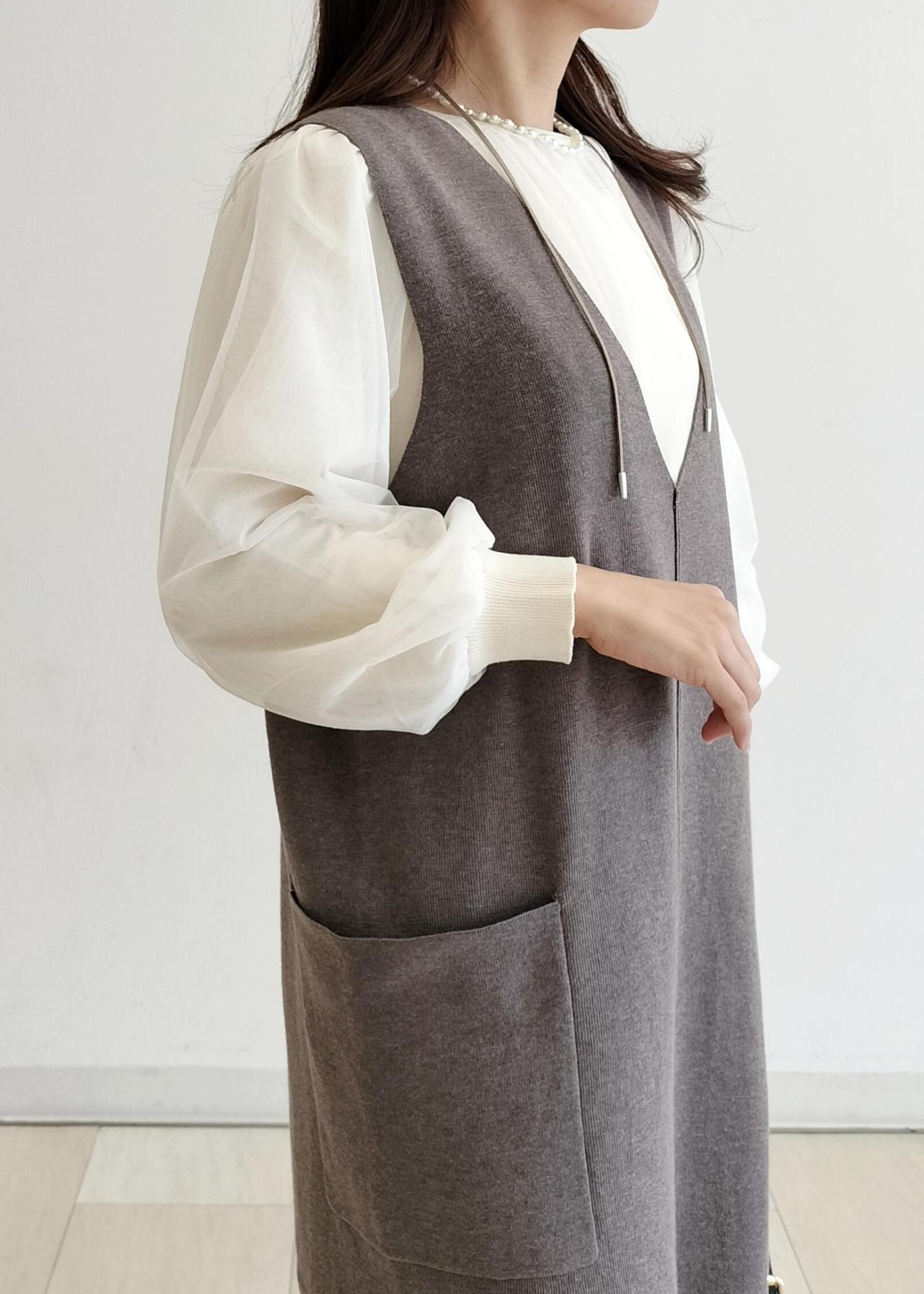 リラックス着にもお出かけにもぴったりなニットジャンパースカート。