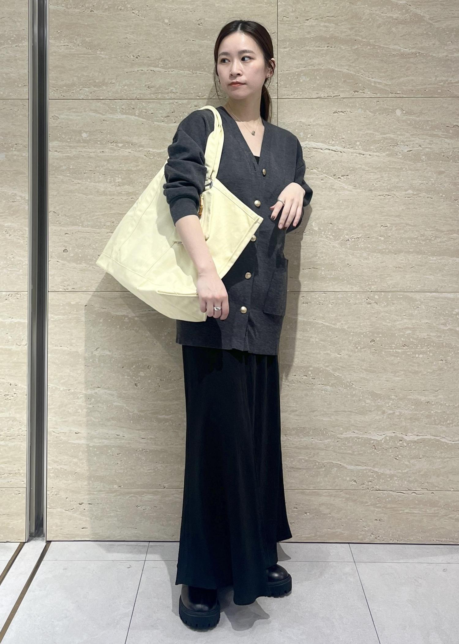 SALON adam et ropéウールVネック金ボタンカーディガングレー / F¥22,000レビュー着丈はヒップがしっかり隠れるほどの長めデザインです。
