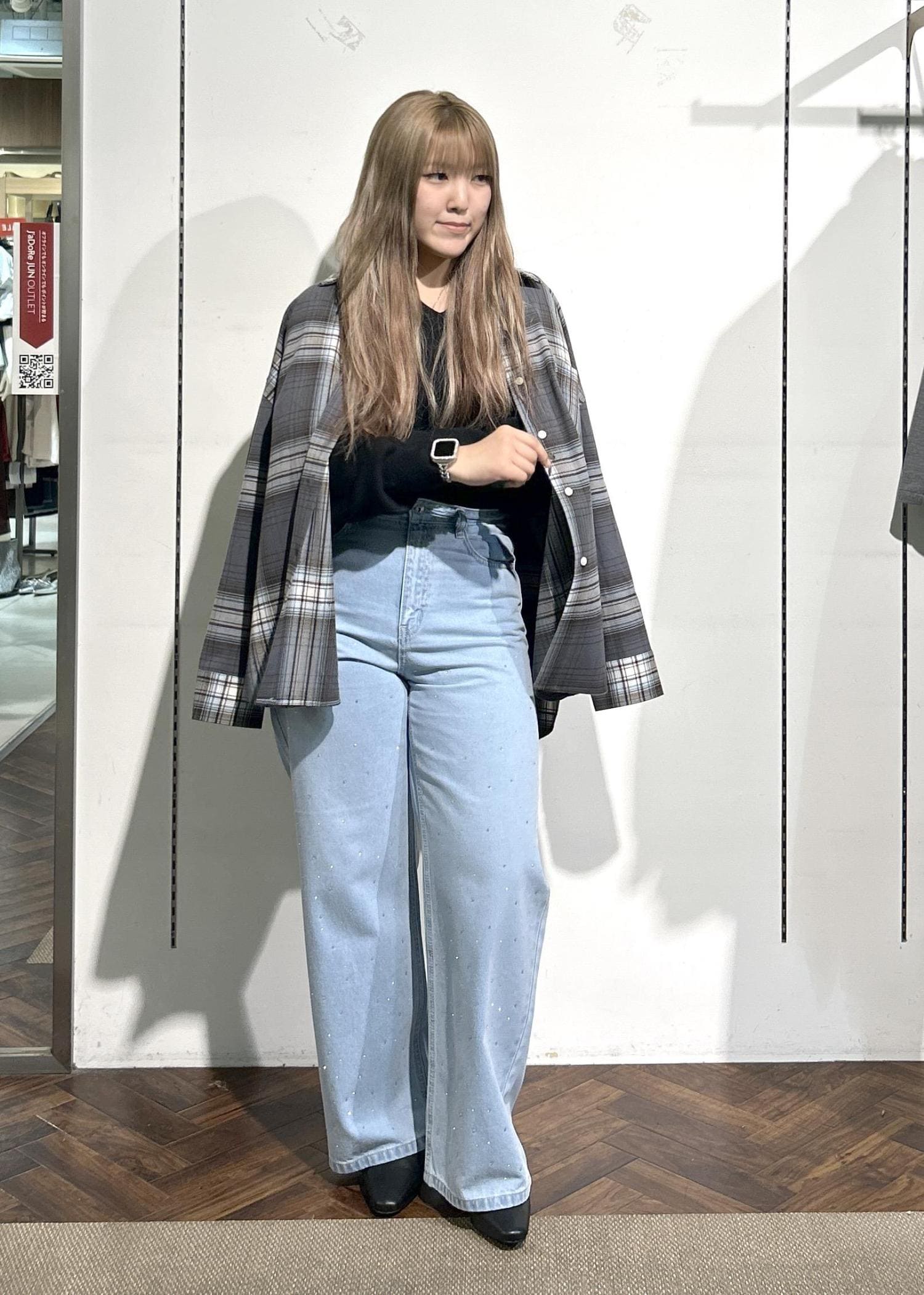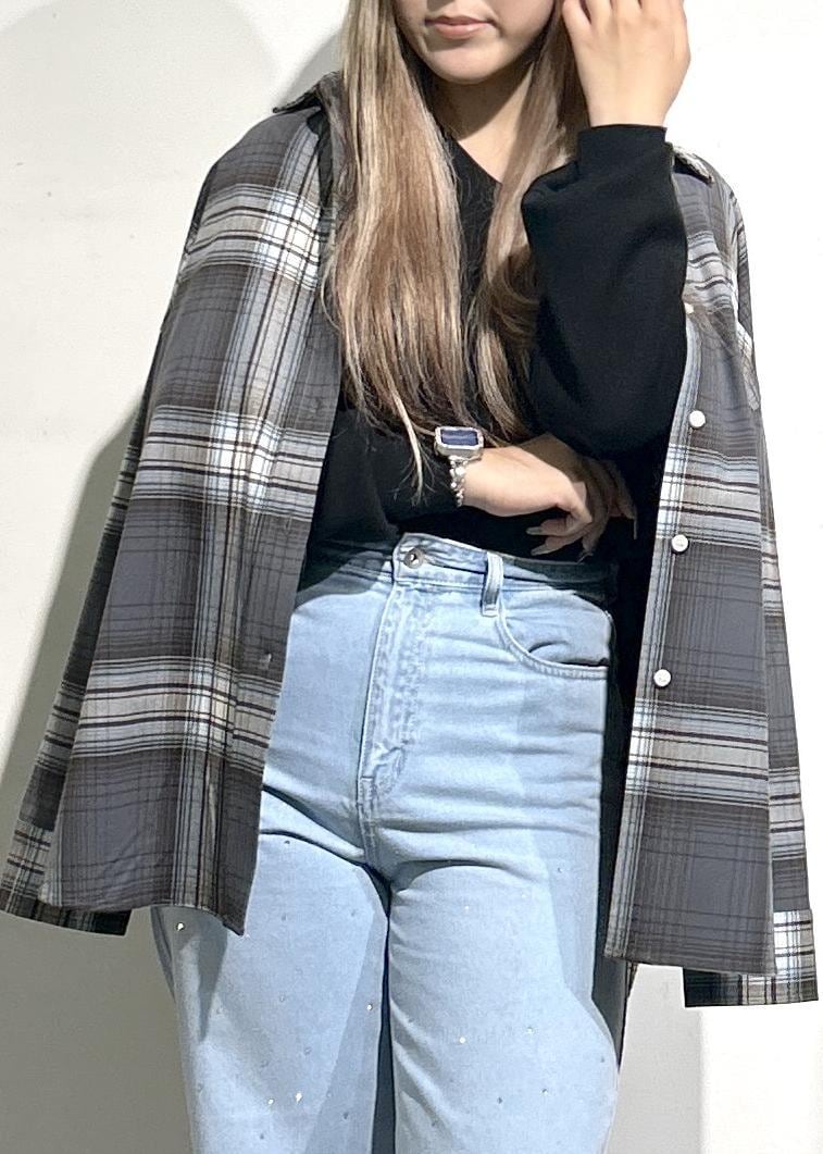 肌寒い時に1枚あると便利なチェック柄シャツを使ったコーディネートです!